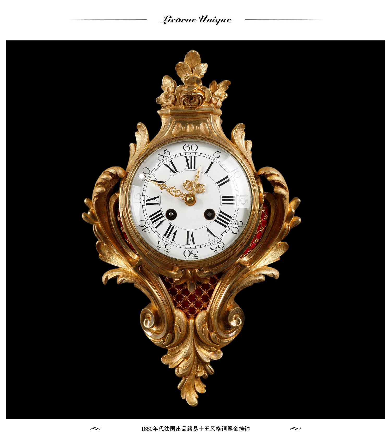独角鹿西洋古董1880年代法国出品路易十五风格铜鎏金挂钟