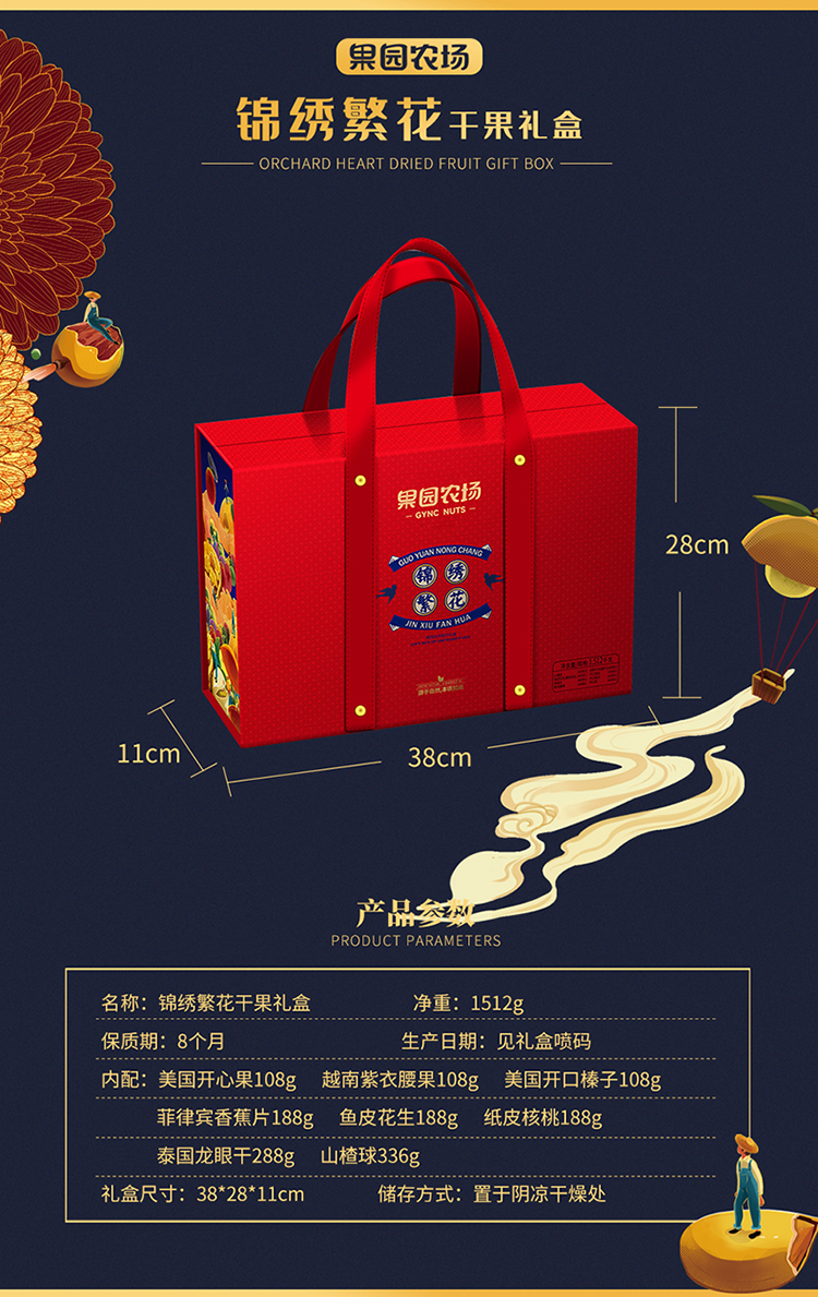 果园农场锦绣繁花干果礼盒1512g【LY】(包邮直发)