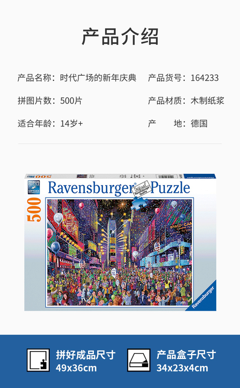 Ravensburger拼图 平面拼图500片时代广场的新年庆典RAVC164233