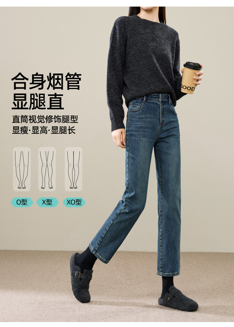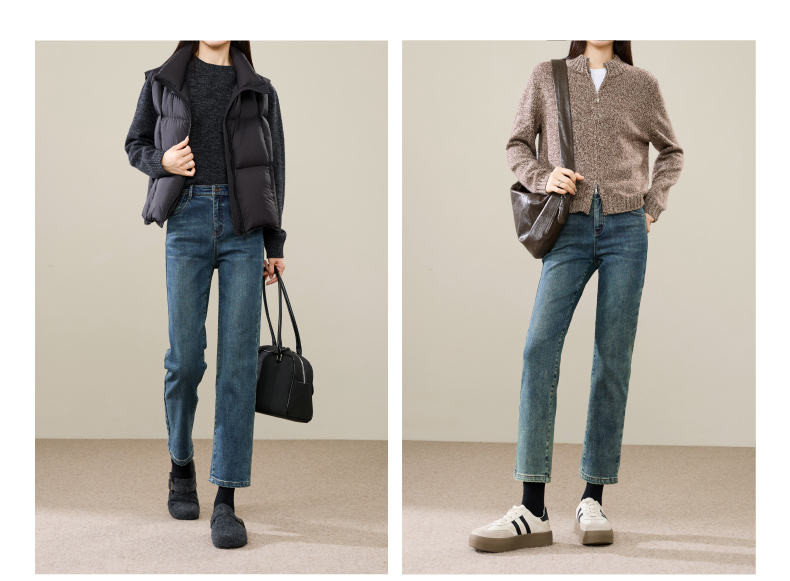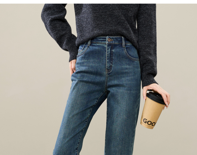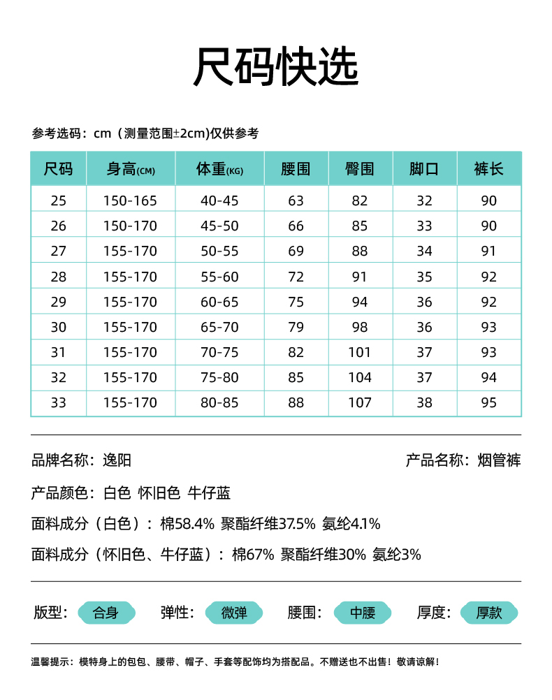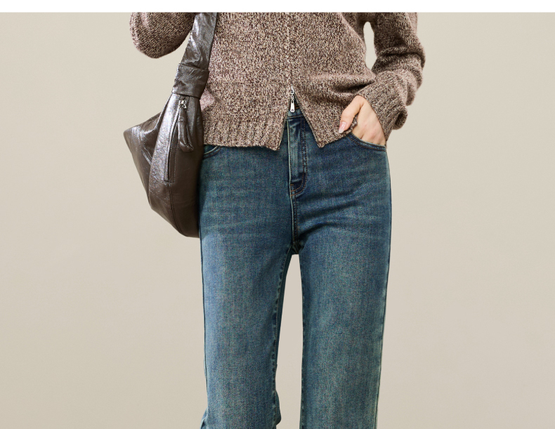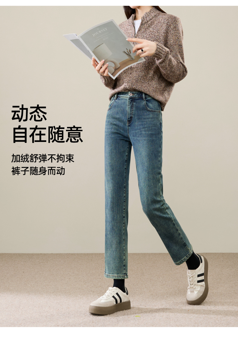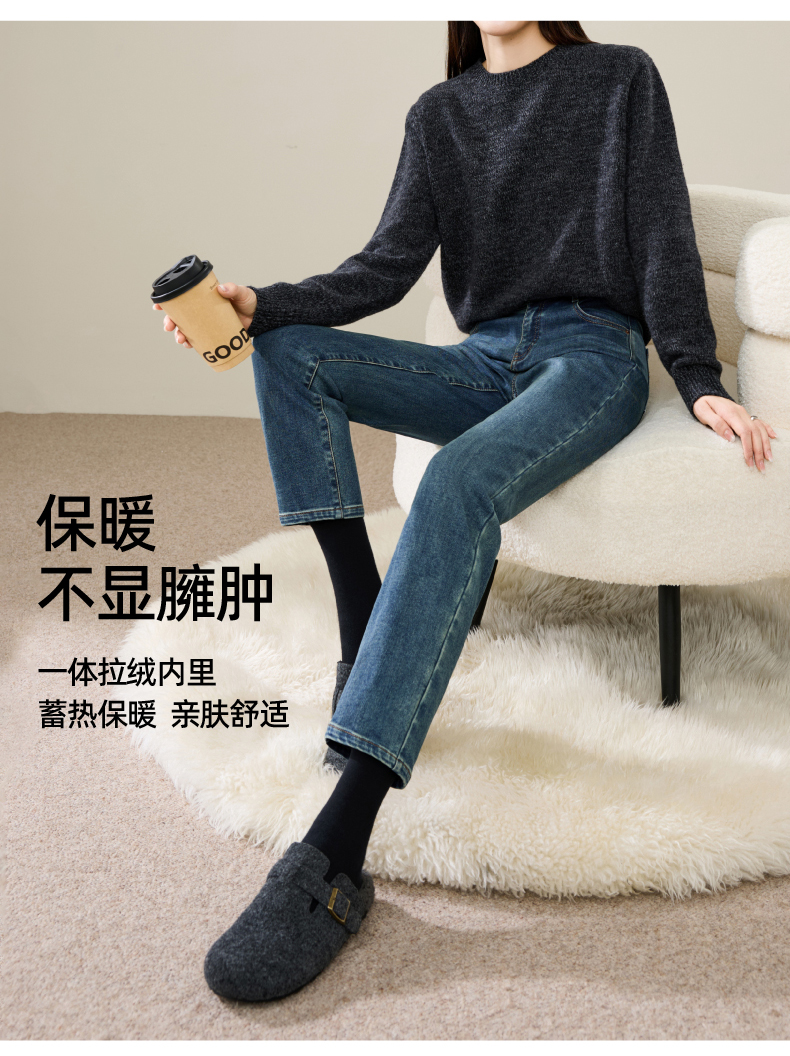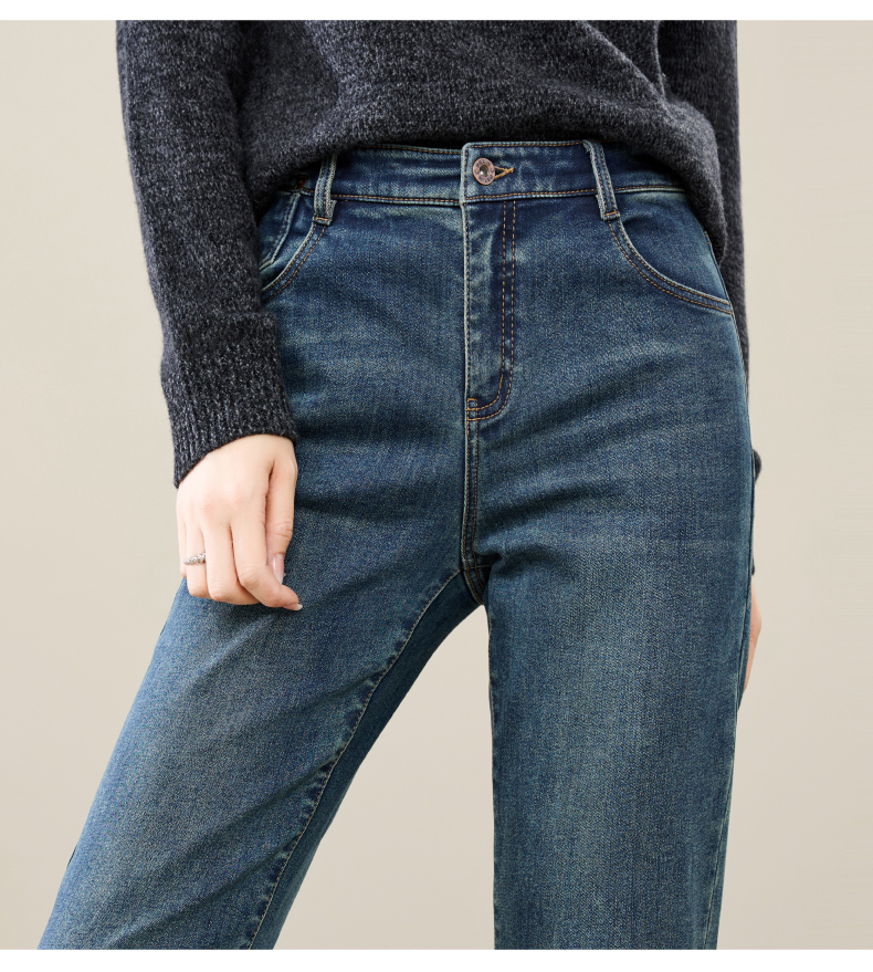 【加绒-烟管-牛仔】逸阳冬新品拉绒保暖显瘦烟管法棍牛仔裤子1731