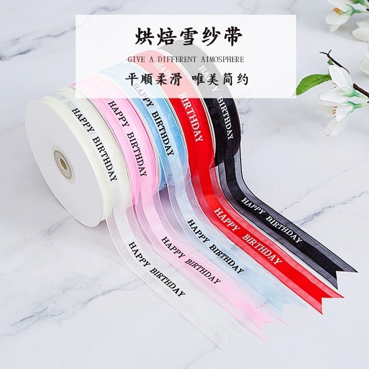 蕾丝生日印字丝带,用于生日蛋糕的包装以及生日礼物的包装。多色可选。