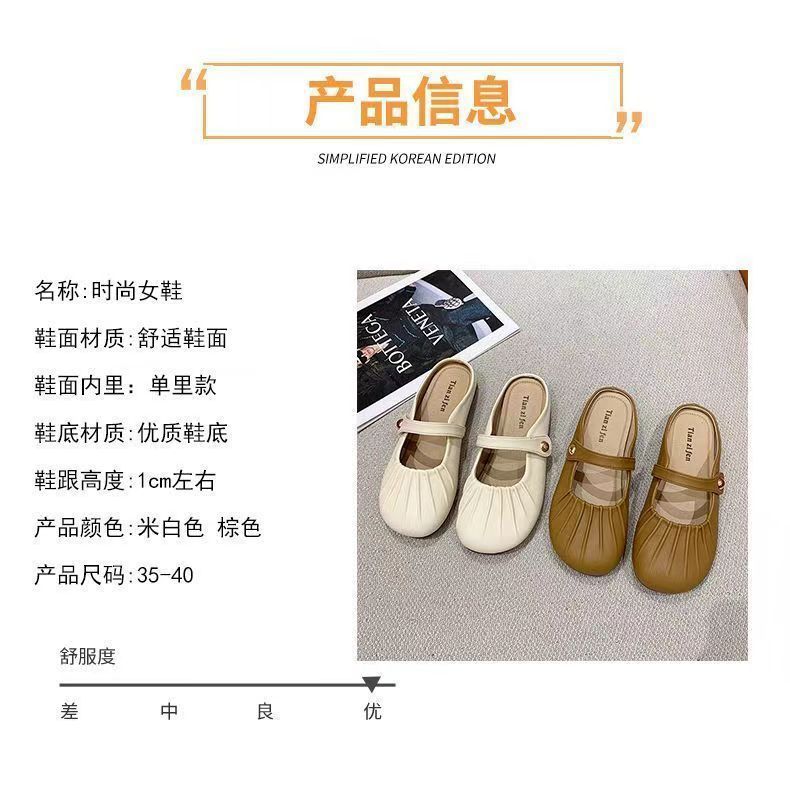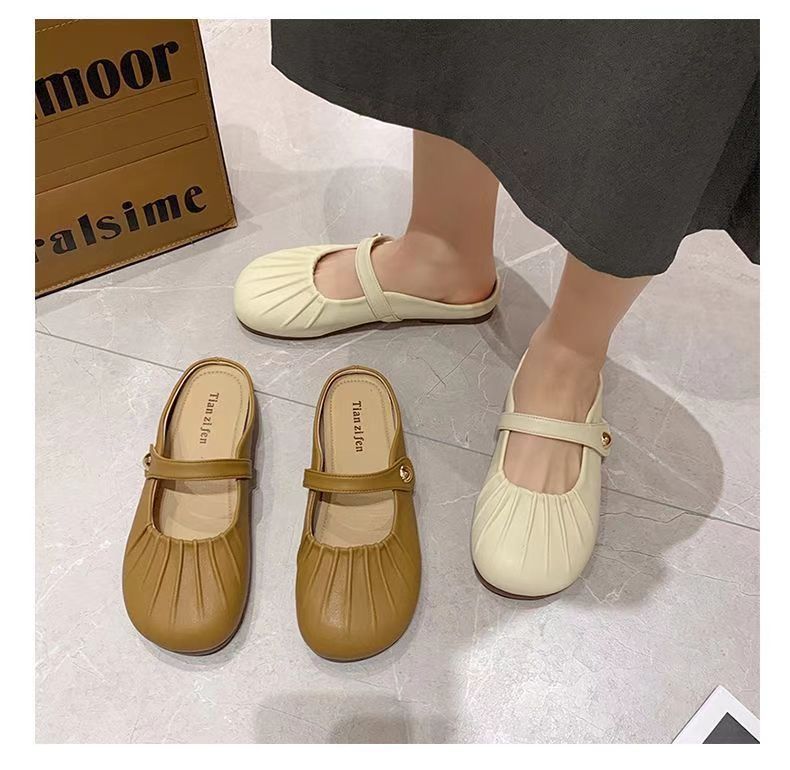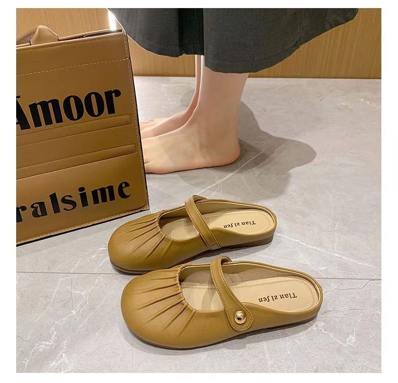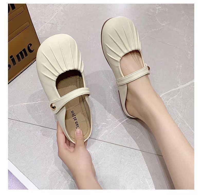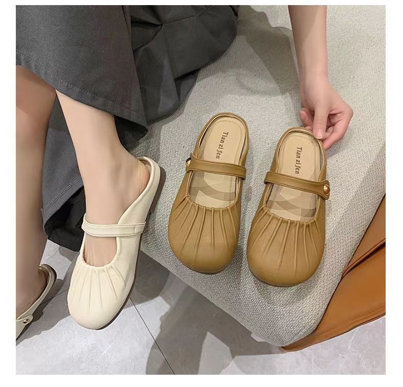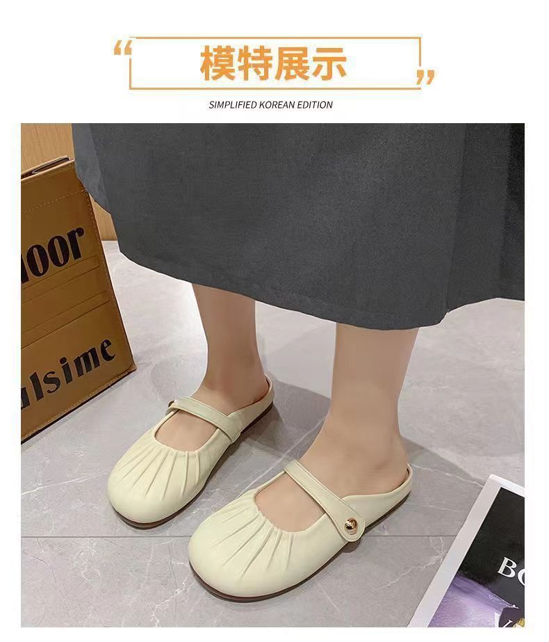 【法式晚风❗️新款包头半拖鞋】脚感舒适,柔软轻盈,洋气褶皱一脚蹬平底懒人鞋玛丽珍凉鞋配裙子复古穆勒鞋