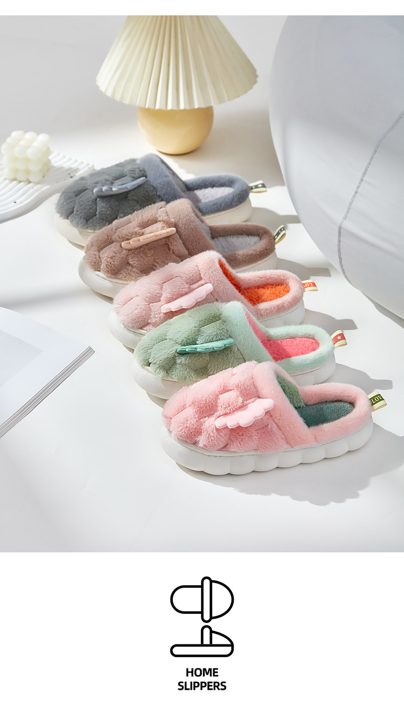 「五款配色」新款小翅膀棉拖鞋 踩屎感金龟绒毛毛拖鞋大白底柔软家居女士