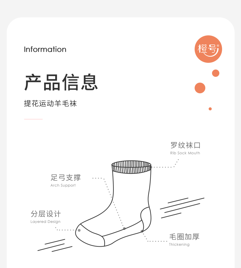 橙号 儿童/成人中筒/提花运动羊毛袜
