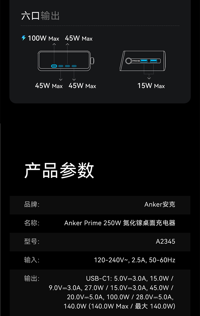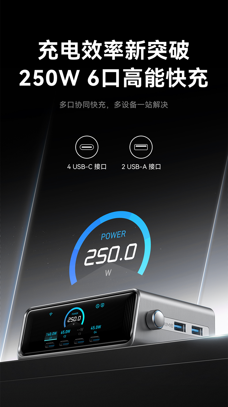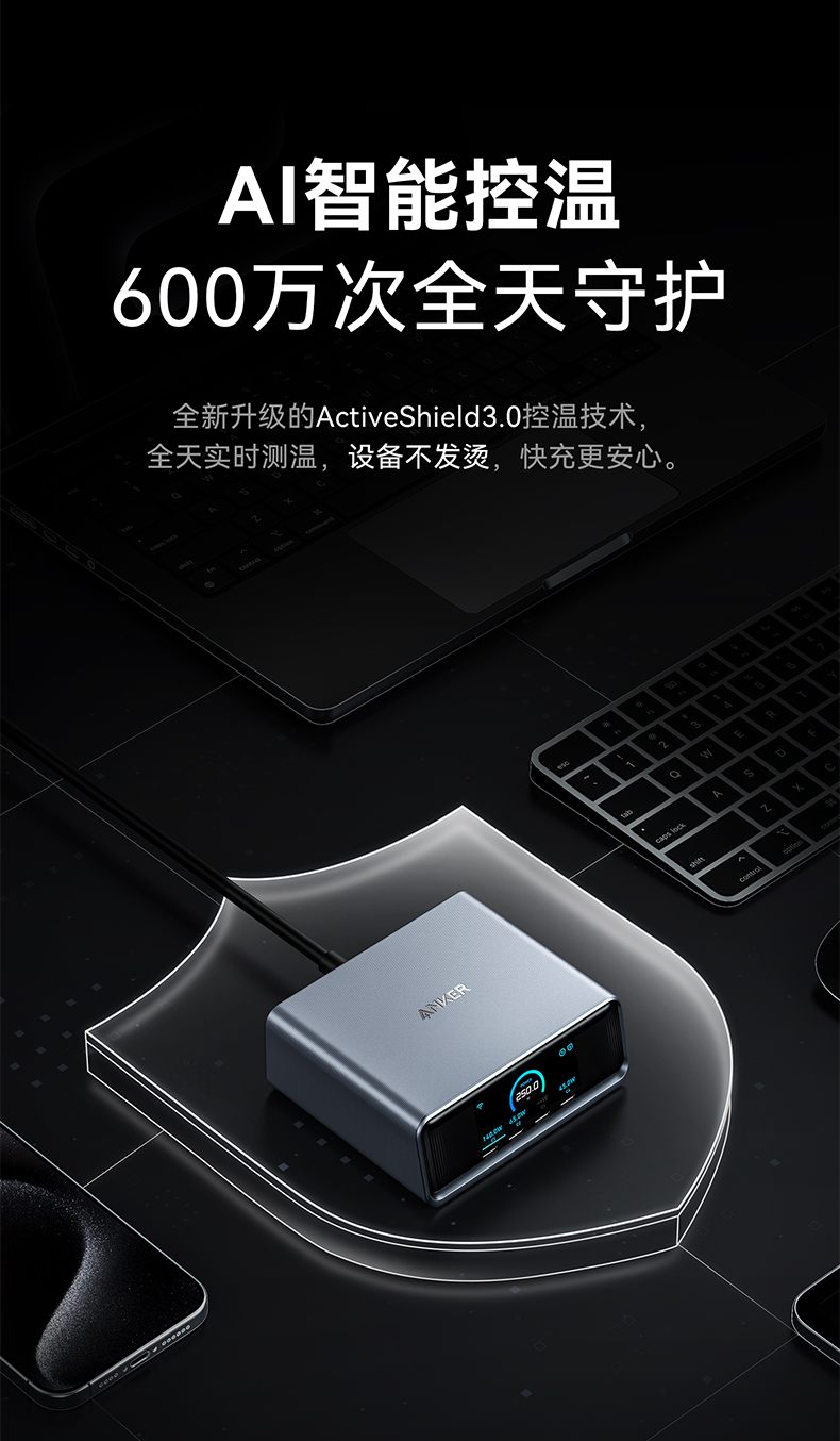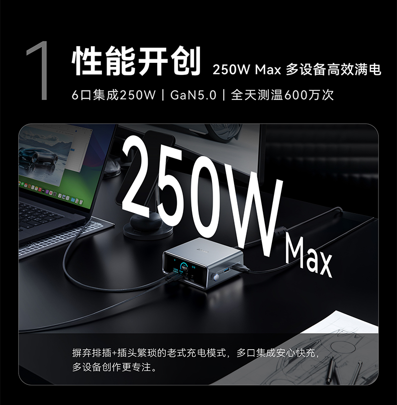 Anker Prime 250W 六口桌面充电器 氮化镓快充