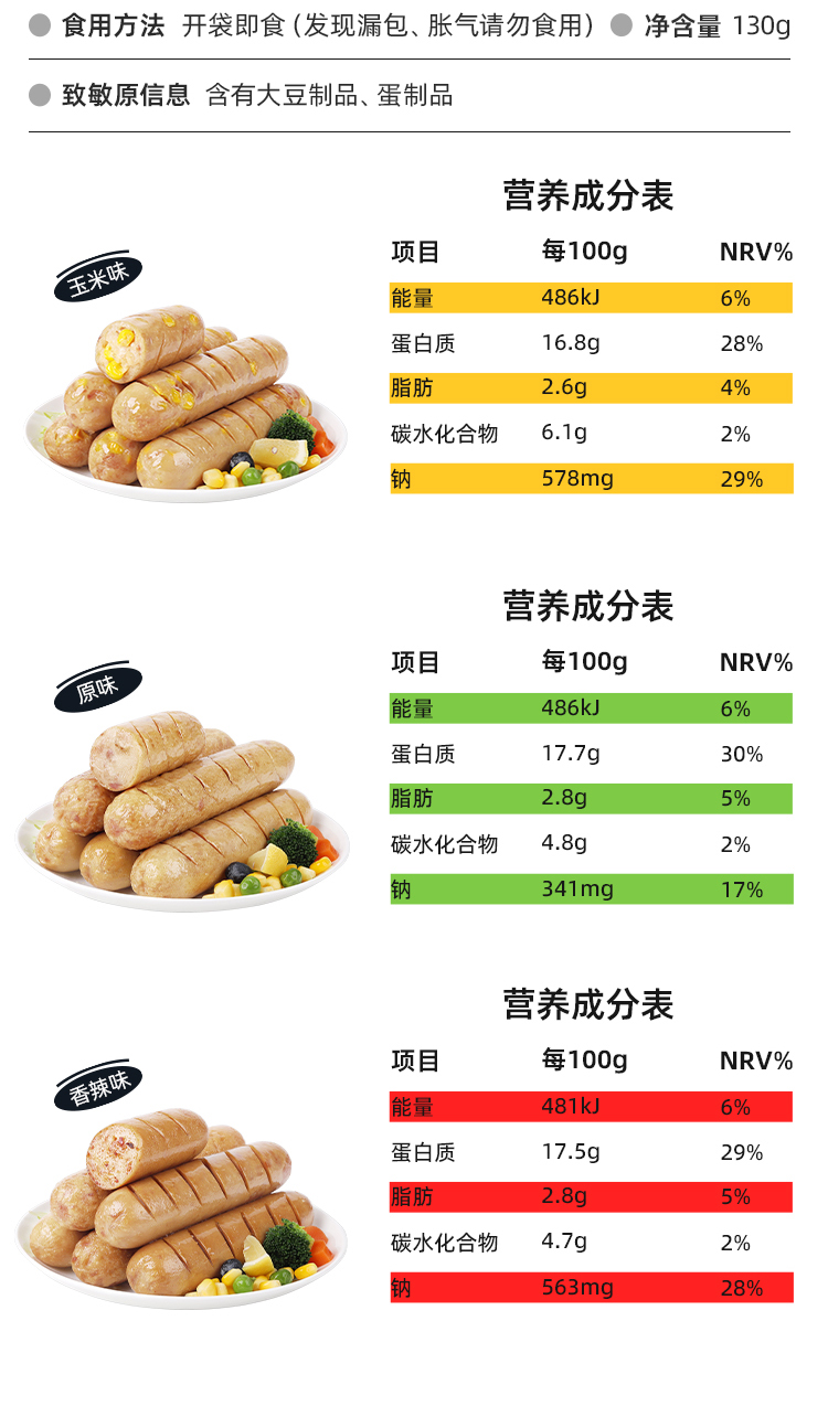 【🎄圣诞惊喜】享轻™低脂鸡肉肠(原味/香辣味/玉米味)130克/根