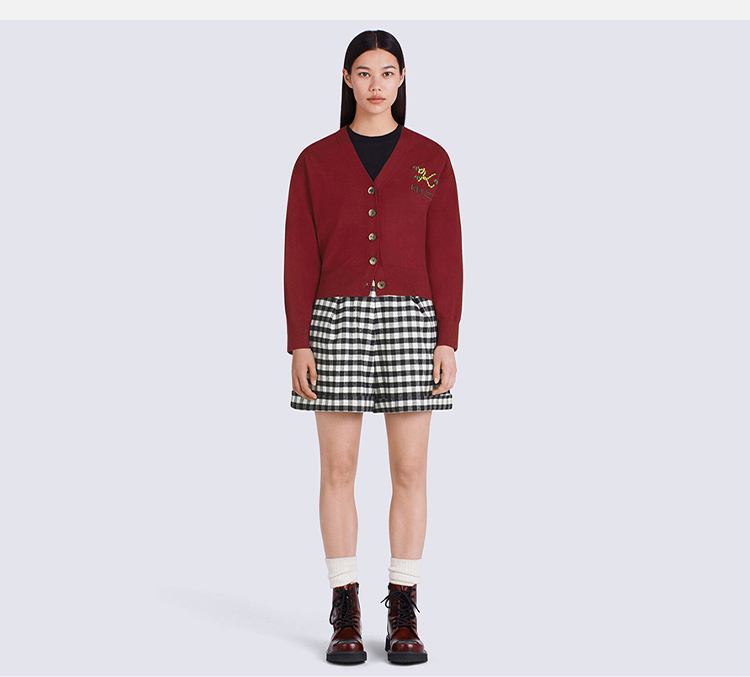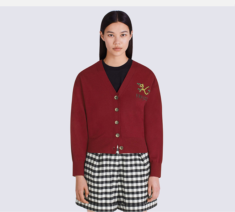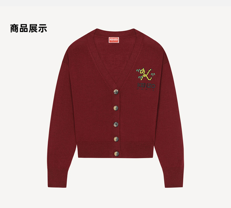 KENZO 高田贤三 女士 TIGER TAIL K系列 刺绣徽标羊毛针织开衫 枣红色 FC62 CA341 3LA 23