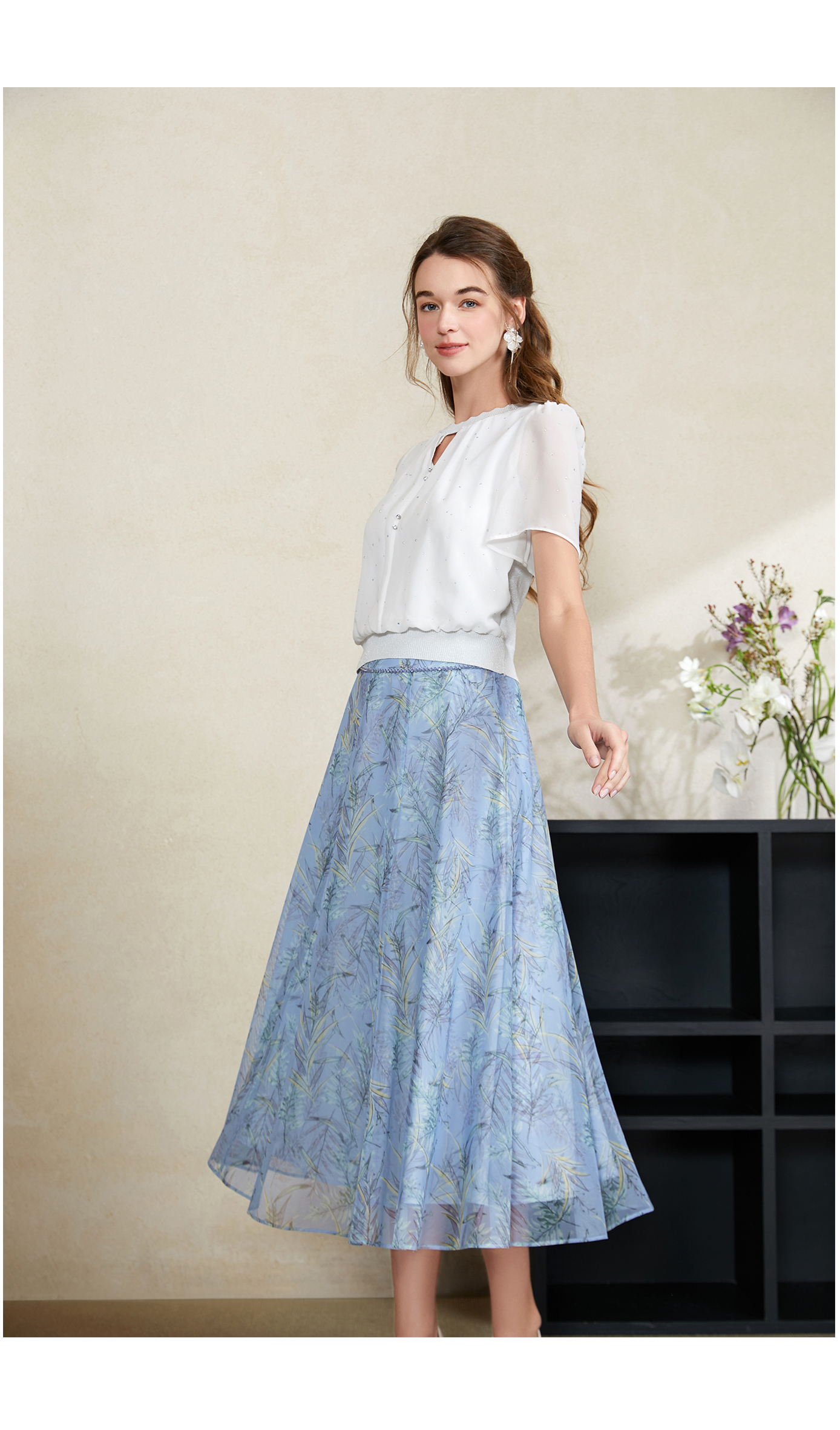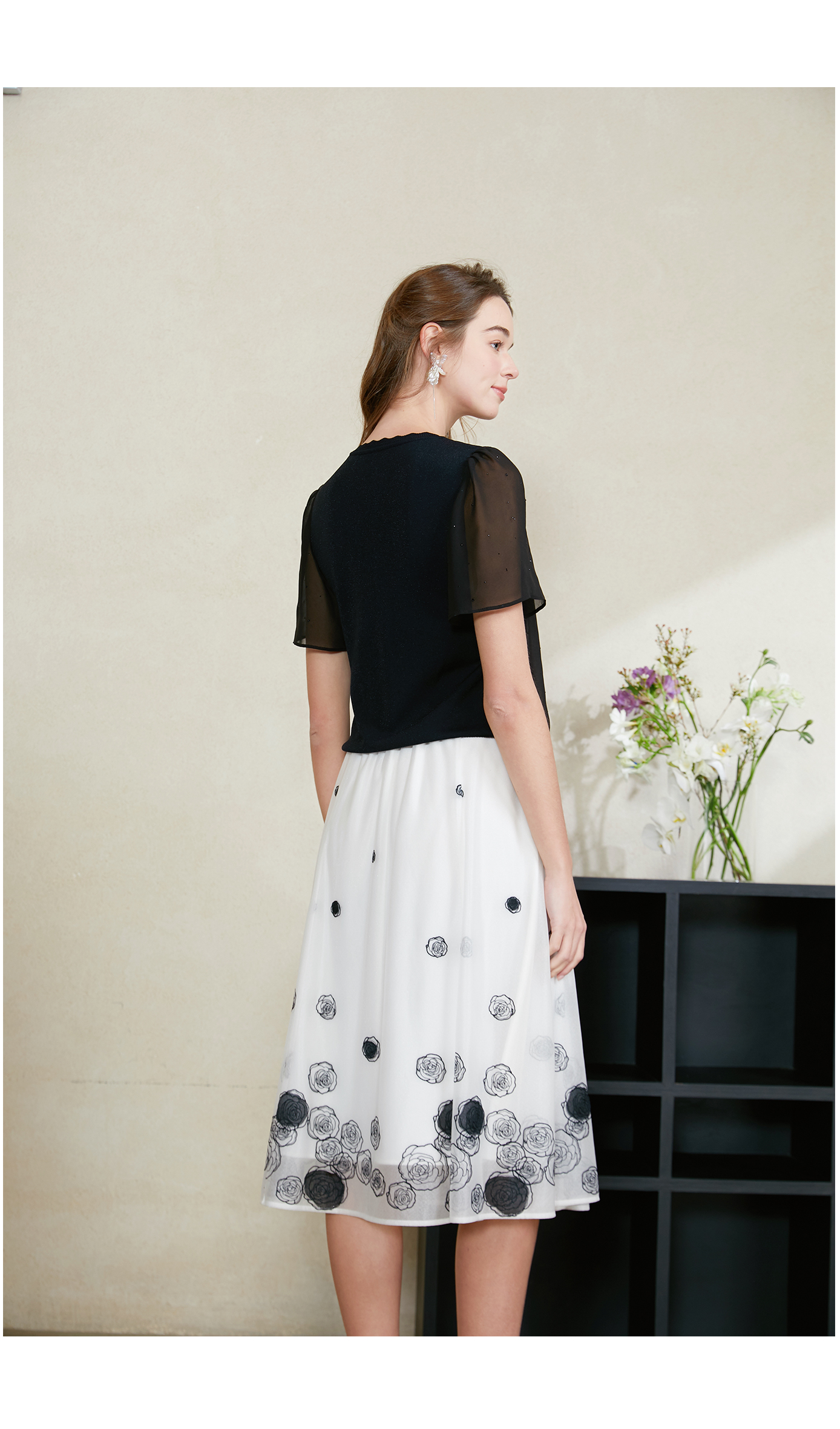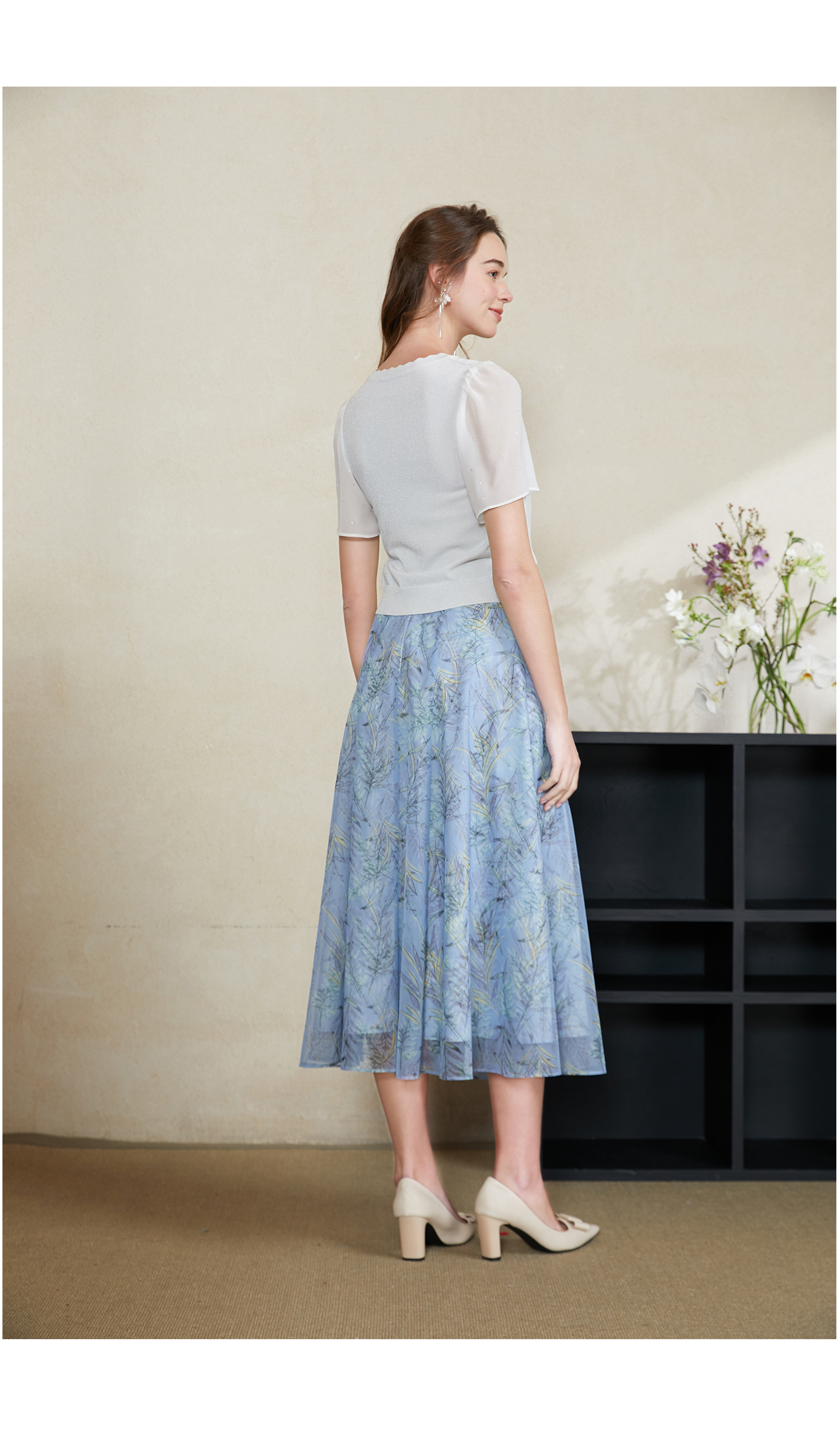司歌雪纺拼针织上衣T911095X