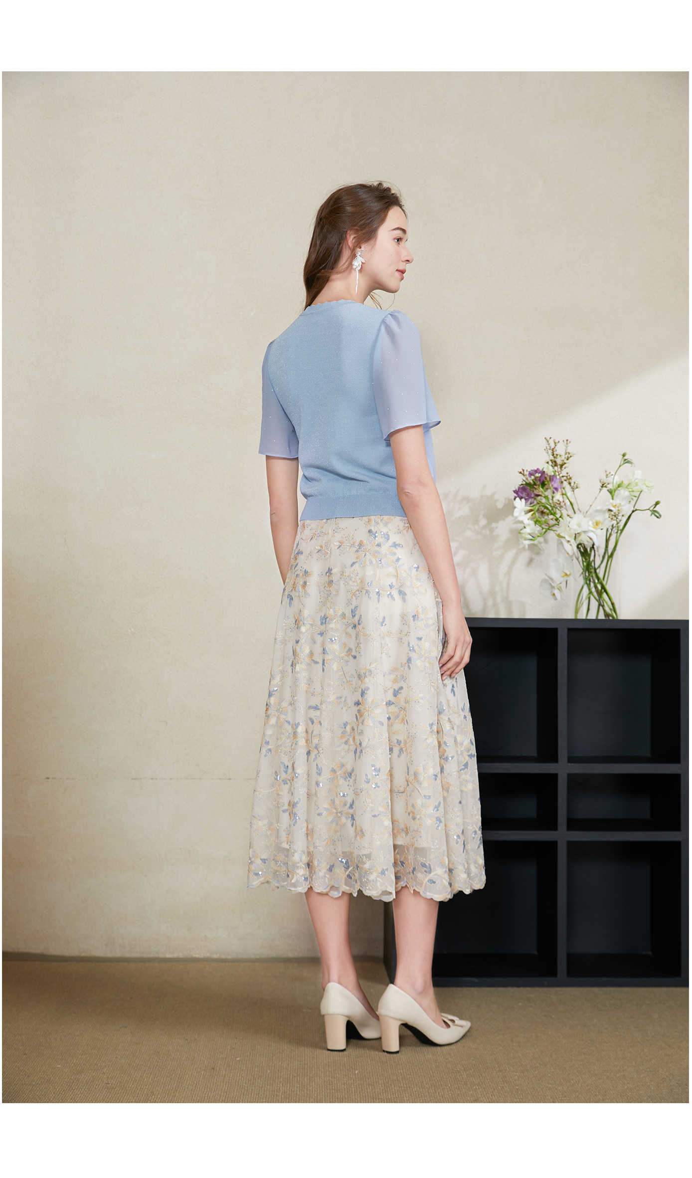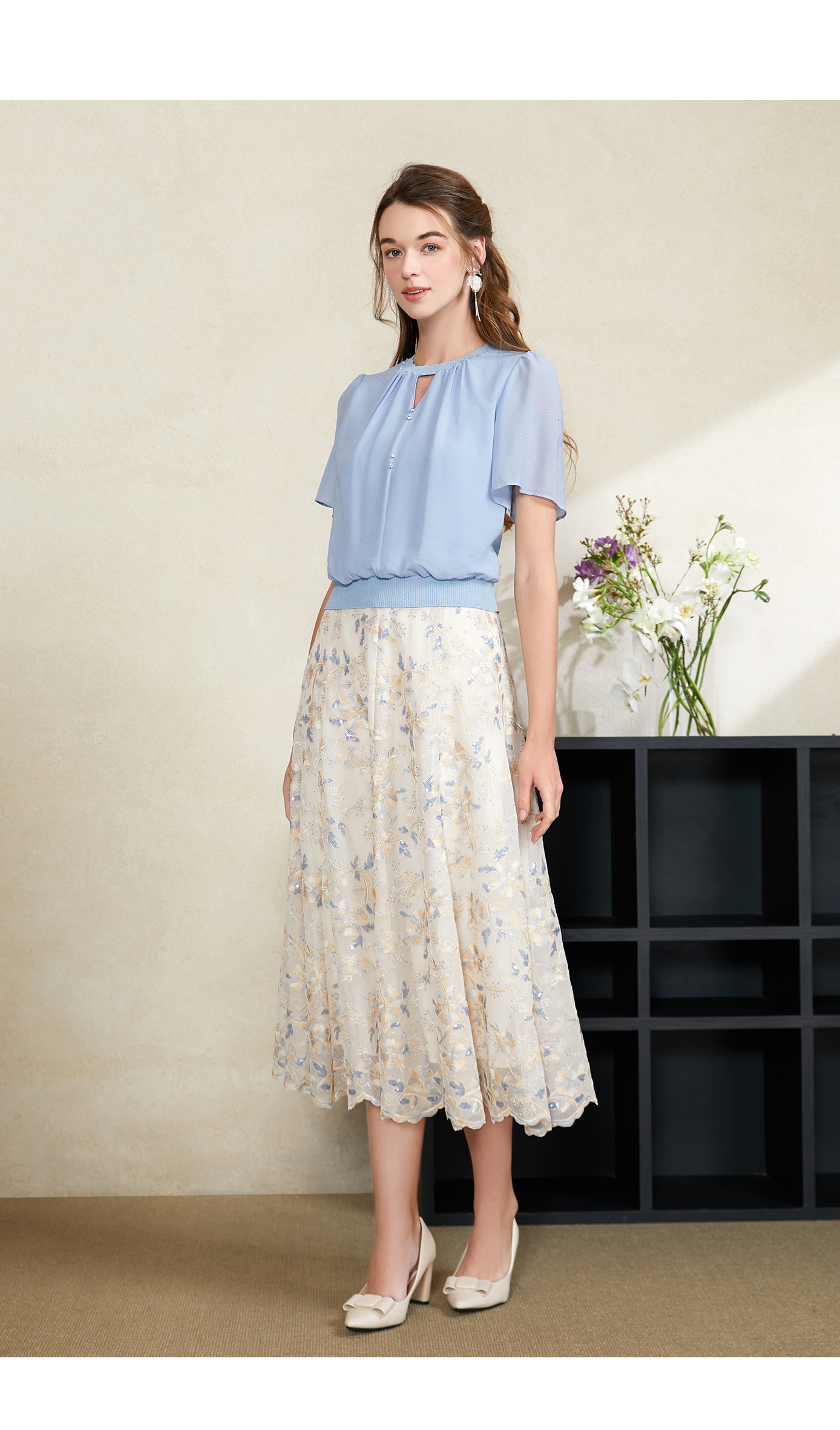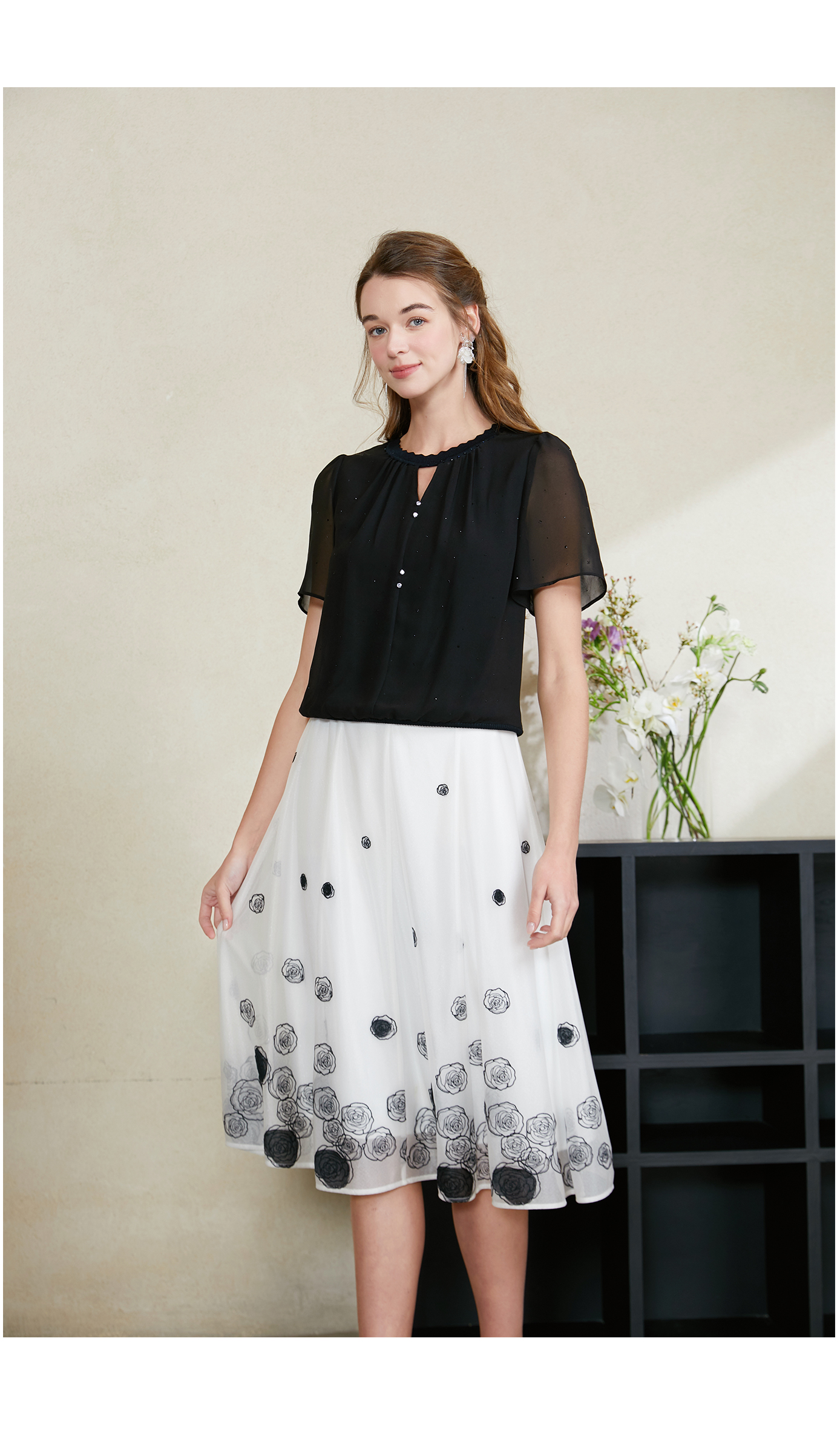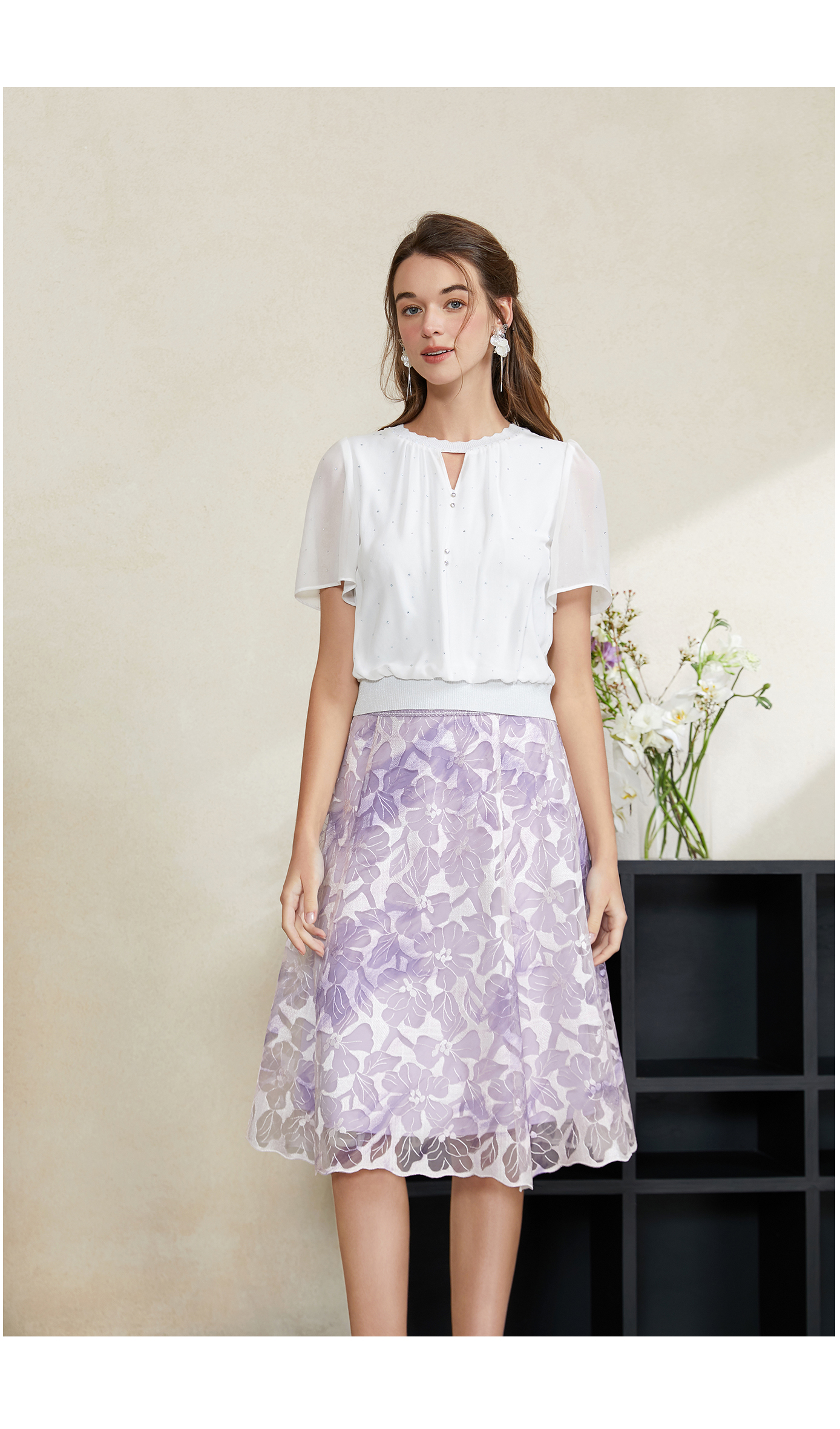 司歌雪纺拼针织上衣T911095X