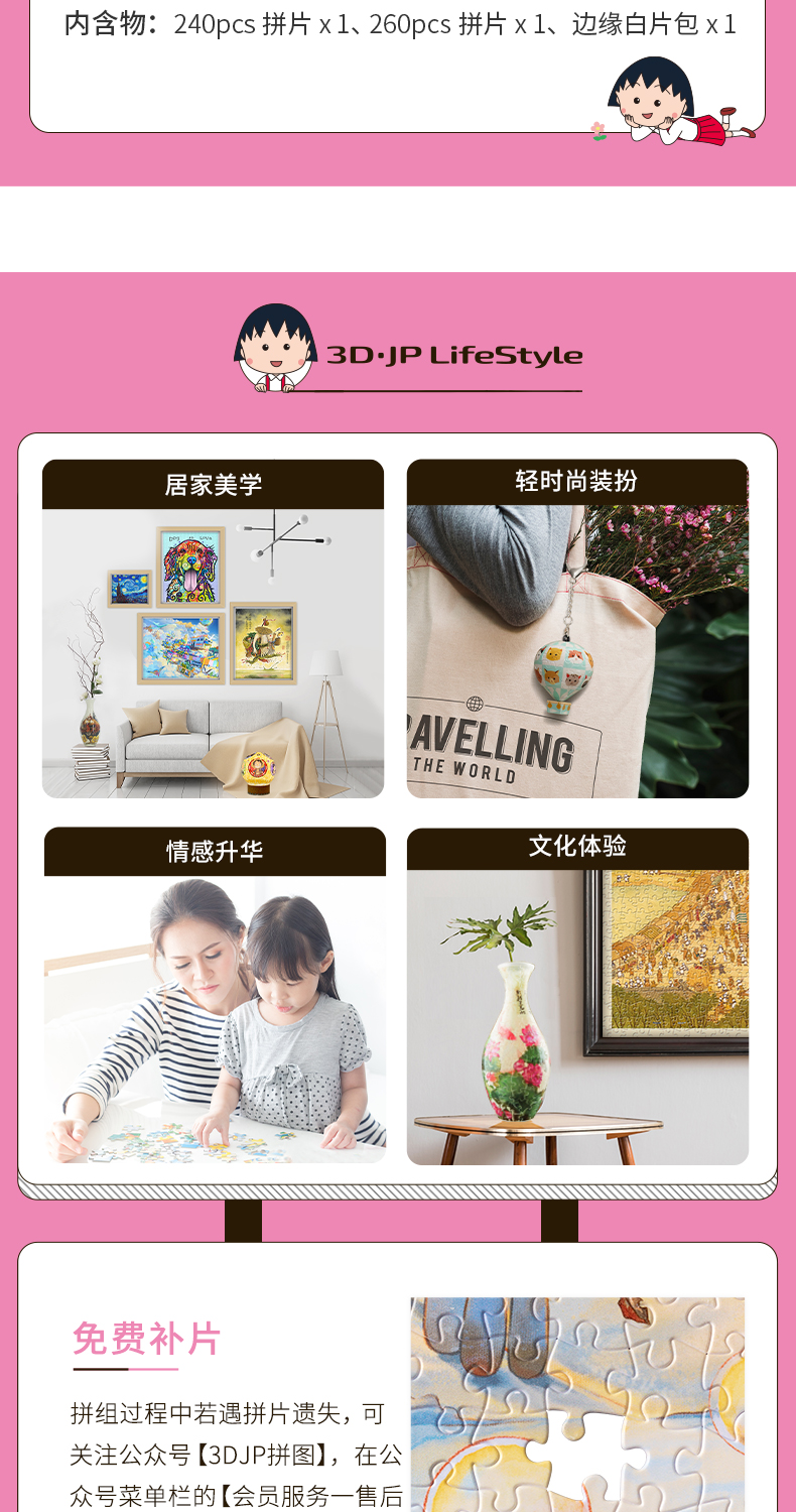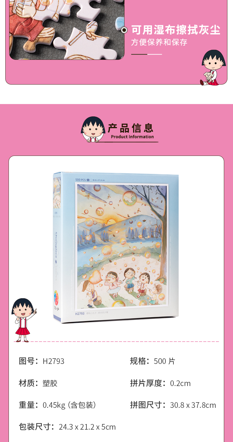 【折扣产品 不退换】500片 平面拼图 塑料拼图 H2793 樱桃小丸子-那天的夕阳