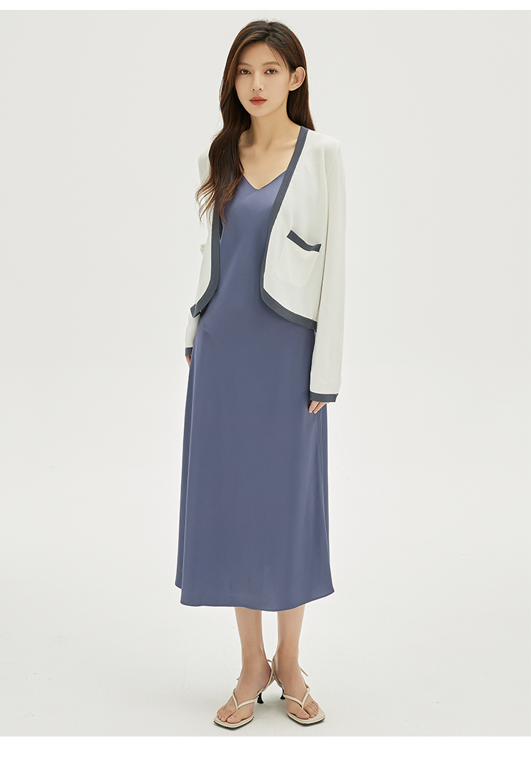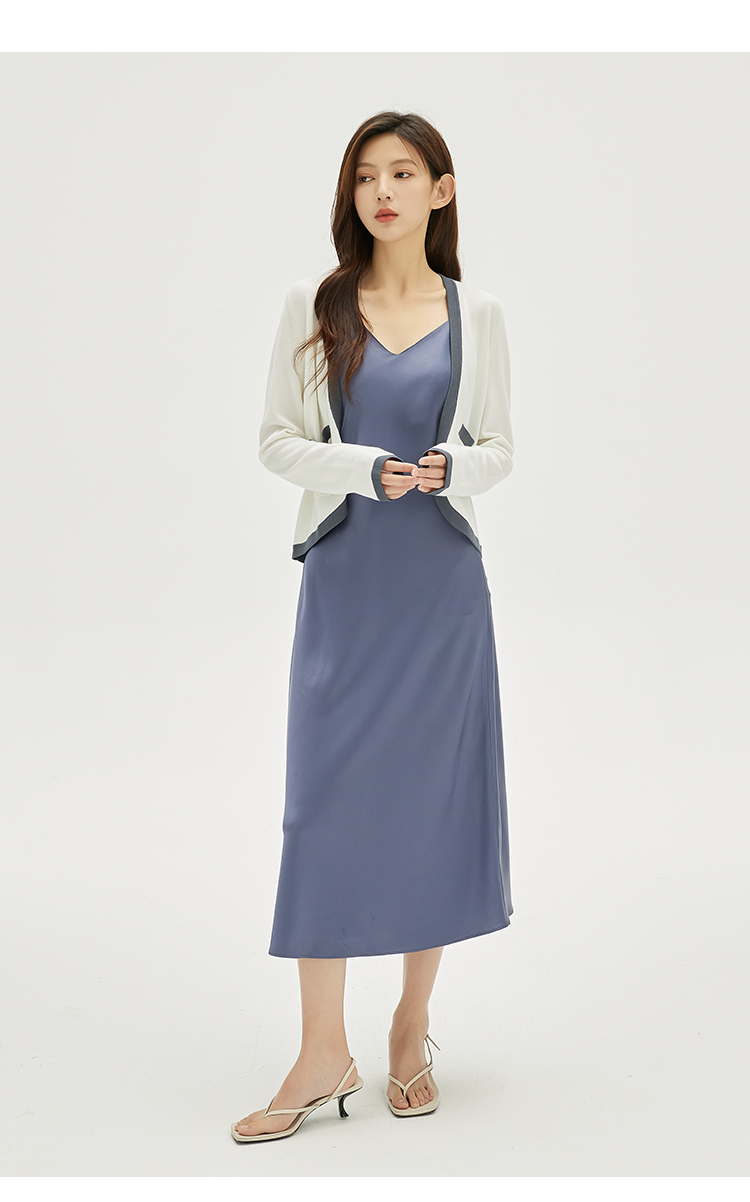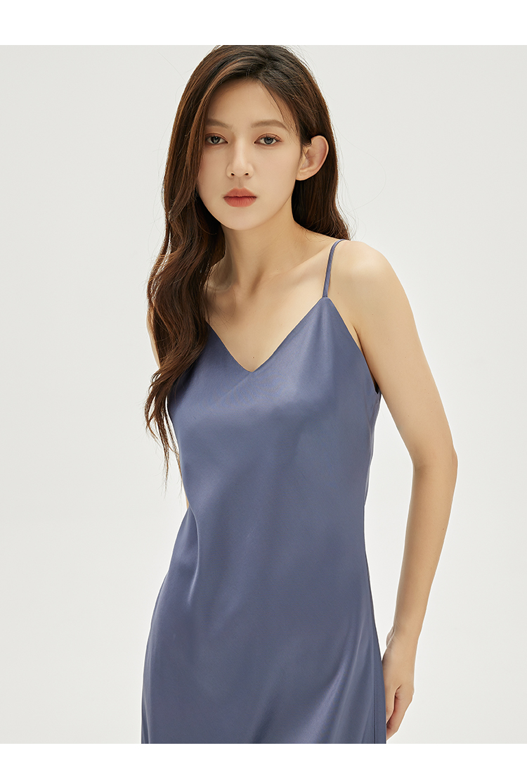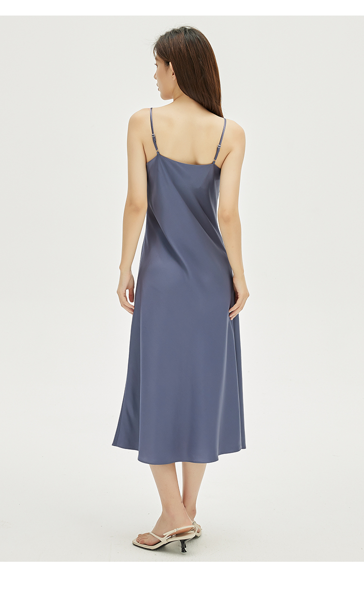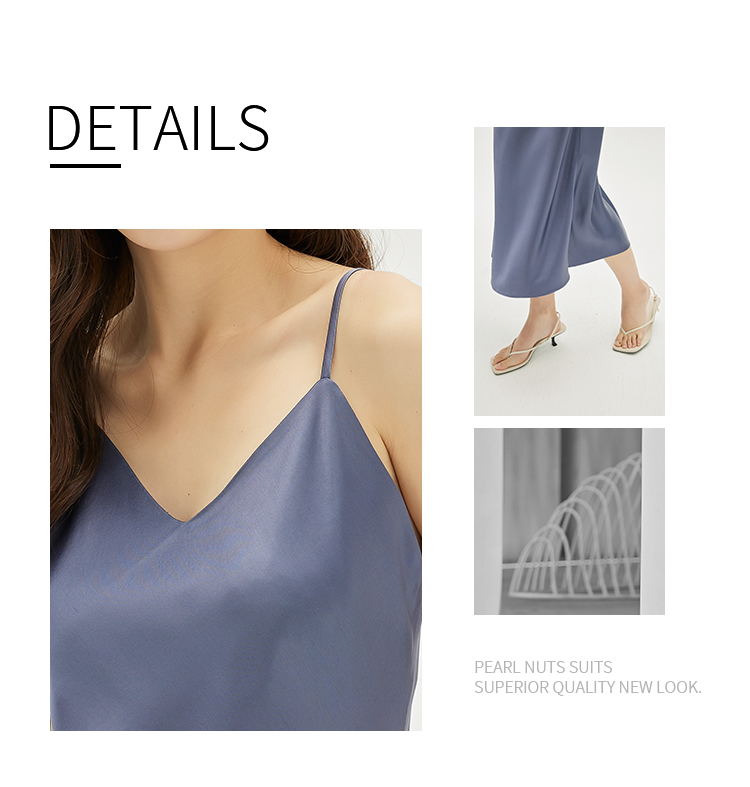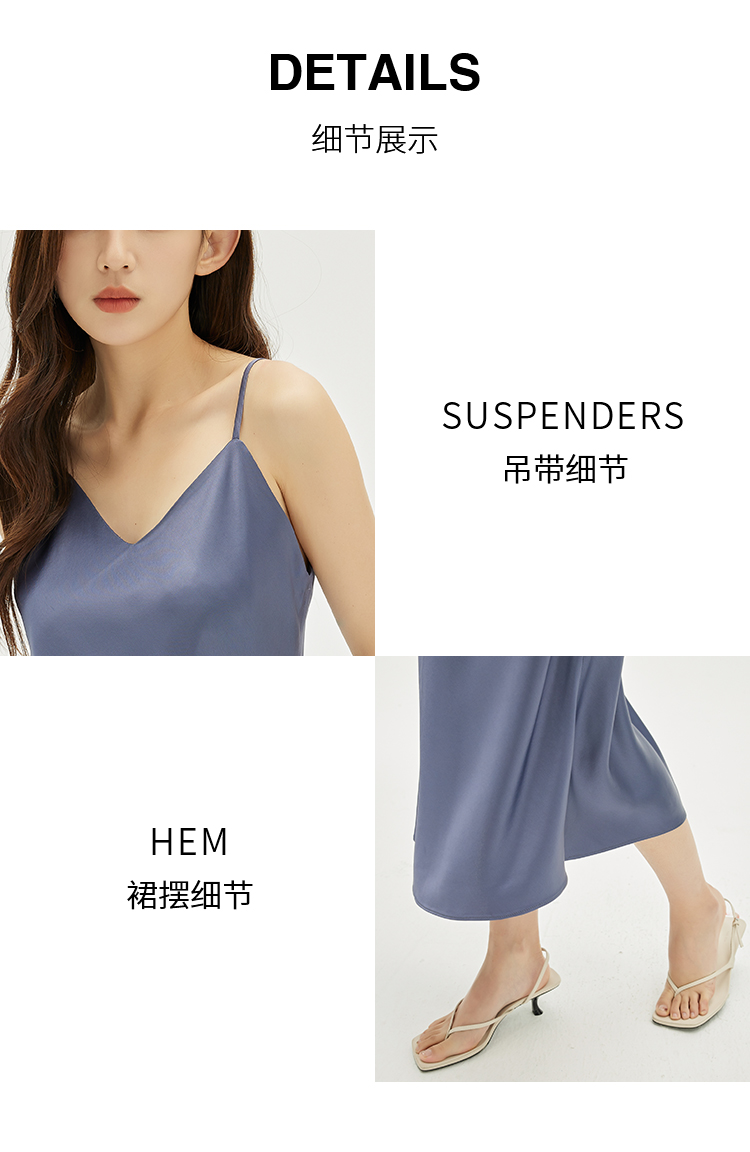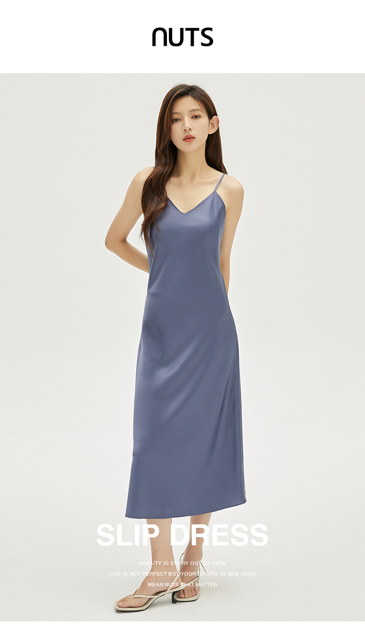 NUTS商场同款高级气质时尚V领醋酯缎面长款吊带连衣裙女332101078