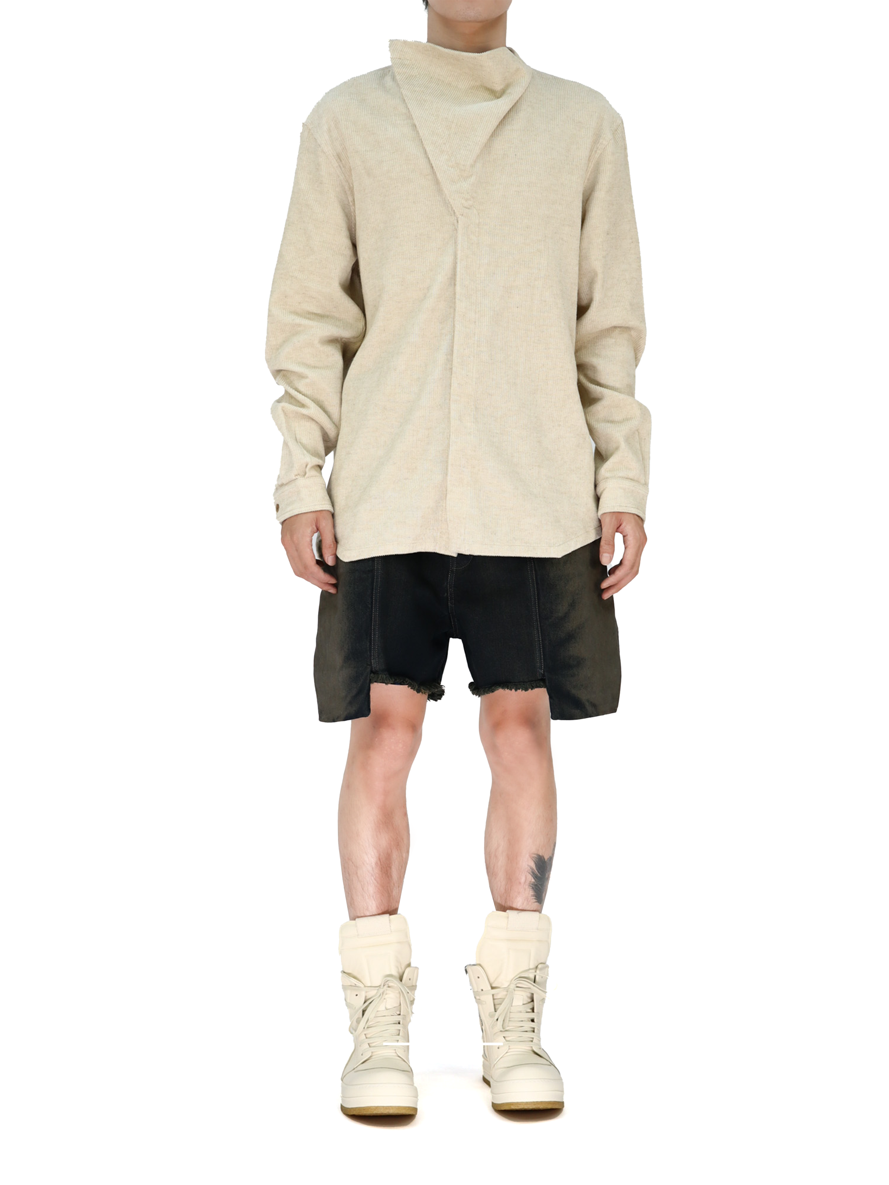 这款 Stefan 工装短裤是一款及膝五袋牛仔,低腰宽松版型。裤裆饰有银色纽扣,配有腰带环和铆钉口袋。裤脚侧面贴边口袋,外覆方角大口袋,斜角裤脚延伸至大腿前侧下摆下方,并配有腰带环;后口袋配有翻盖和防刮开合。