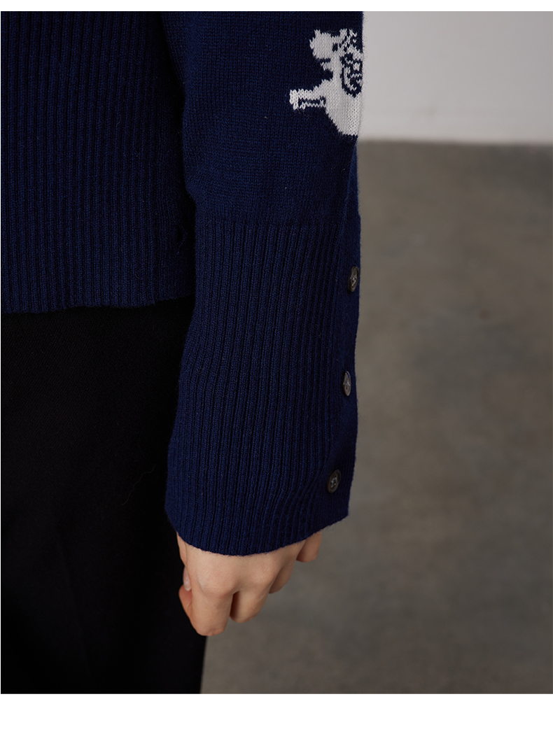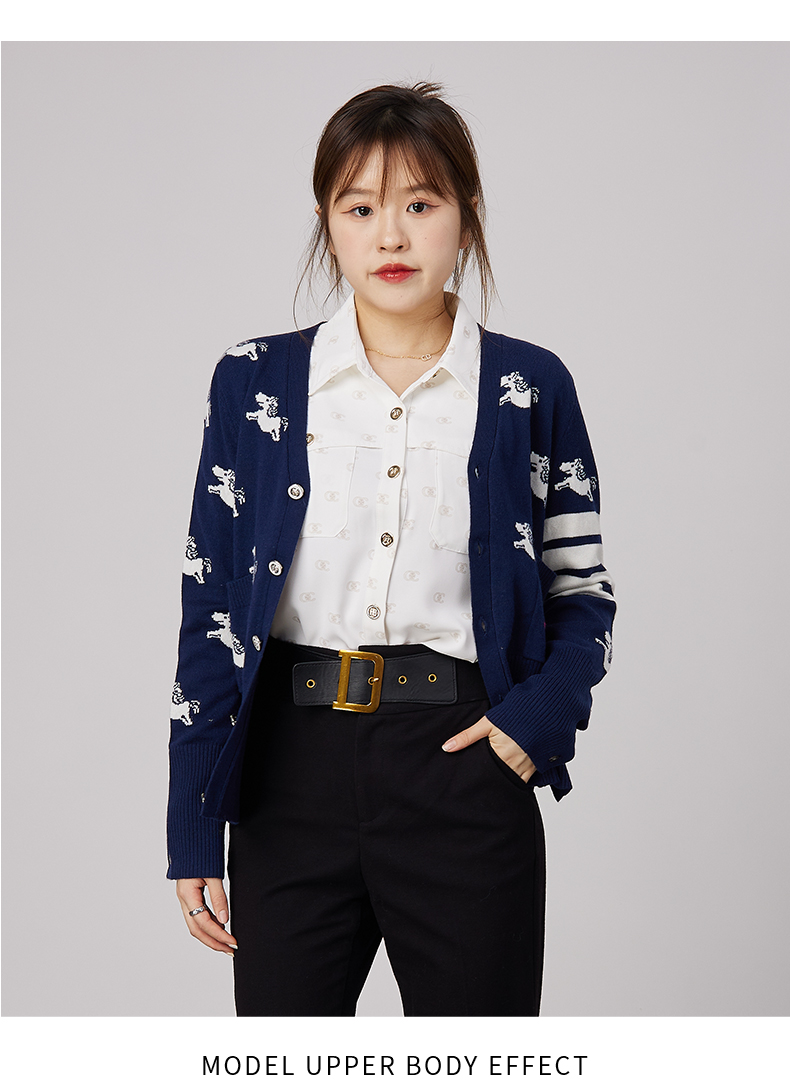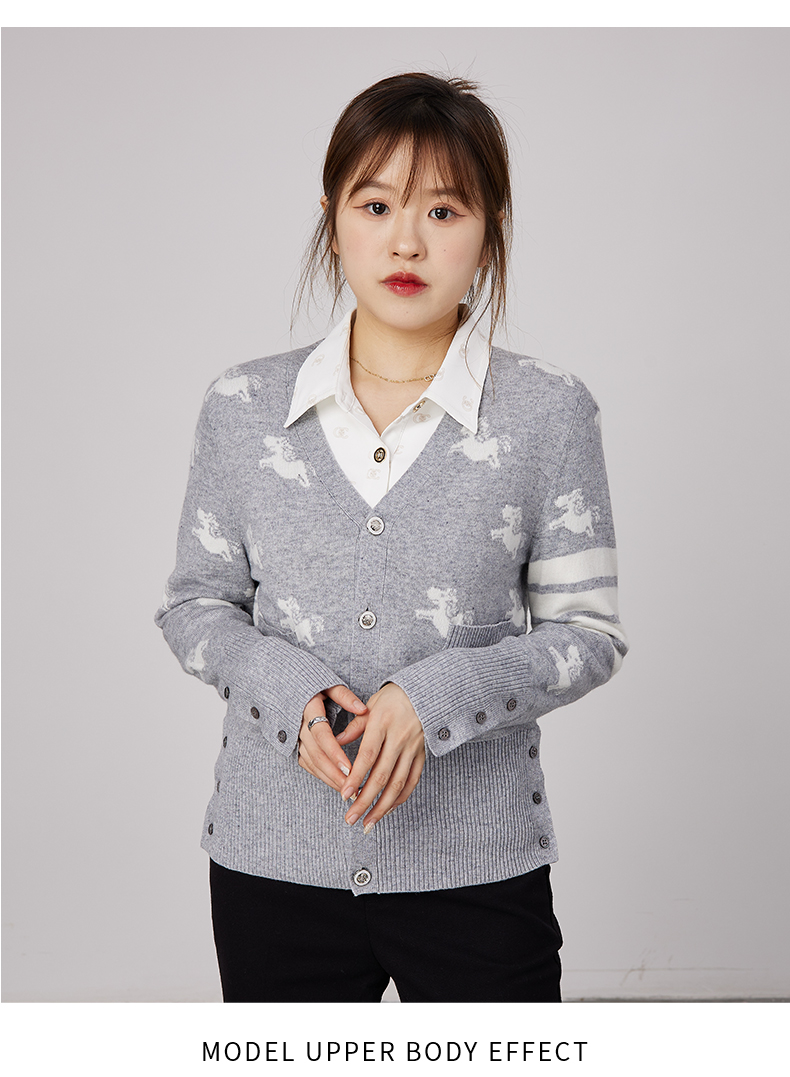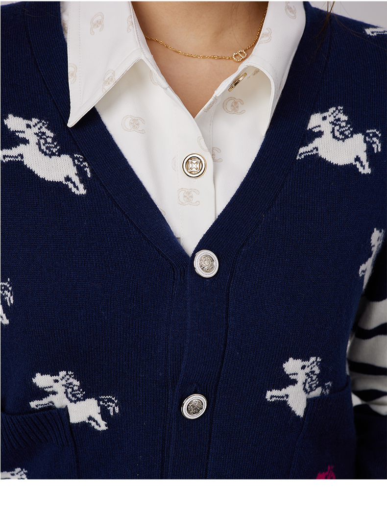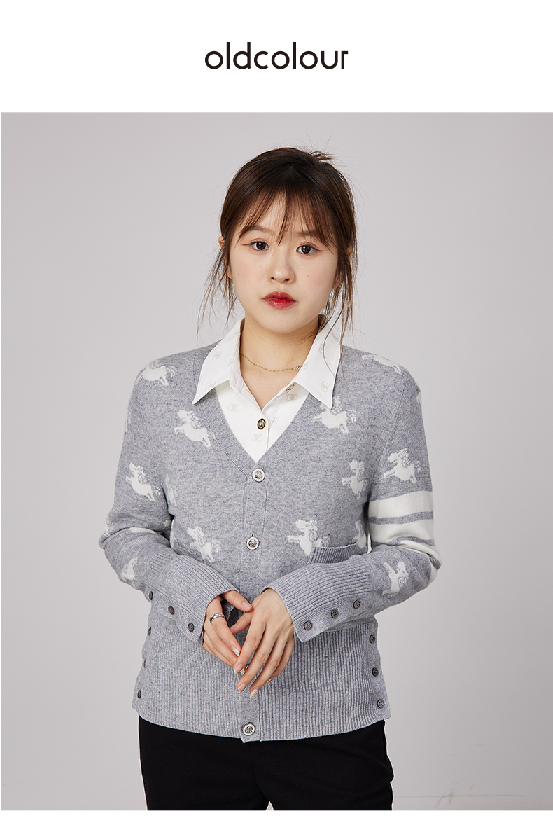 oldcolour春秋商场同款V领气质提花英伦风毛衣开衫N34053481