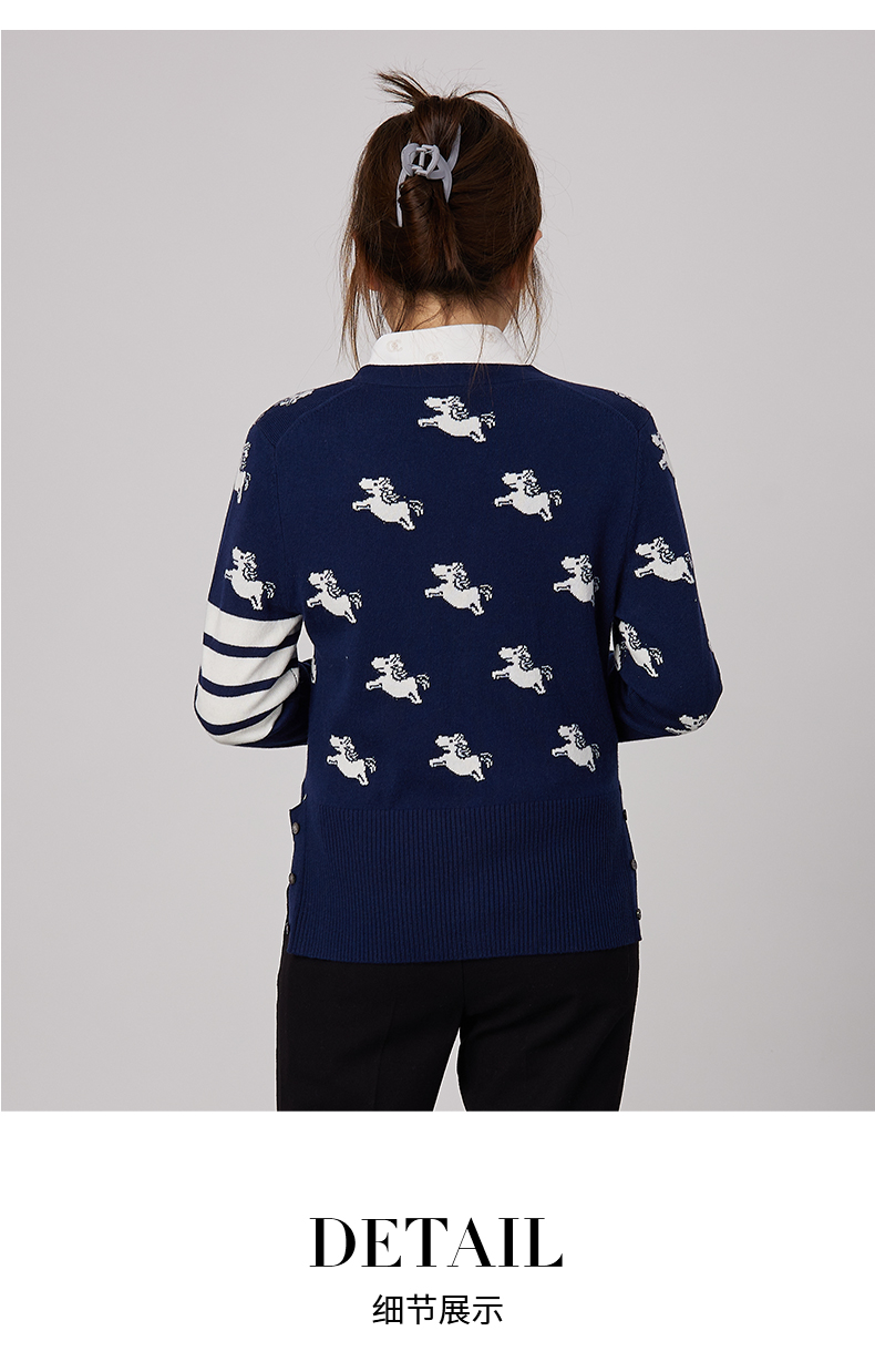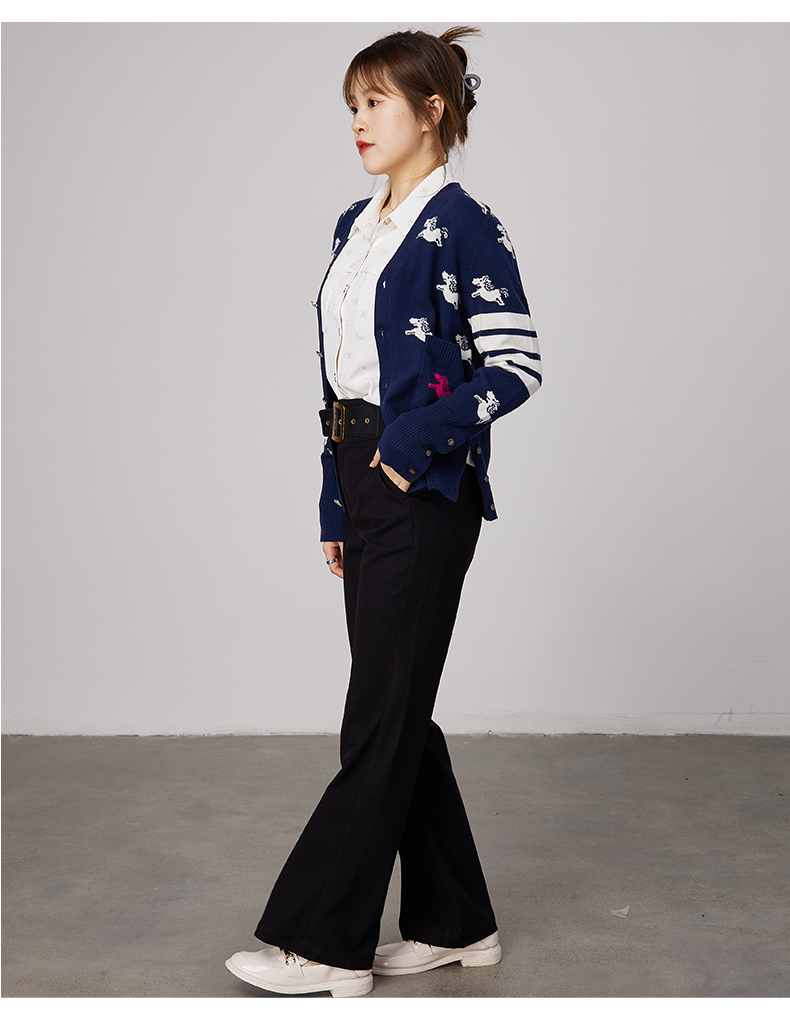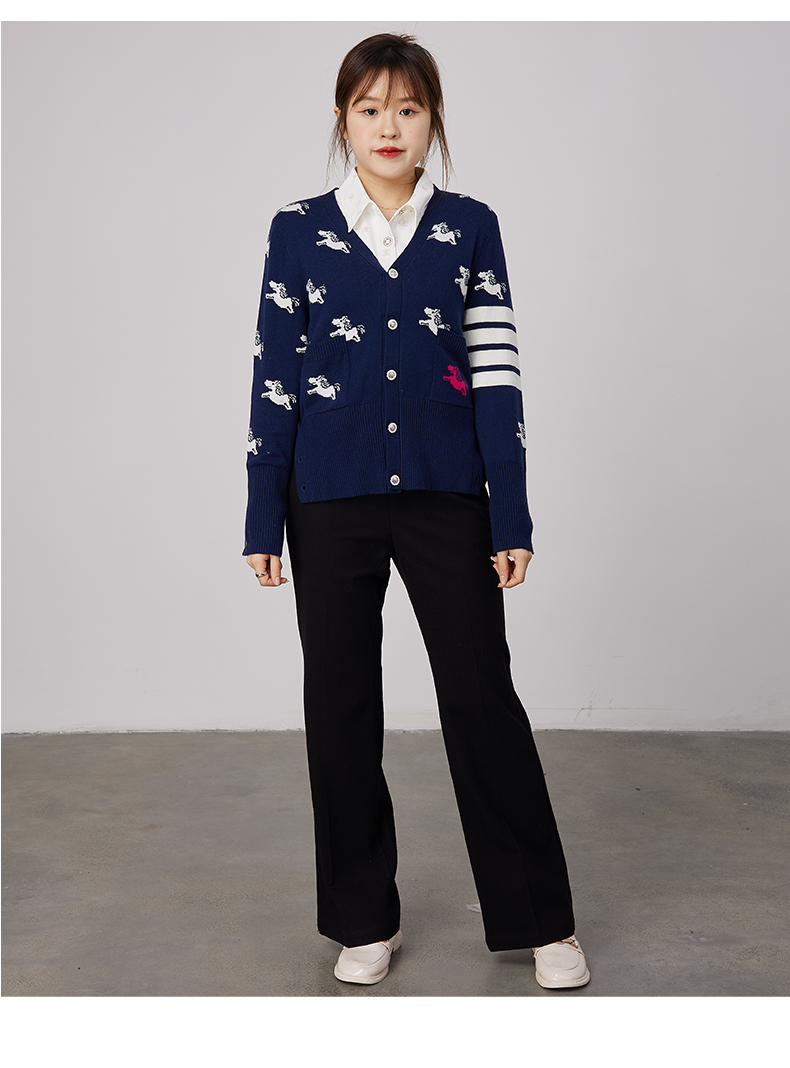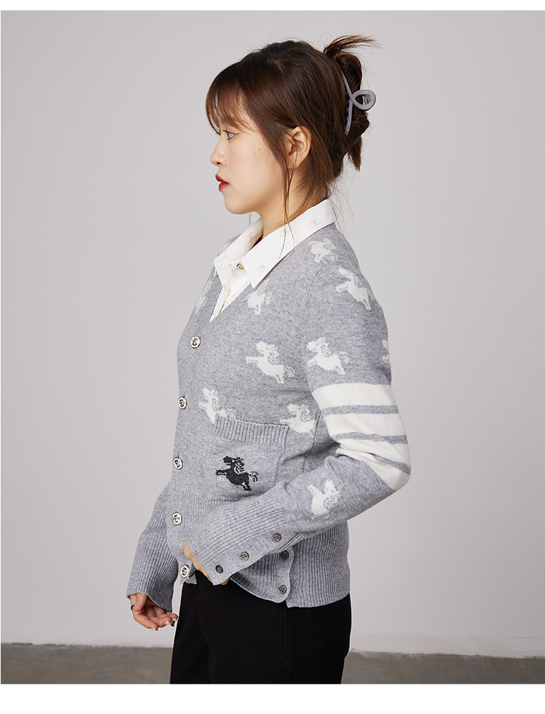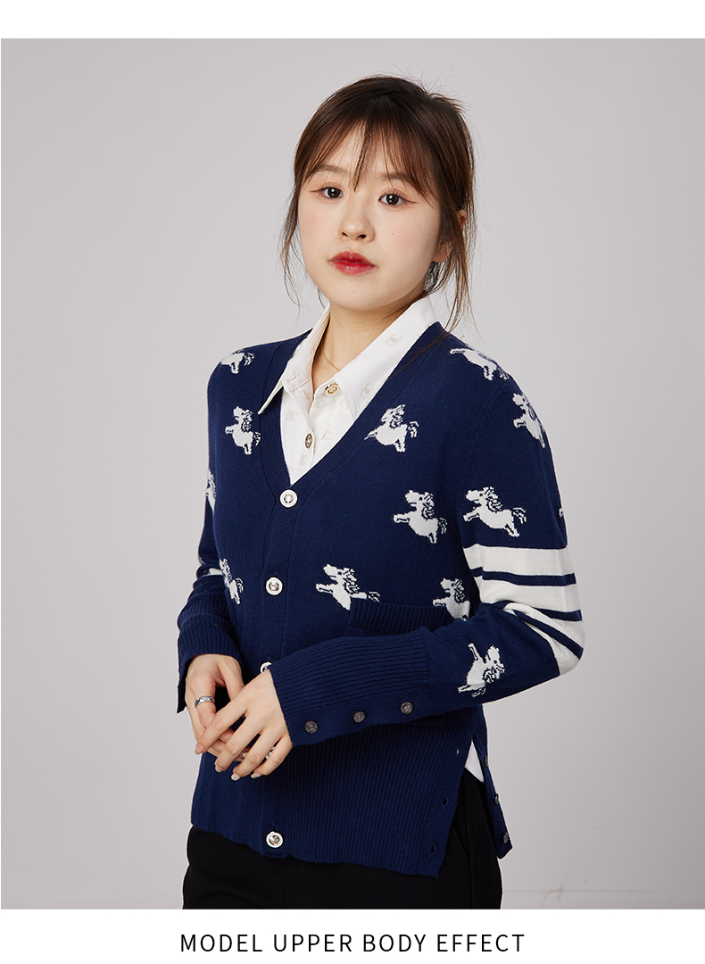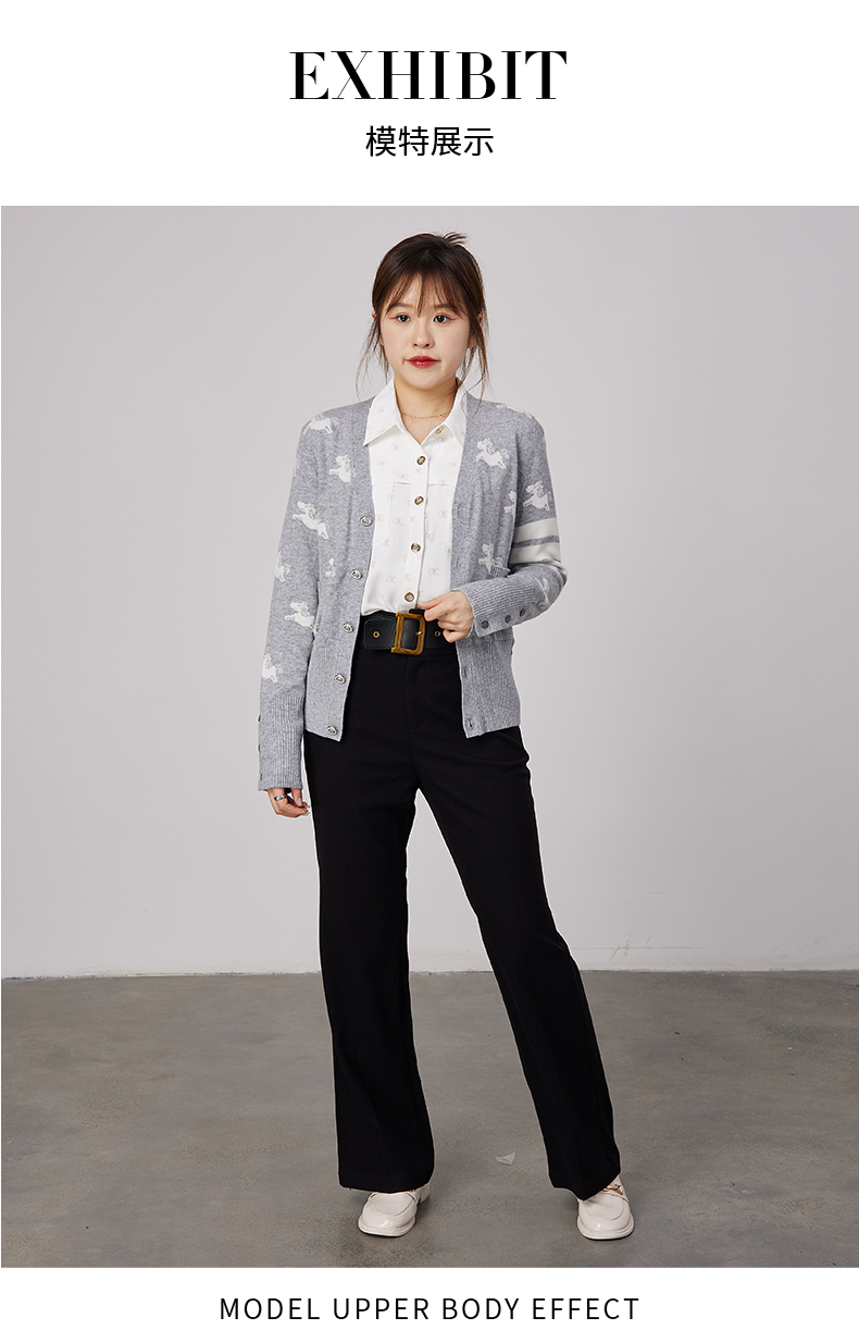 oldcolour春秋商场同款V领气质提花英伦风毛衣开衫N34053481