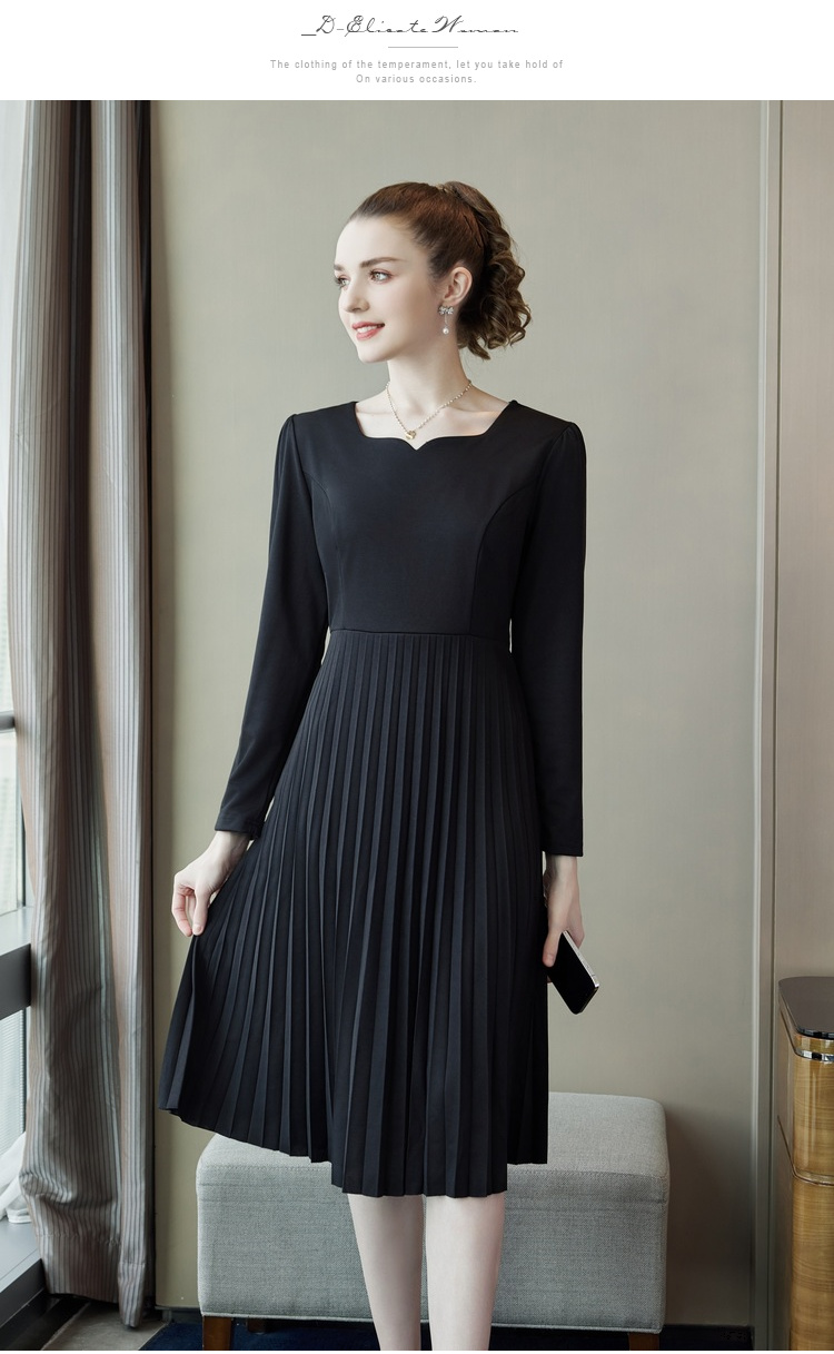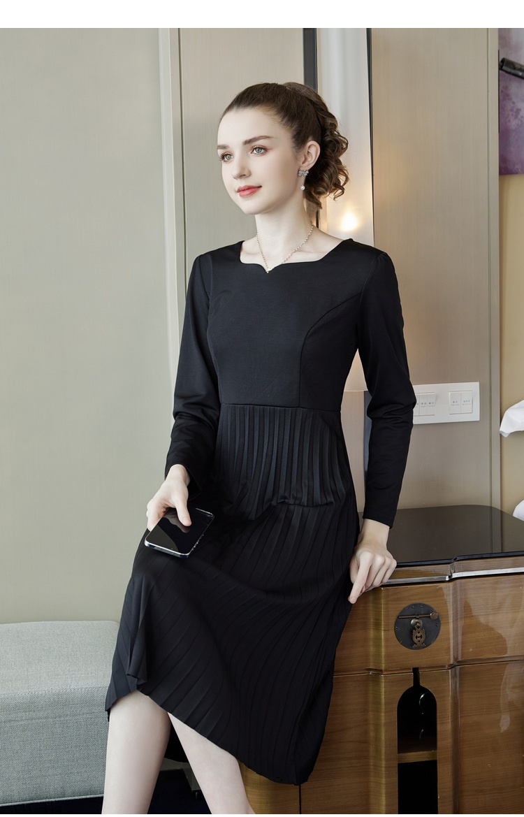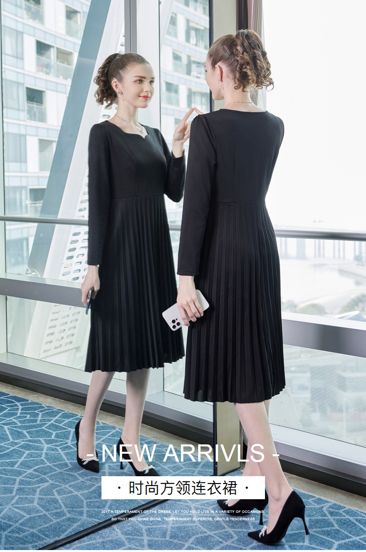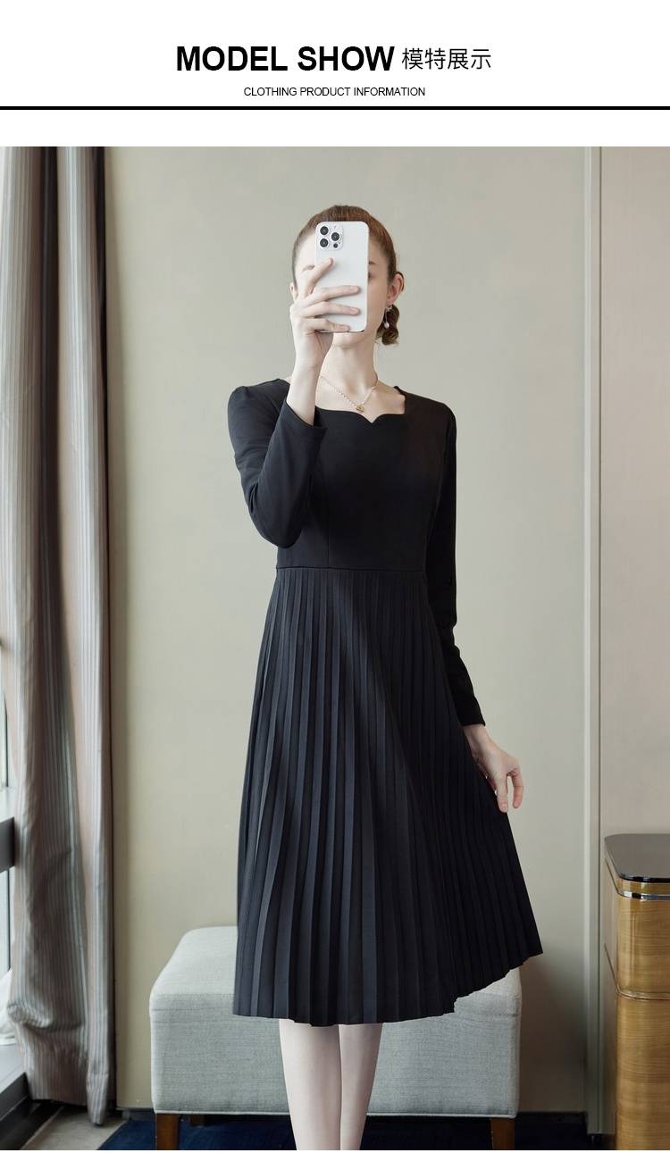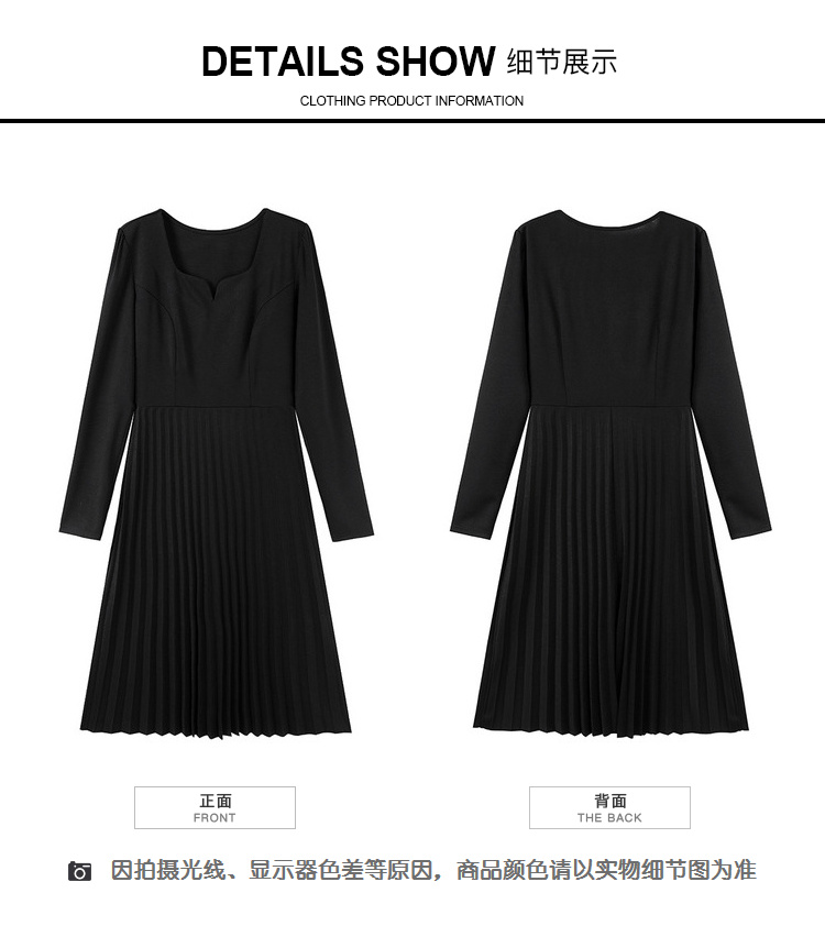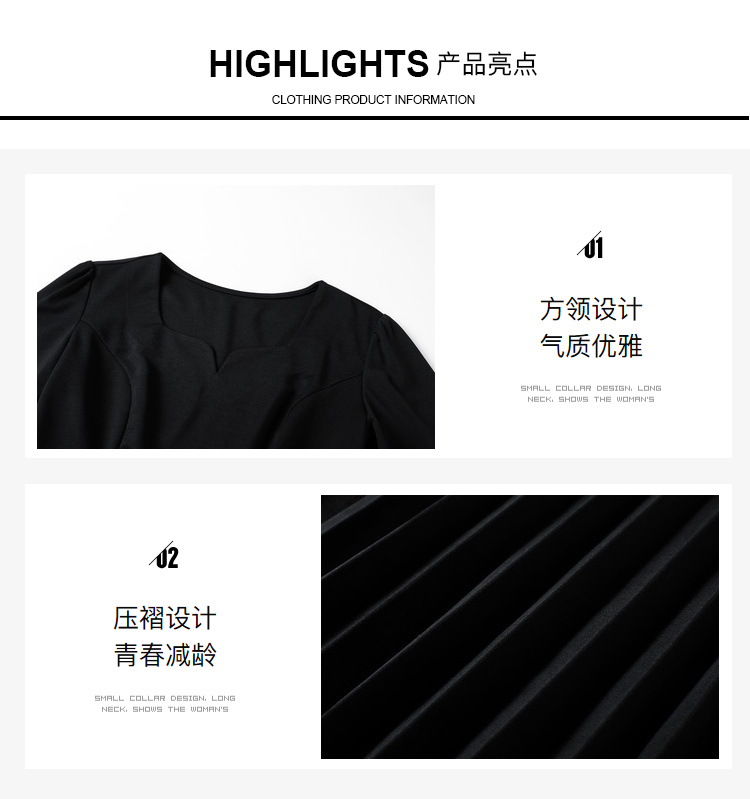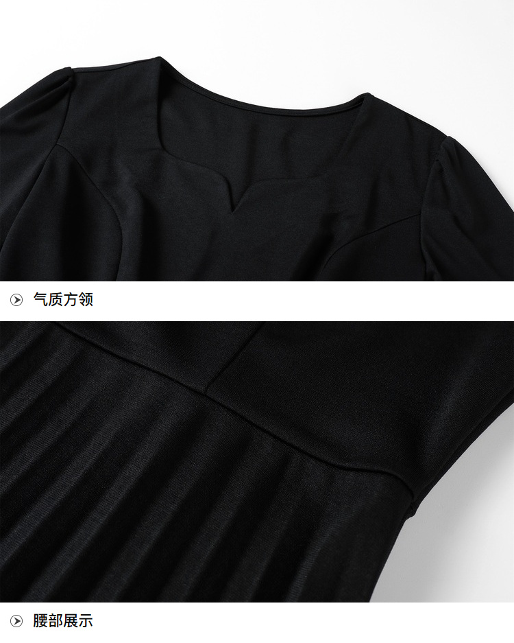 奢姿2025年春季新款大码女装纯色减龄裙子胖mm褶皱方领时尚连衣裙9941826112
