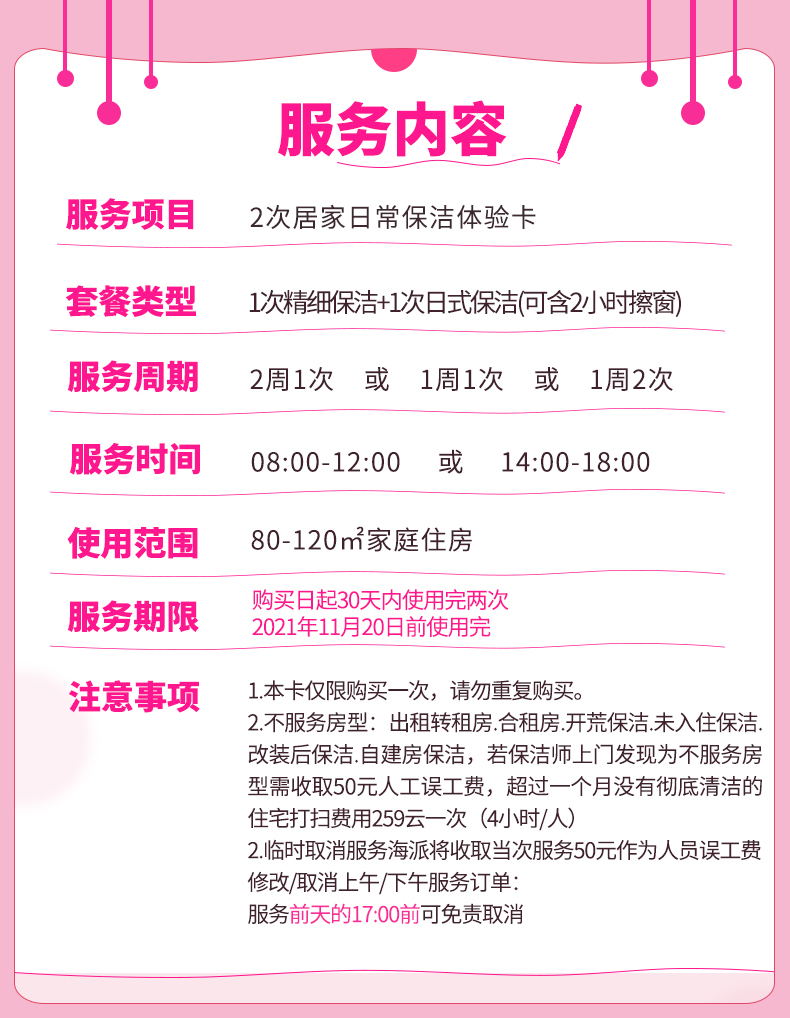2.上门服务具体时间以客服沟通时间为准,工作时间期间(9:00-18:00)客服将在下单后24个小时内电话联系确认上门服务时间。