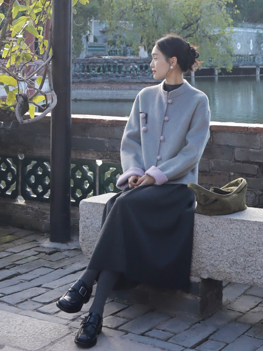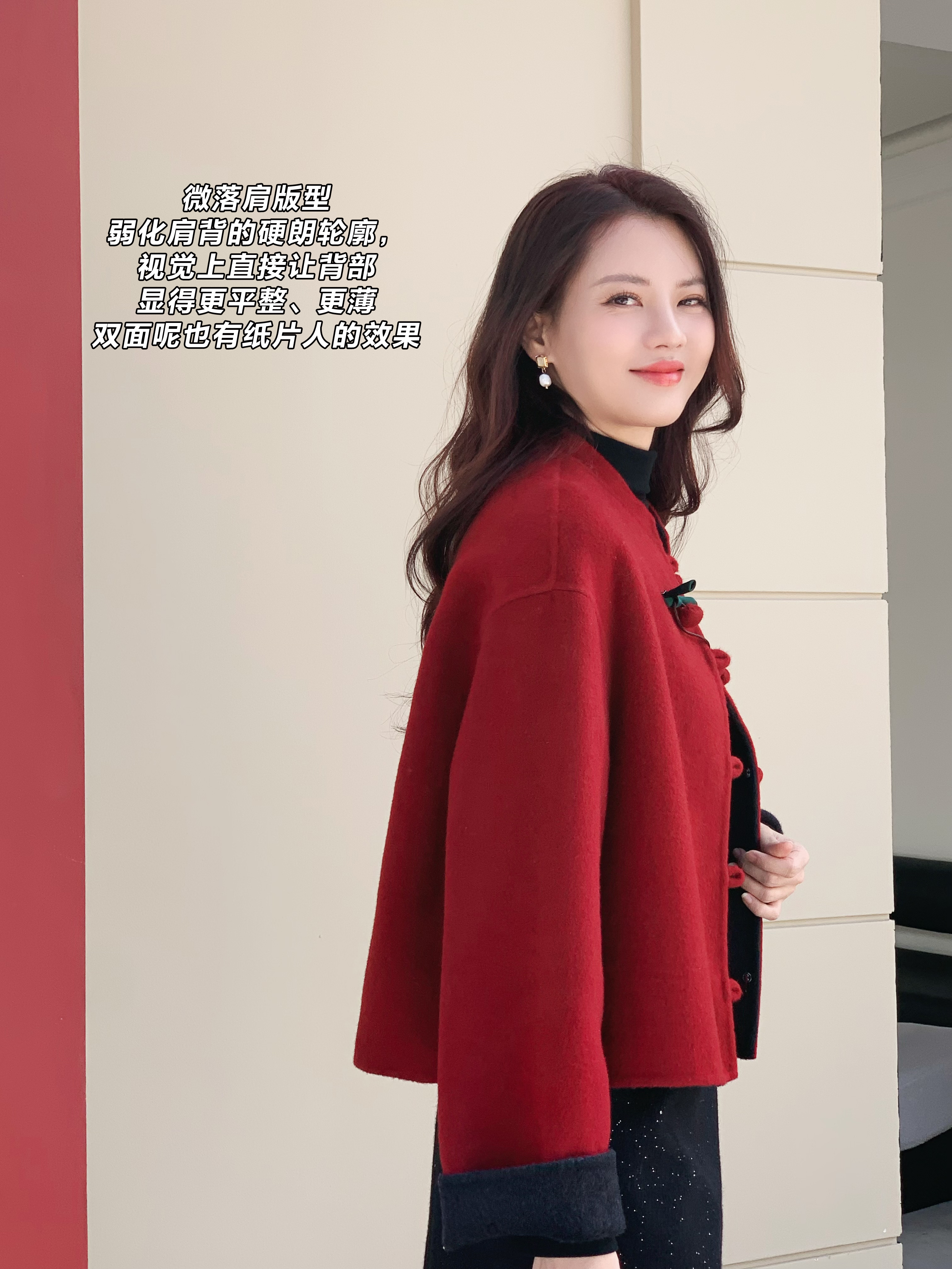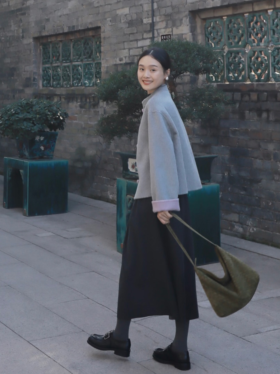 柔韧挺括,垂感一流:羊毛提供了结实骨架,保证大衣挺括有型;羊绒则注入柔软度和流动性。两者结合,使面料悬垂性极佳,线条流畅利落,不易松垮变形。