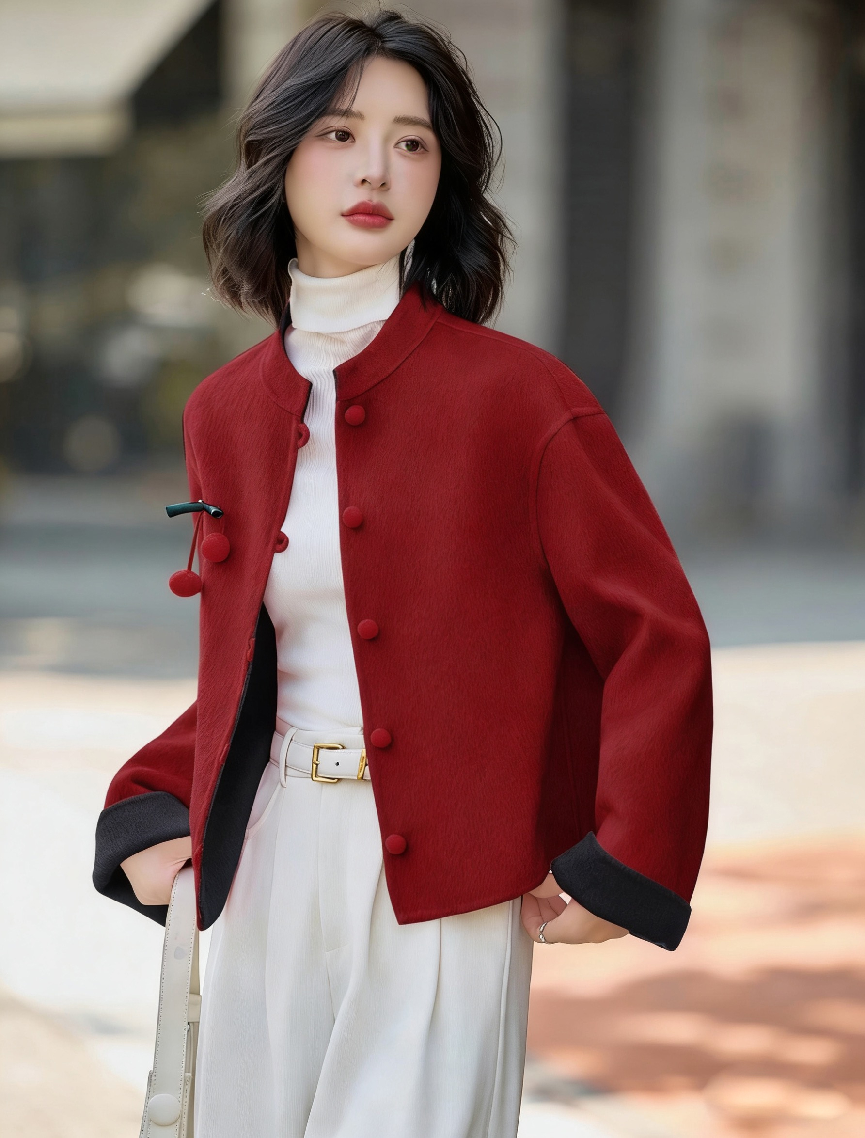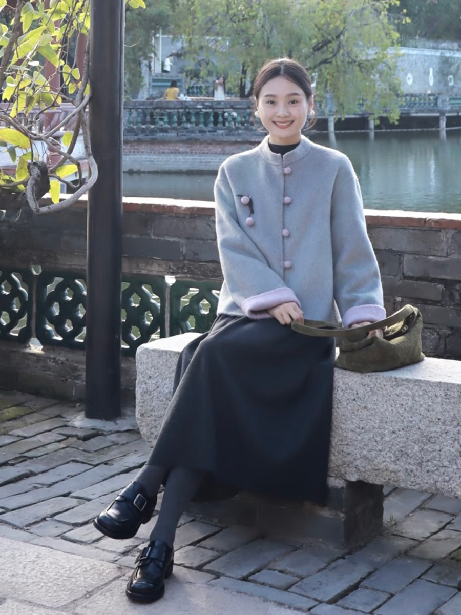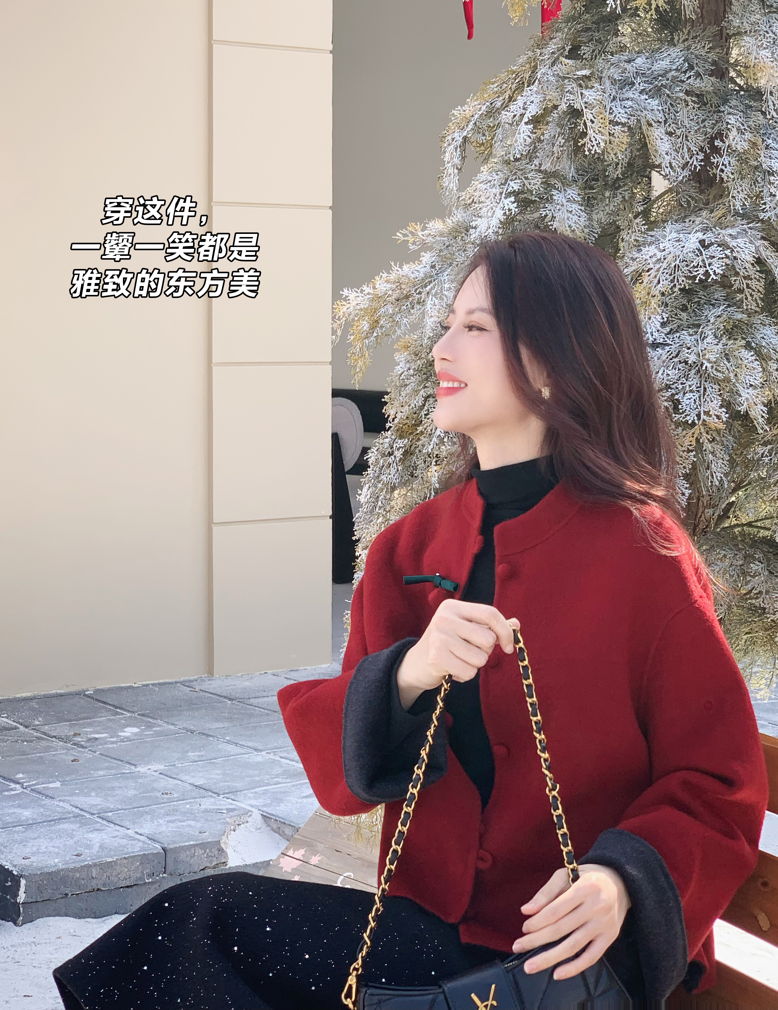 柔韧挺括,垂感一流:羊毛提供了结实骨架,保证大衣挺括有型;羊绒则注入柔软度和流动性。两者结合,使面料悬垂性极佳,线条流畅利落,不易松垮变形。