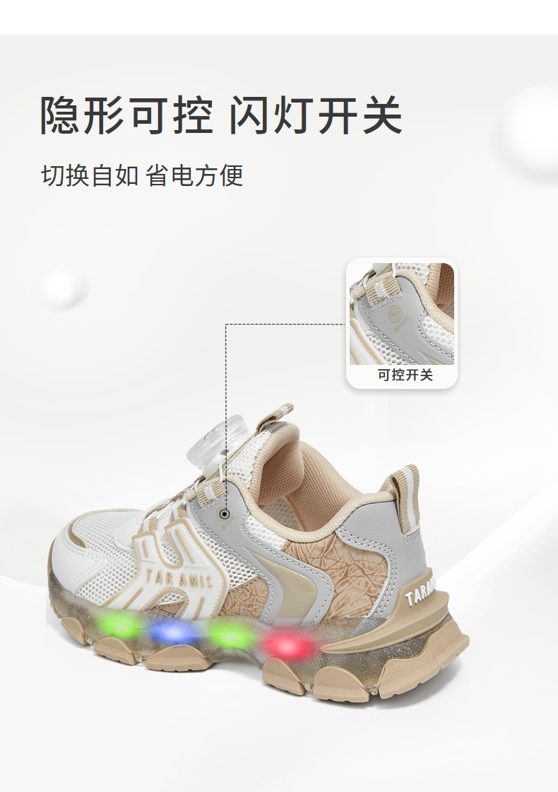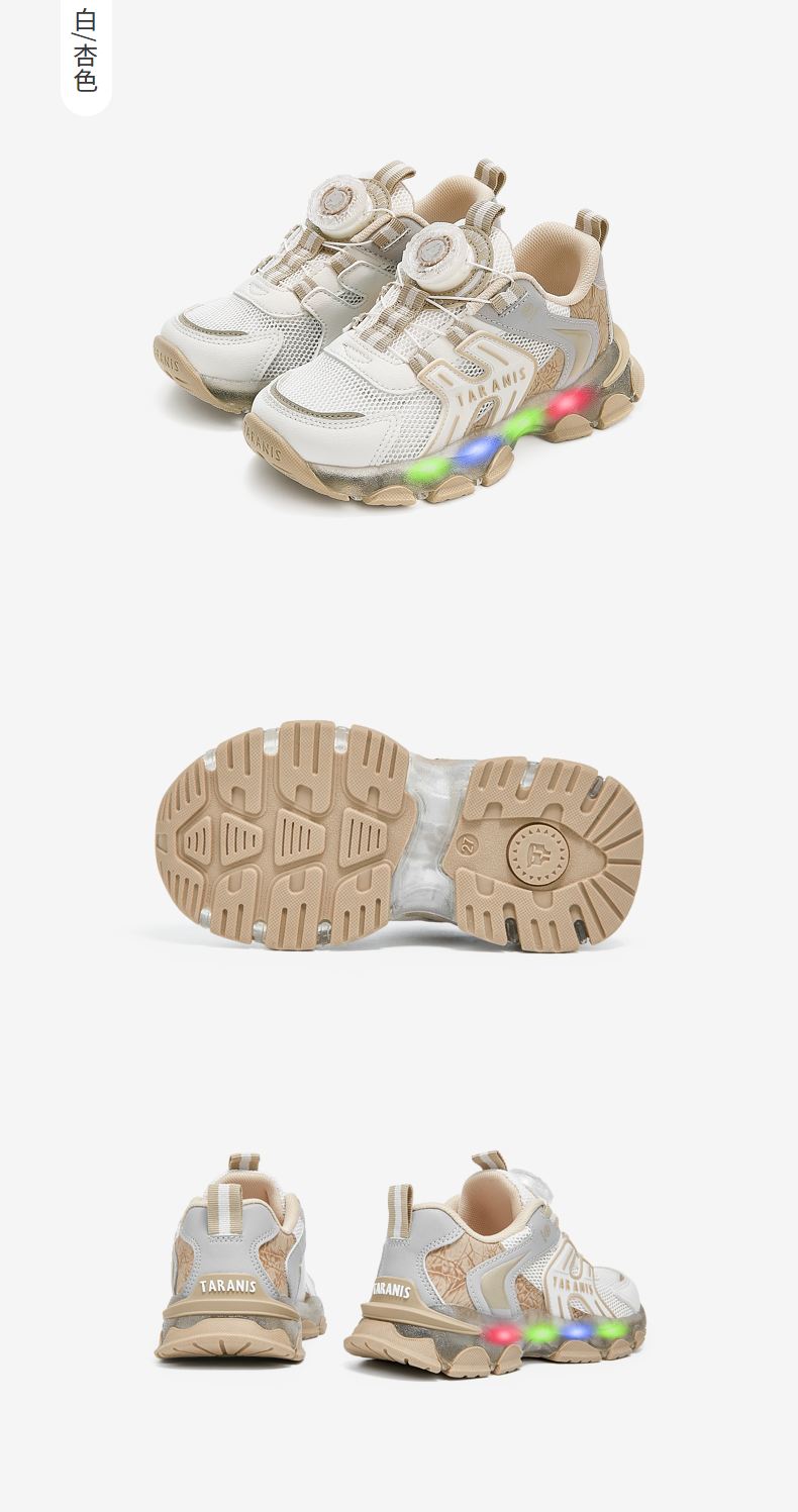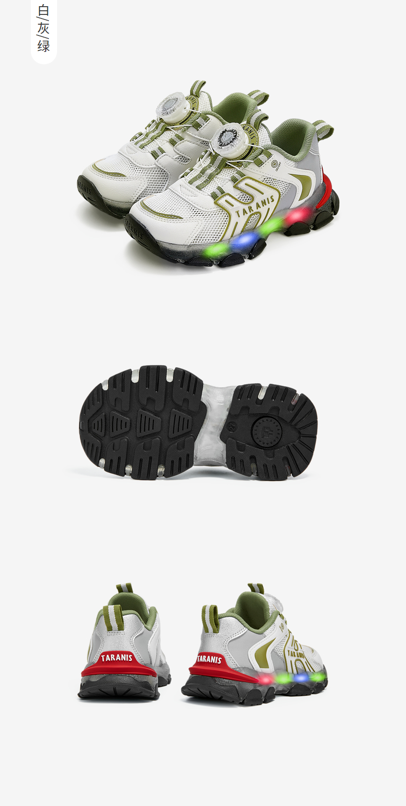 泰兰尼斯春季运动发光鞋男童亮灯旋钮跑步鞋女童闪灯鞋软底休闲鞋 T01X5A6031