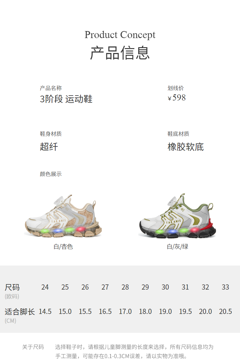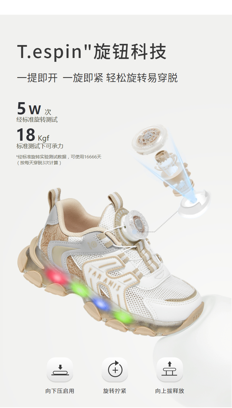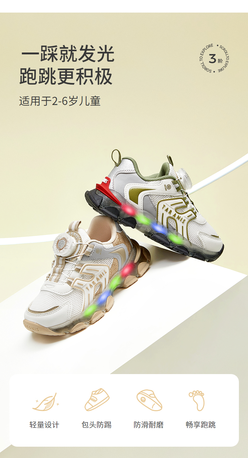泰兰尼斯春季运动发光鞋男童亮灯旋钮跑步鞋女童闪灯鞋软底休闲鞋 T01X5A6031