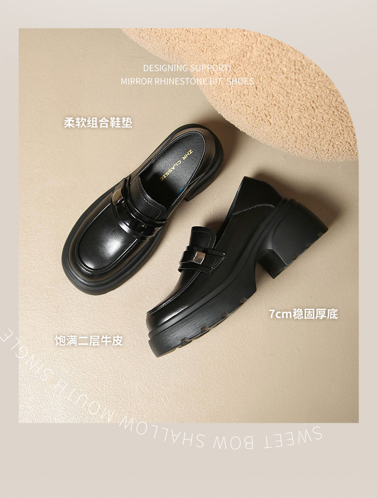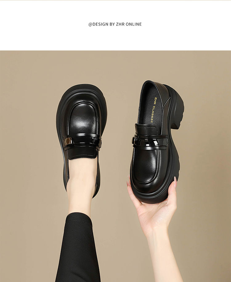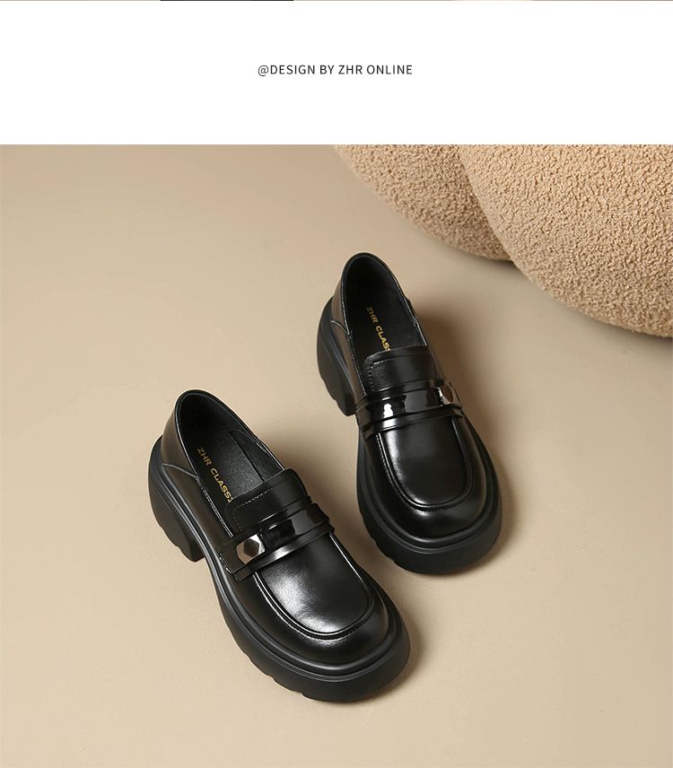 ZHR则则时尚亮面厚底乐福鞋女鞋2024春季新款休闲两穿百搭小皮鞋