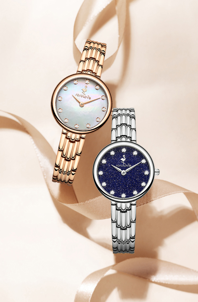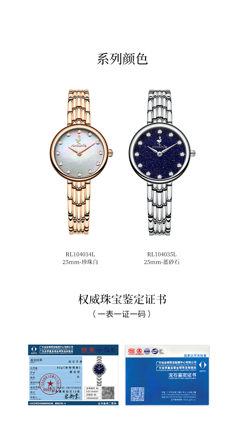 【ROROLOVE】邂逅Enchanted系列 天然钻石七彩光时尚手表女轻奢简约腕表女表礼物(12颗、25mm)