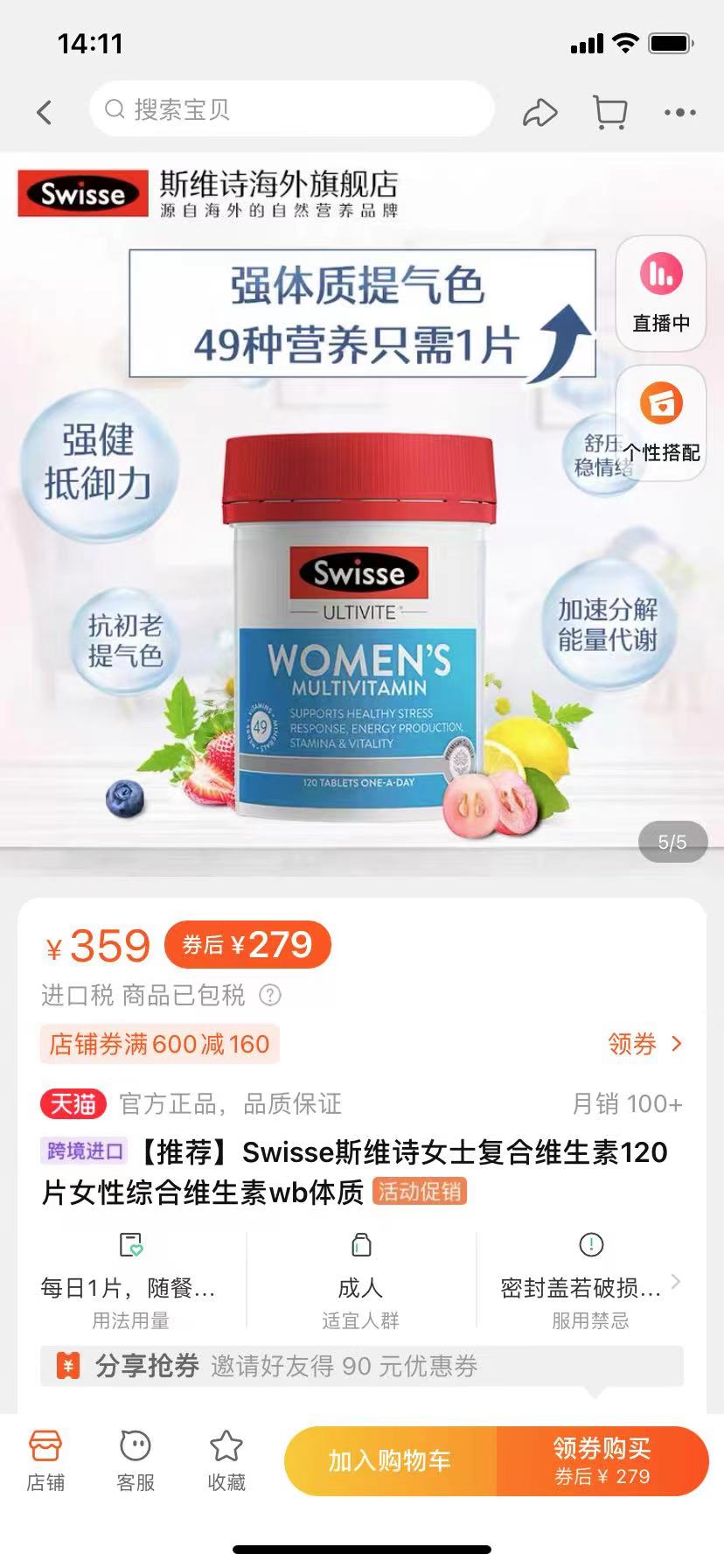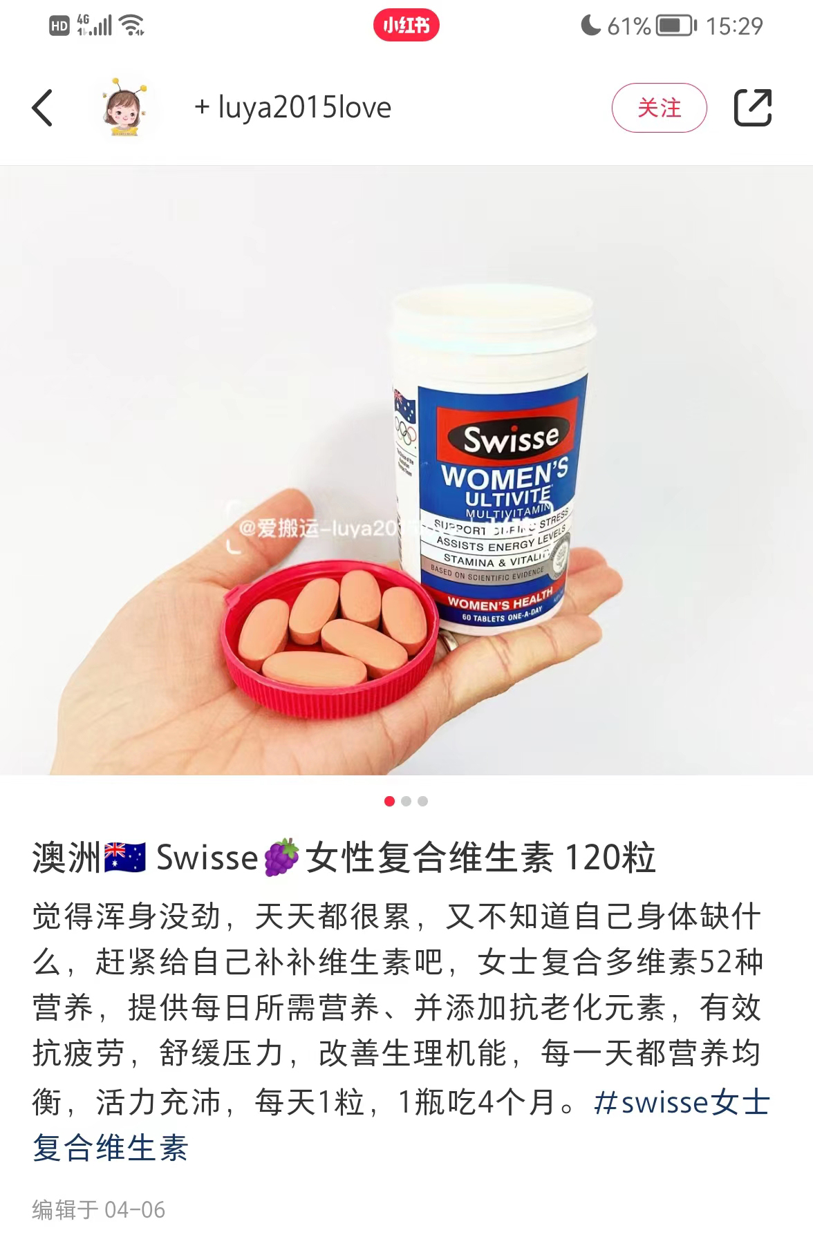老米优品 / 【保税仓直发】澳大利亚 Swisse 女性复合维生素 120片!