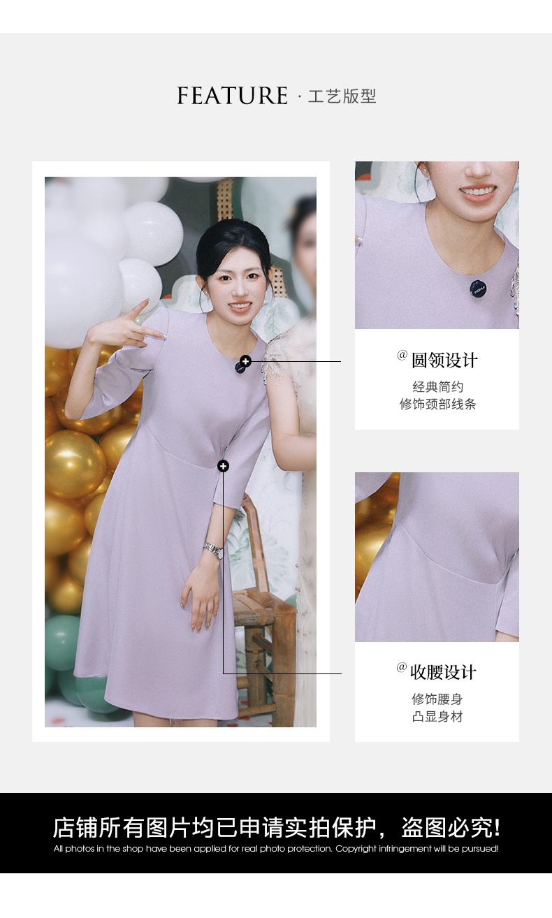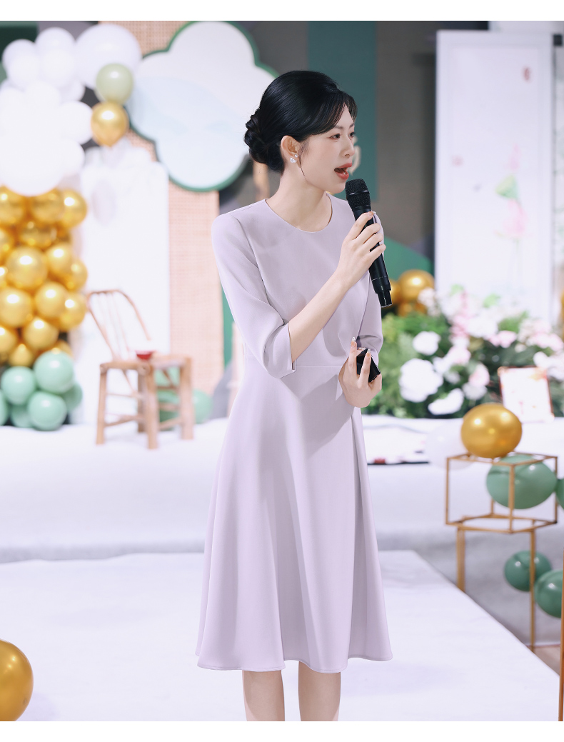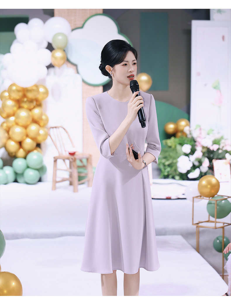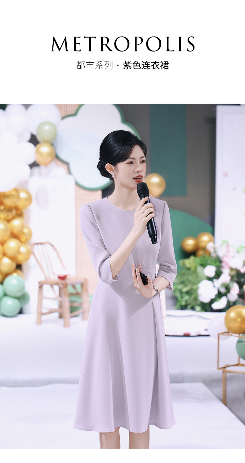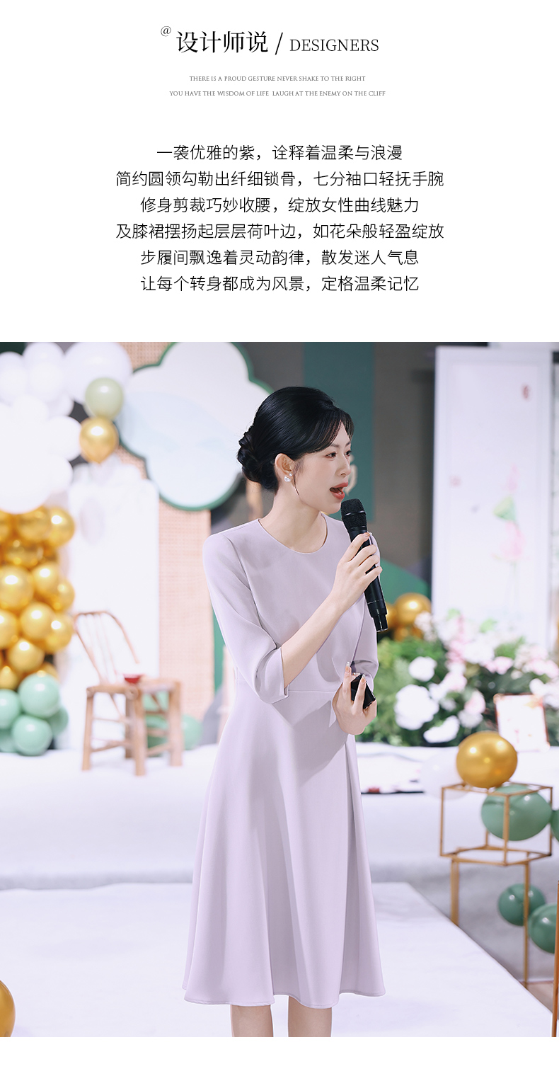 法小曼*子珍专款/紫色连衣裙气质主持人名媛高端女神艺考生Q1432