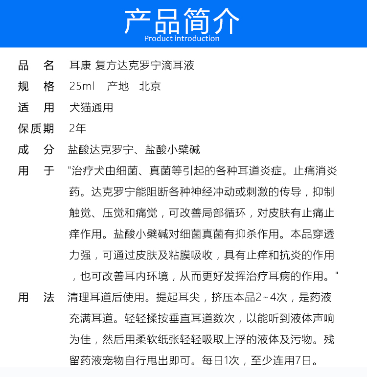 众诚方源康牧 复方达克罗宁耳康滴耳液 宠物猫狗真菌耳yan耳痒螨虫