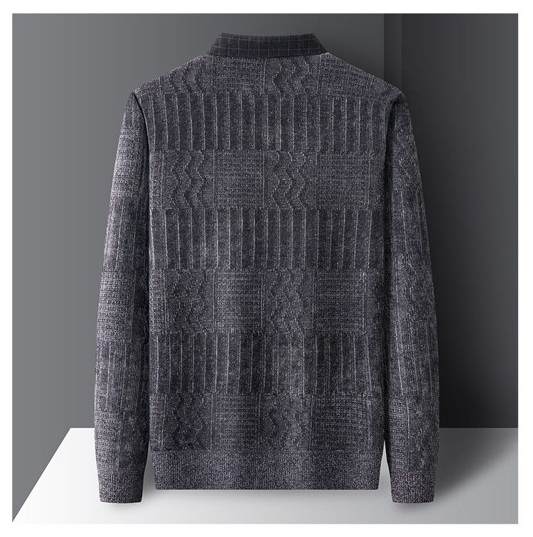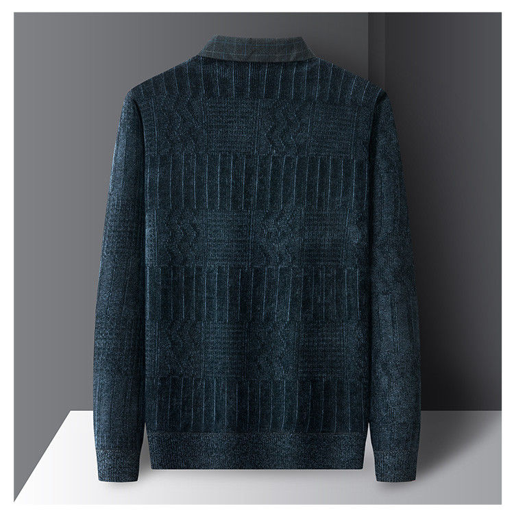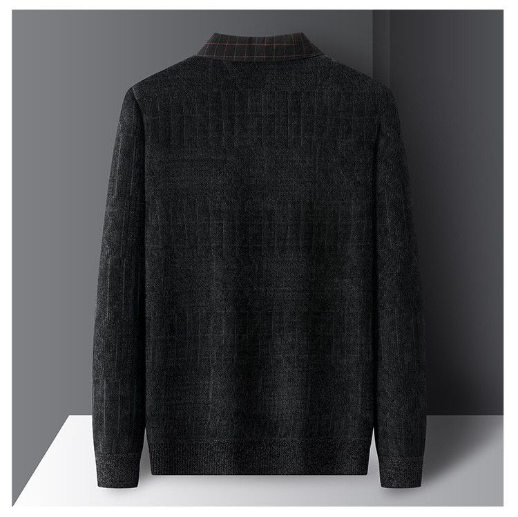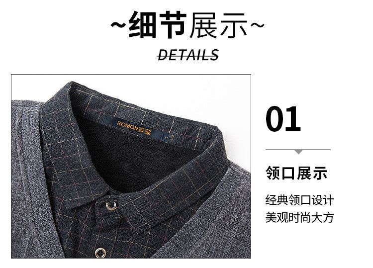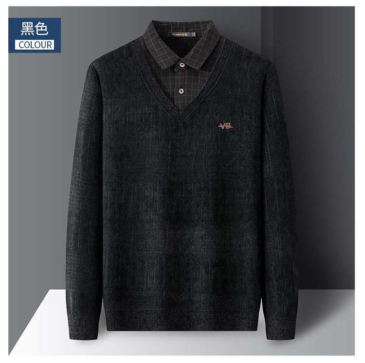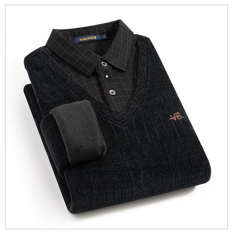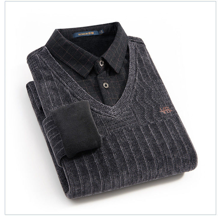 【加绒加厚】罗蒙秋冬雪尼尔假两件针织衫男士衬衫领商务毛衣男士针织衫