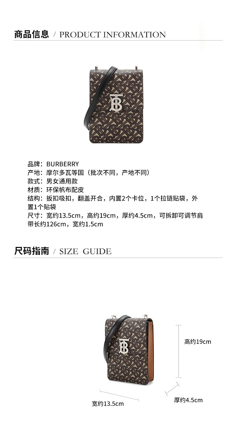【国内现货】BURBERRY/博柏利 男女通用款热塑性聚氨酯Robin洛宾包手机包单肩斜挎包 80328981