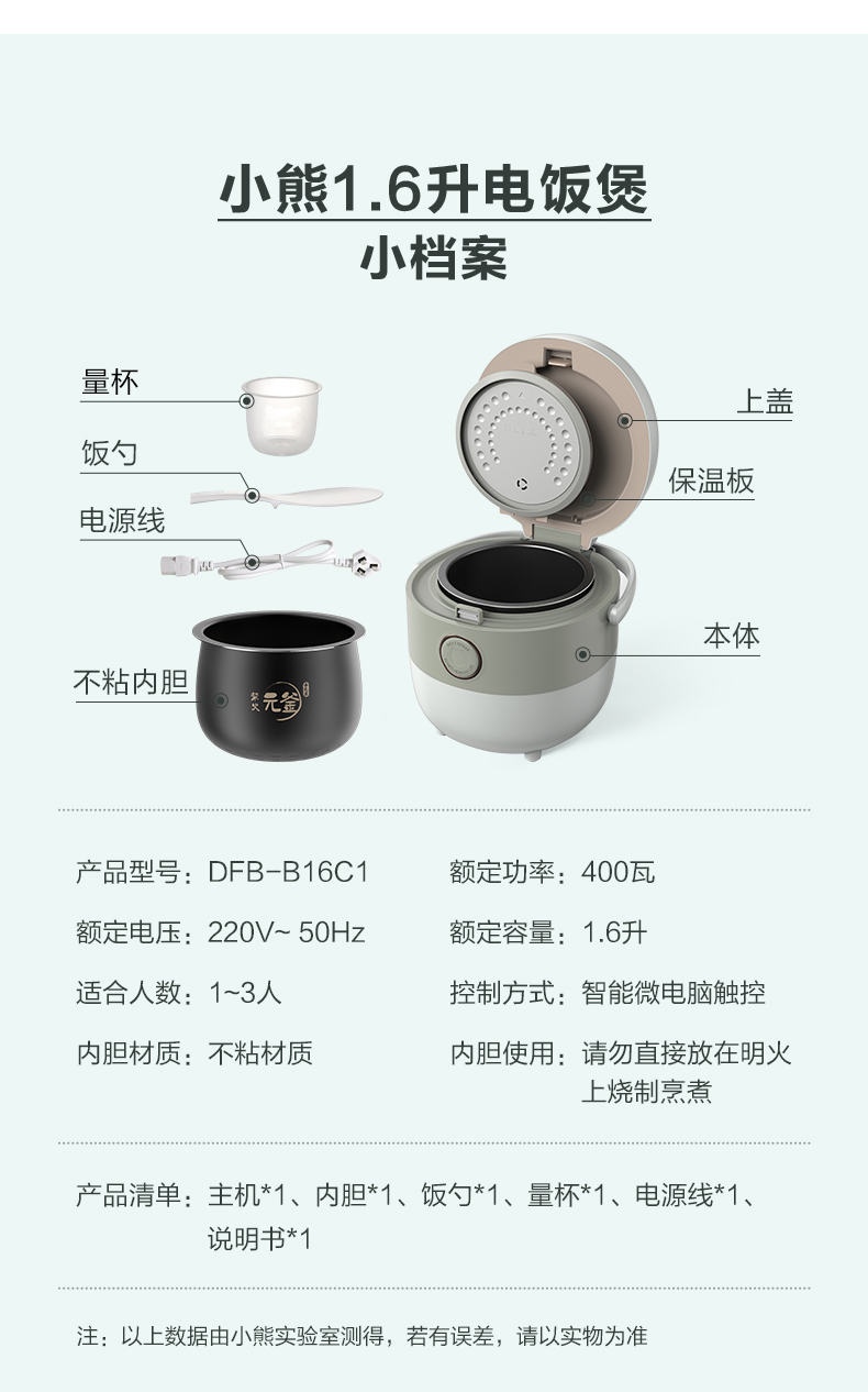 【小程序】小熊电饭煲家用迷你煮饭锅1-2人3-4人小型多功能智能柴火饭电饭锅DFB-B16C1