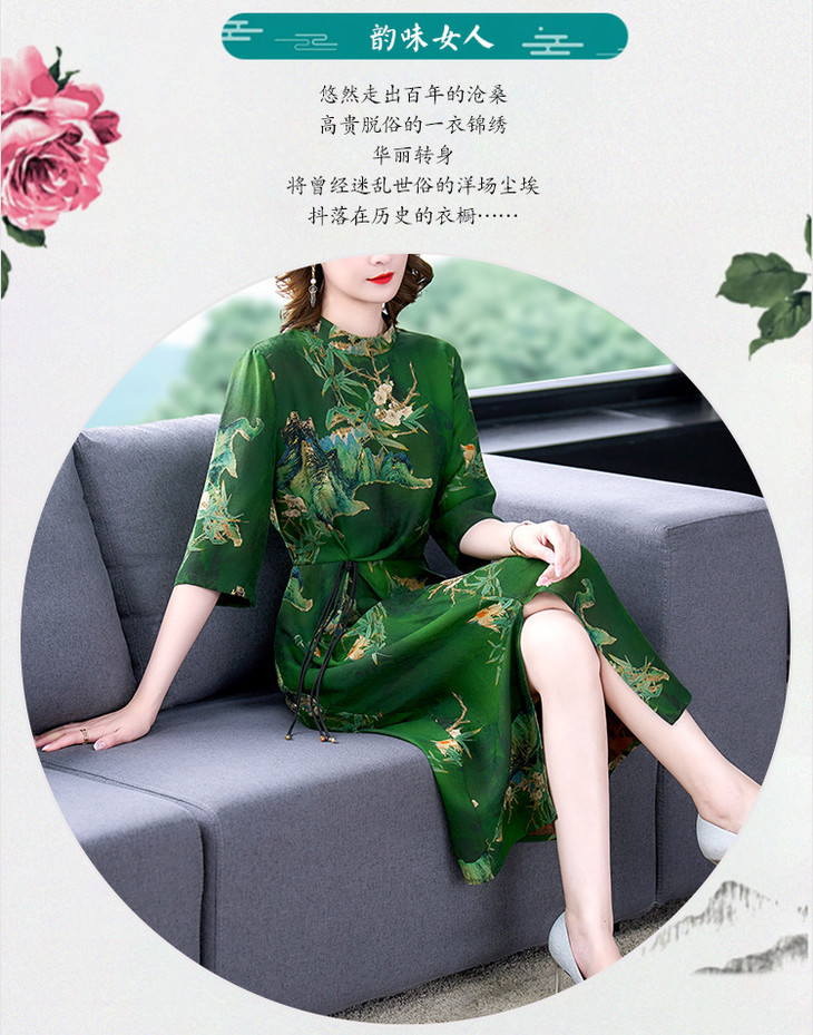 秋冬新款,气质仿水貂复合超柔中长款女士清新年轻款改良旗袍MLS-6826