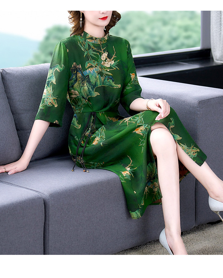 优雅复古遮肉收腰显瘦连衣裙AHM-ddfs8867