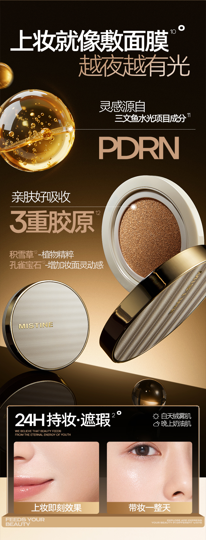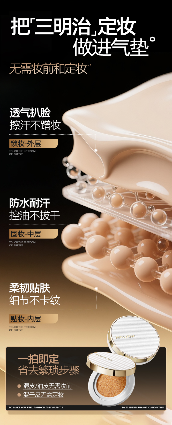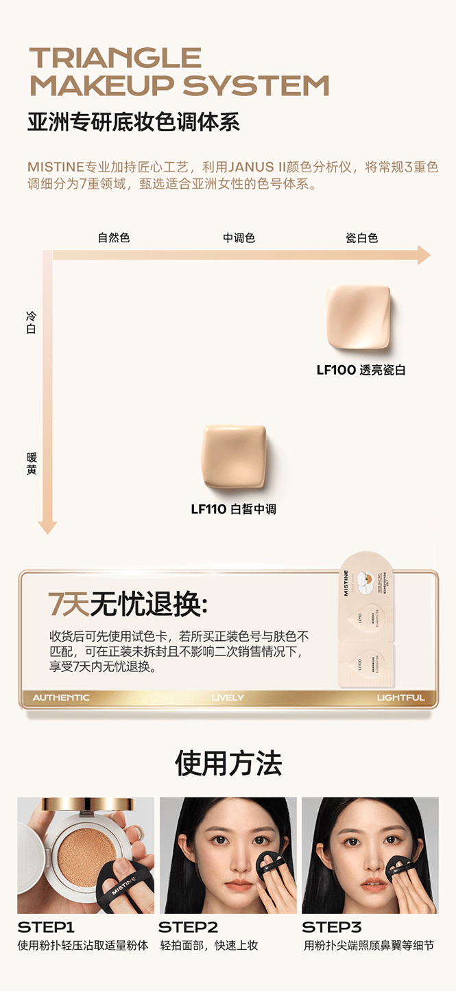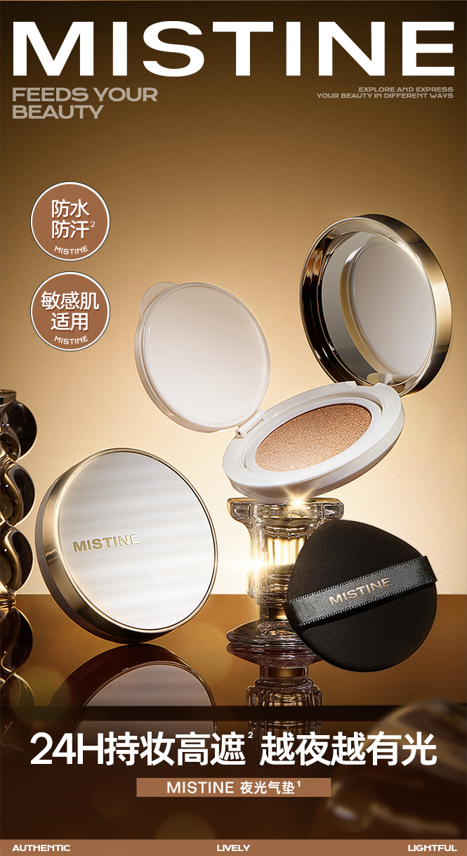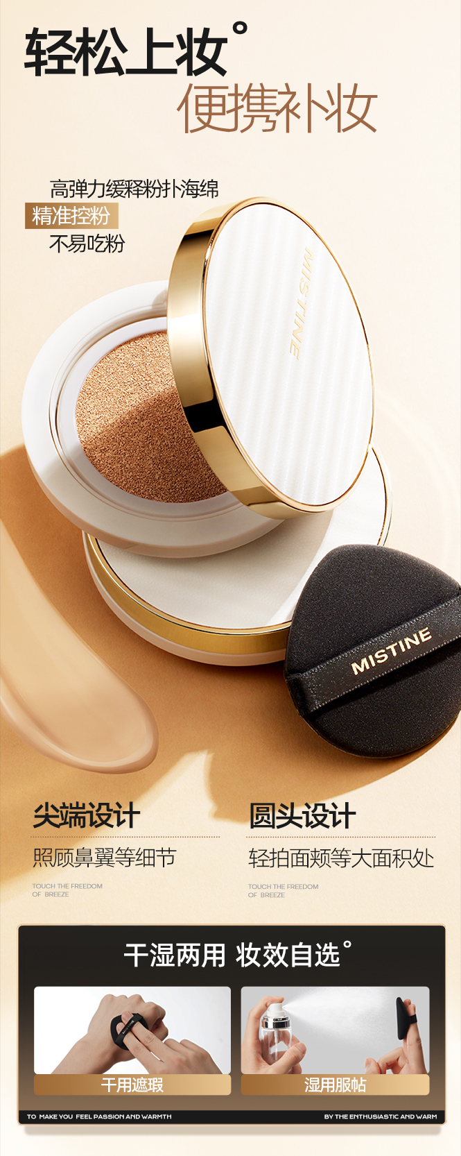 Mistine蜜丝婷柔沙持妆气垫霜12G(1正2替) 夜光气垫遮瑕持久不脱妆混合油皮控油