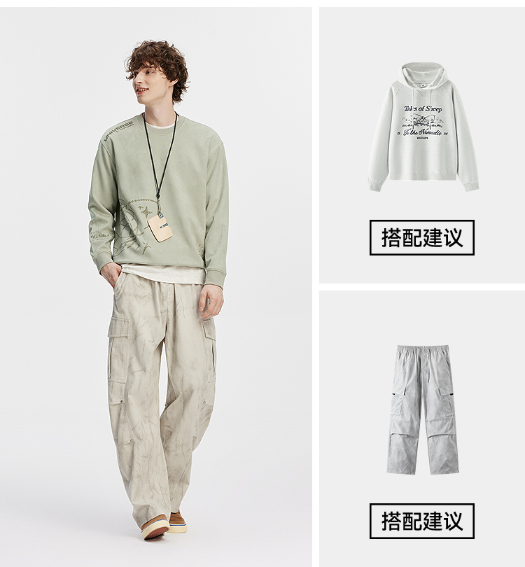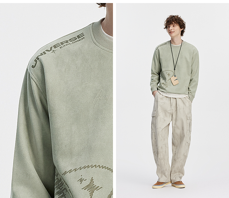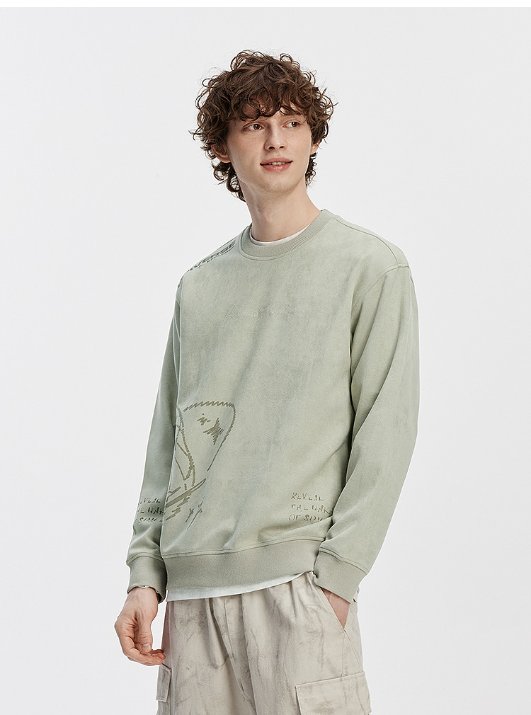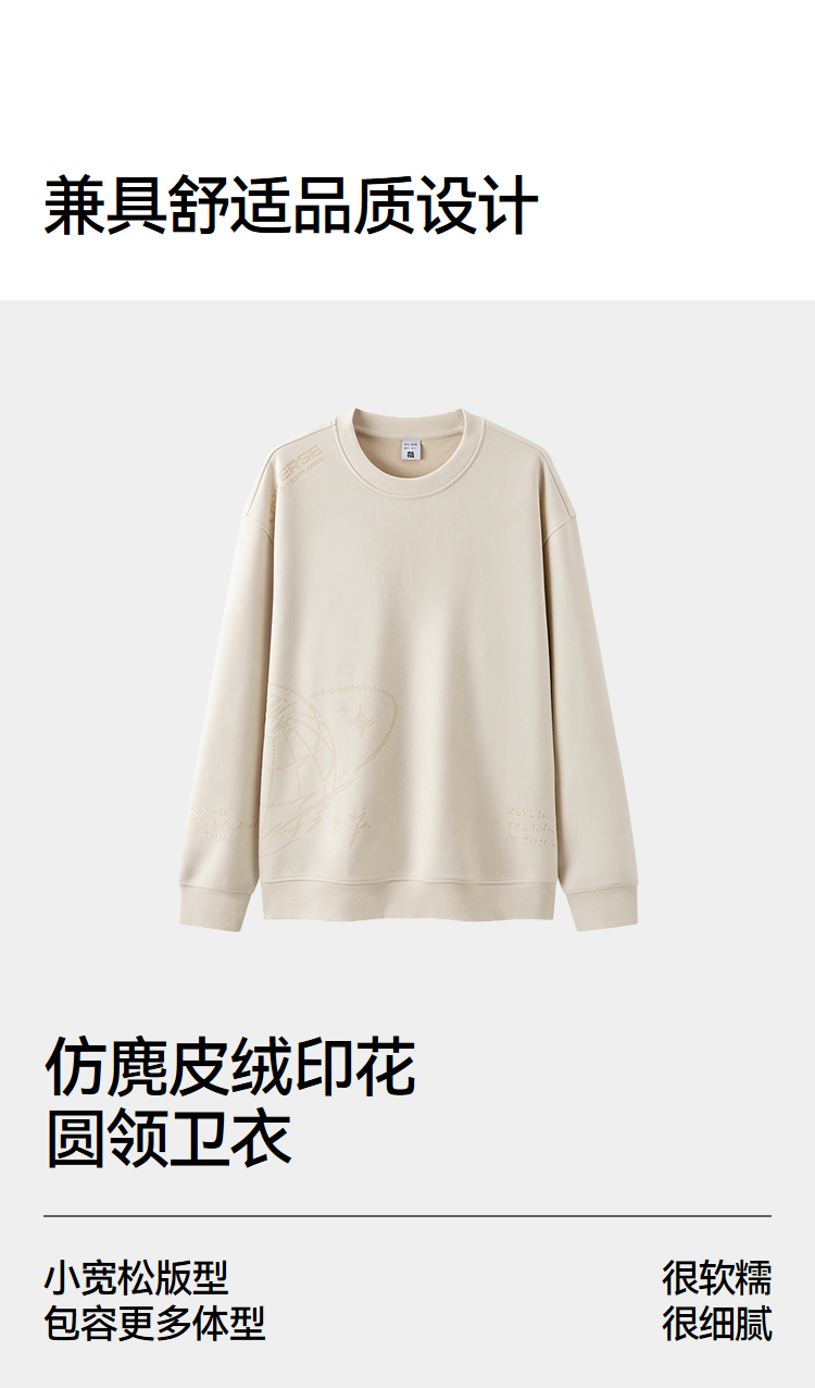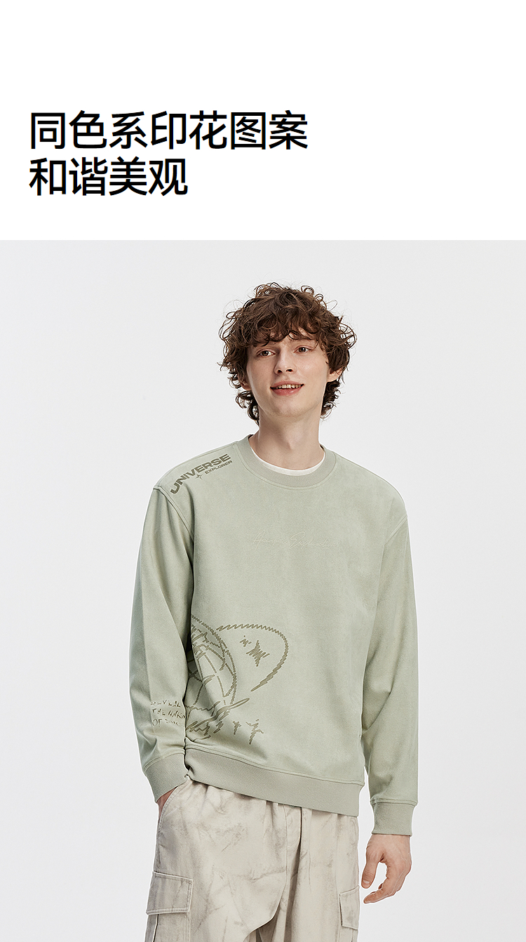 [商场同款]森马卫衣男仿麂皮绒印花圆领上衣2025新款秋装休闲时尚