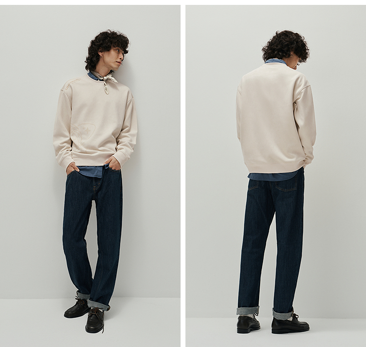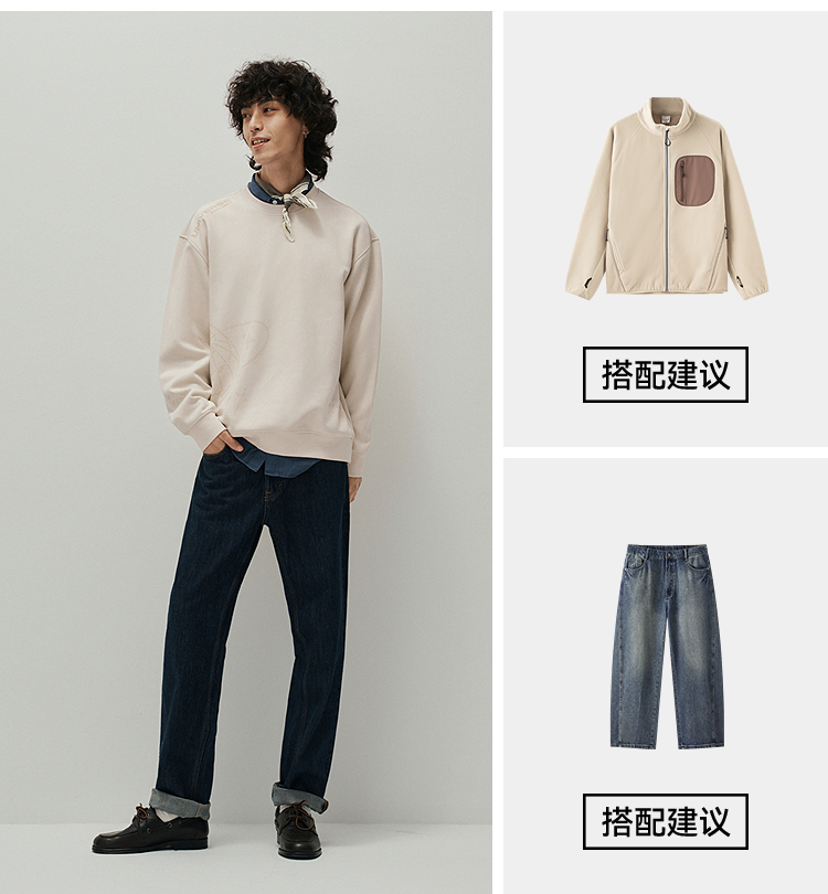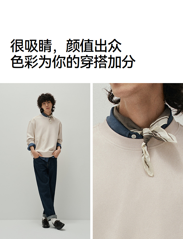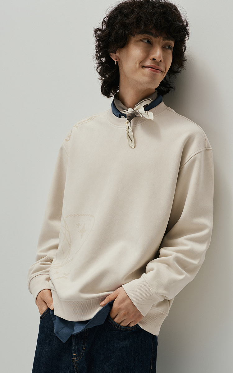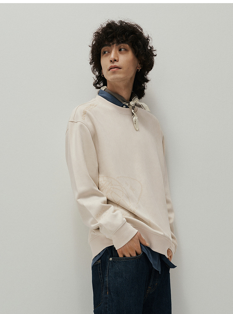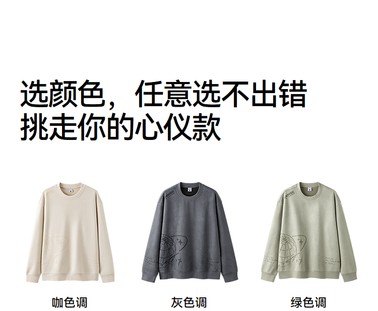 [商场同款]森马卫衣男仿麂皮绒印花圆领上衣2025新款秋装休闲时尚