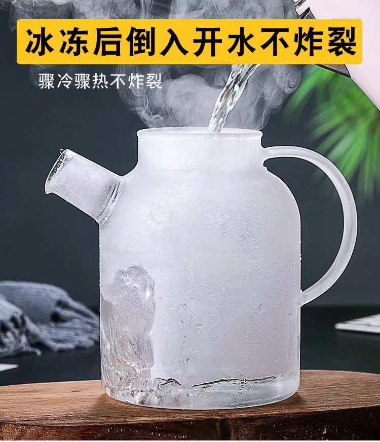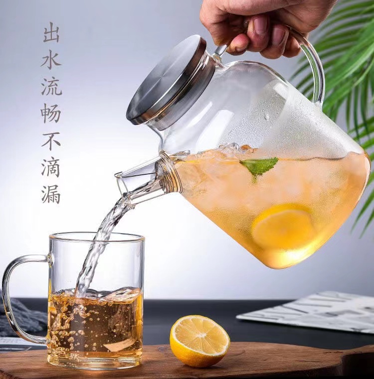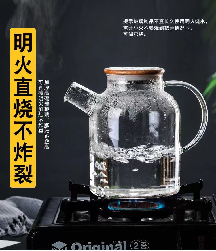 【高硼硅玻璃冷水壶】耐热玻璃冷水壶大容量凉水壶家用茶壶果汁杯水杯竹盖煮茶壶。ry