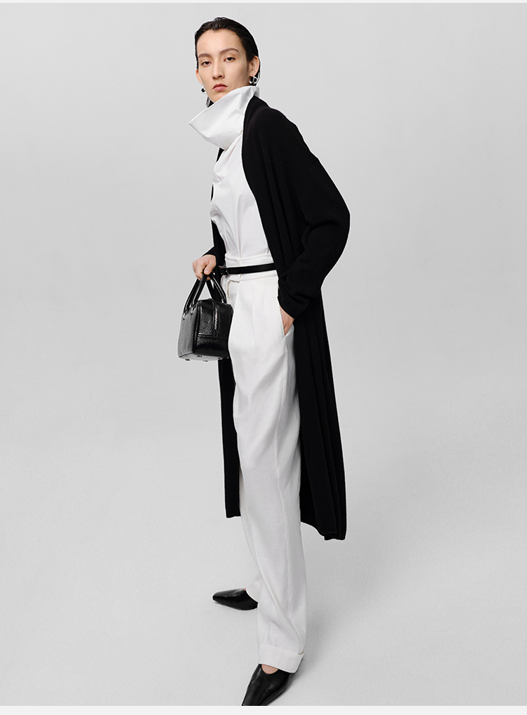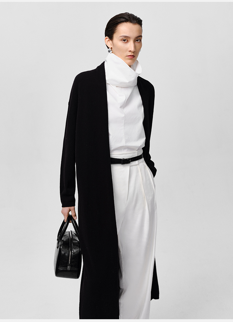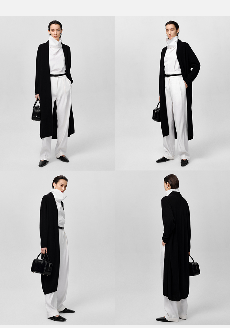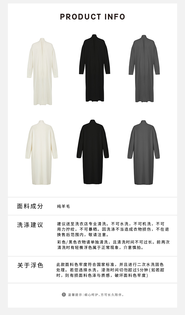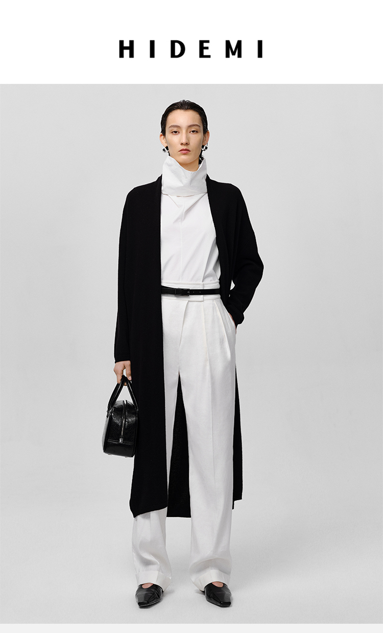 HIDEMI 美利奴羊毛系列慵懒系廓形针织长款外套 黑色/灰色/乳白色