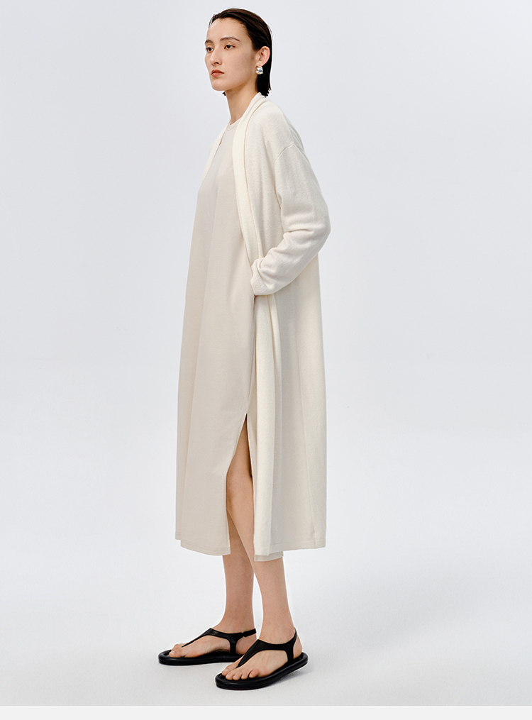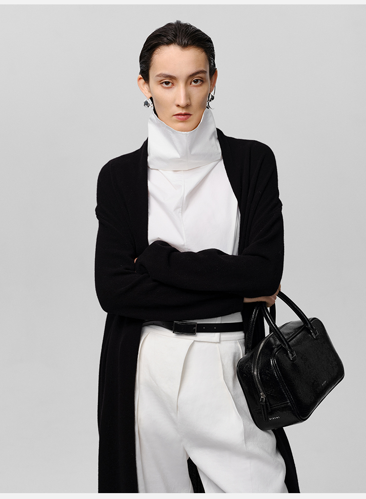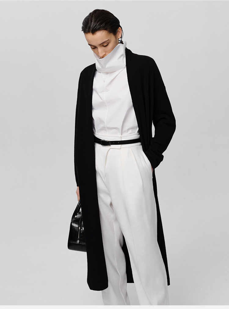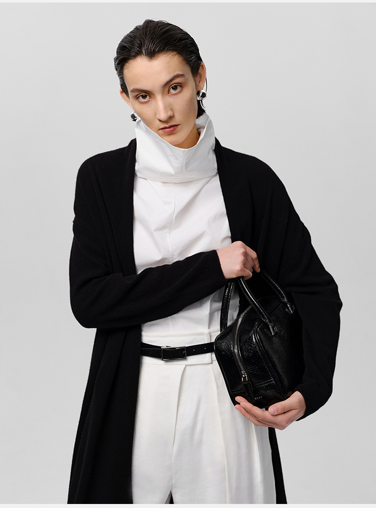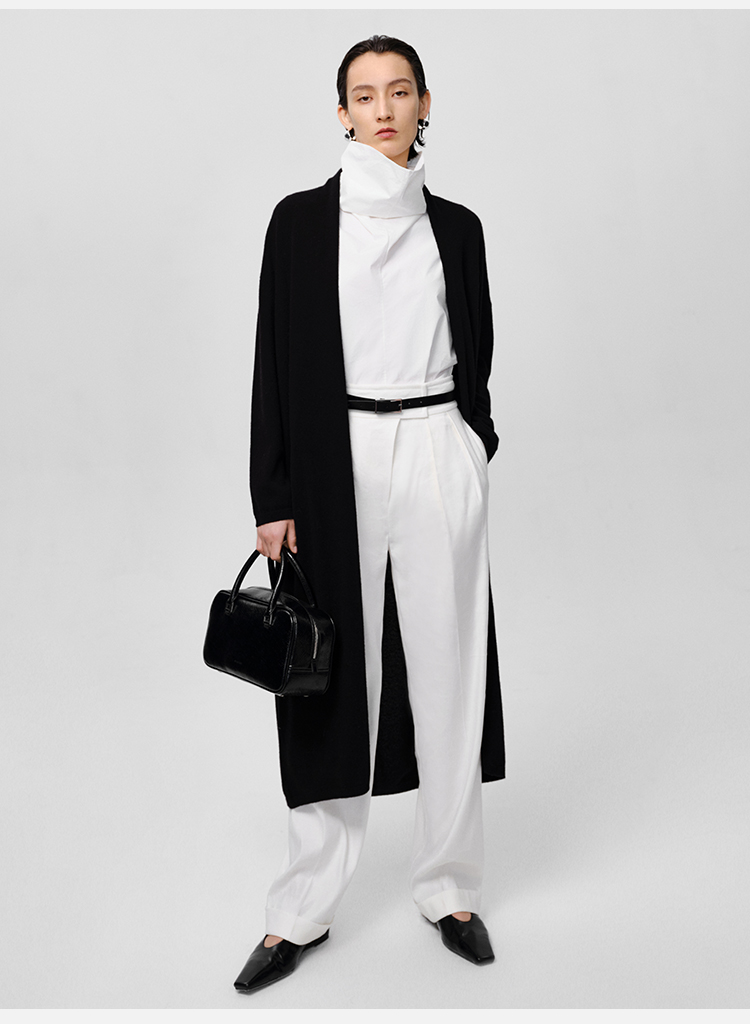 HIDEMI 美利奴羊毛系列慵懒系廓形针织长款外套 黑色/灰色/乳白色