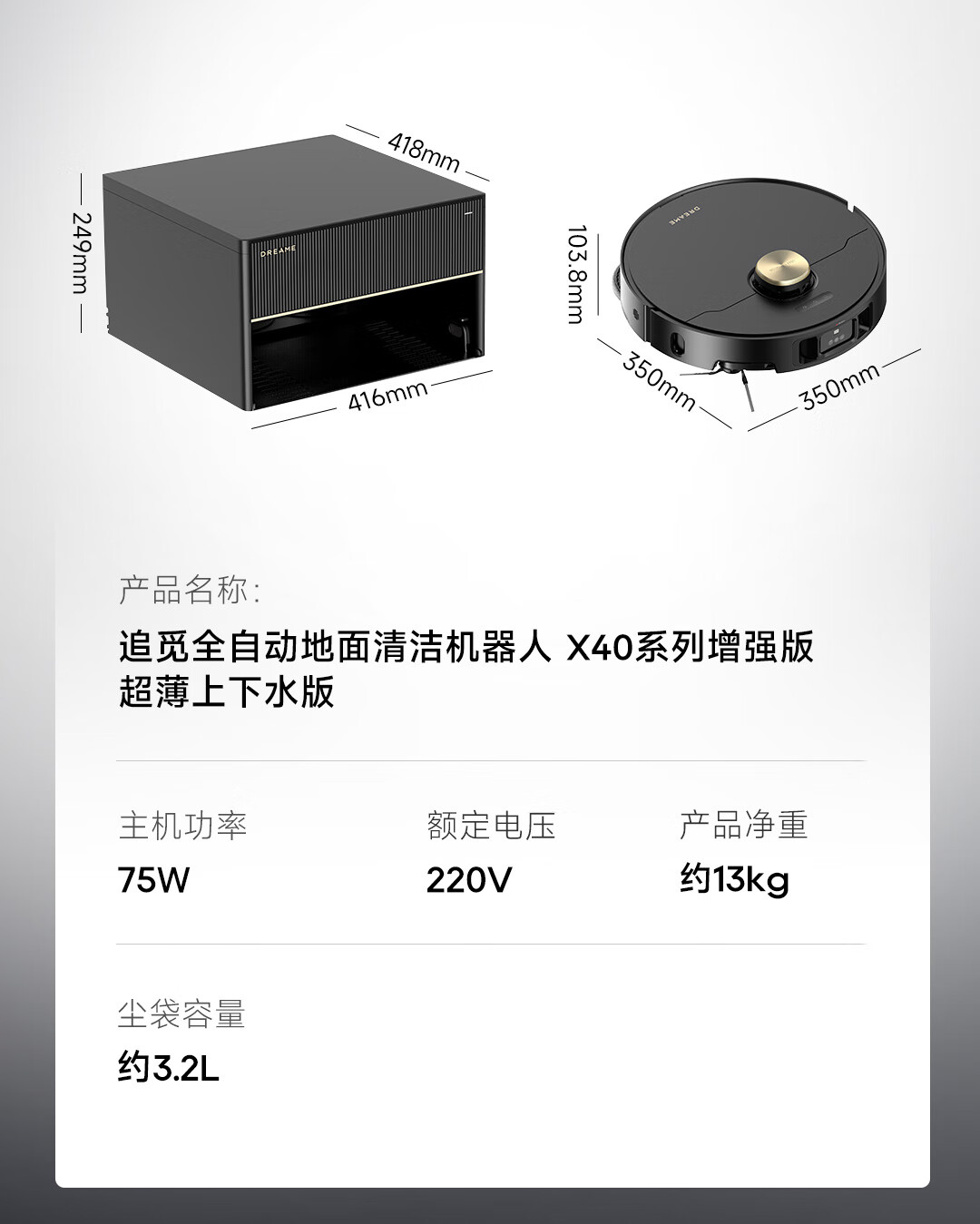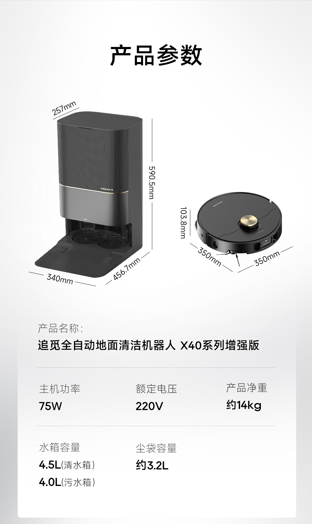 追觅X40Pro增强版扫地机器人扫拖洗拖一体自动清洗全自动基站自清洁热水洗拖布烘干超薄上下水版