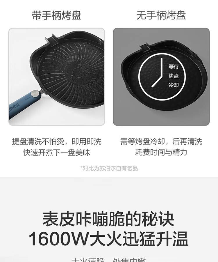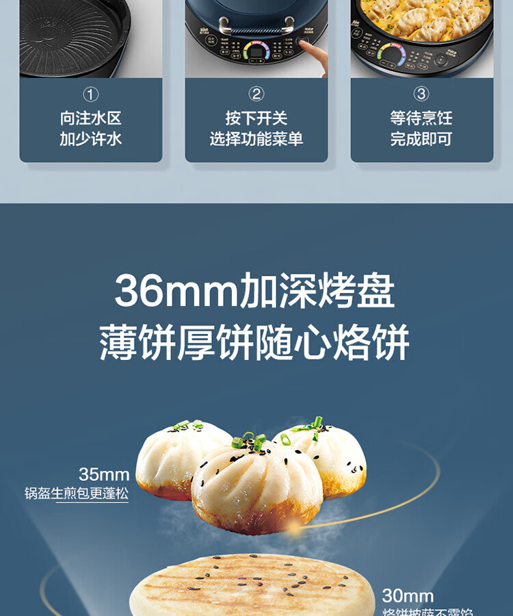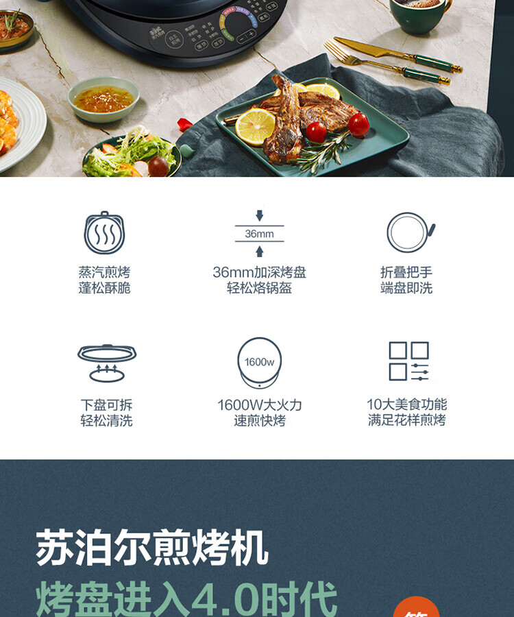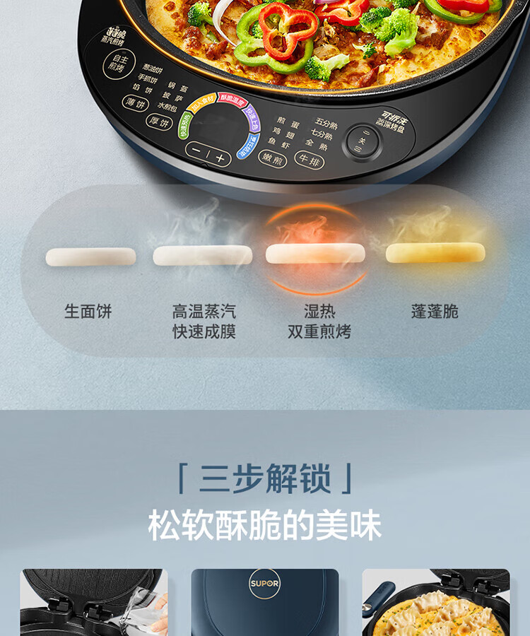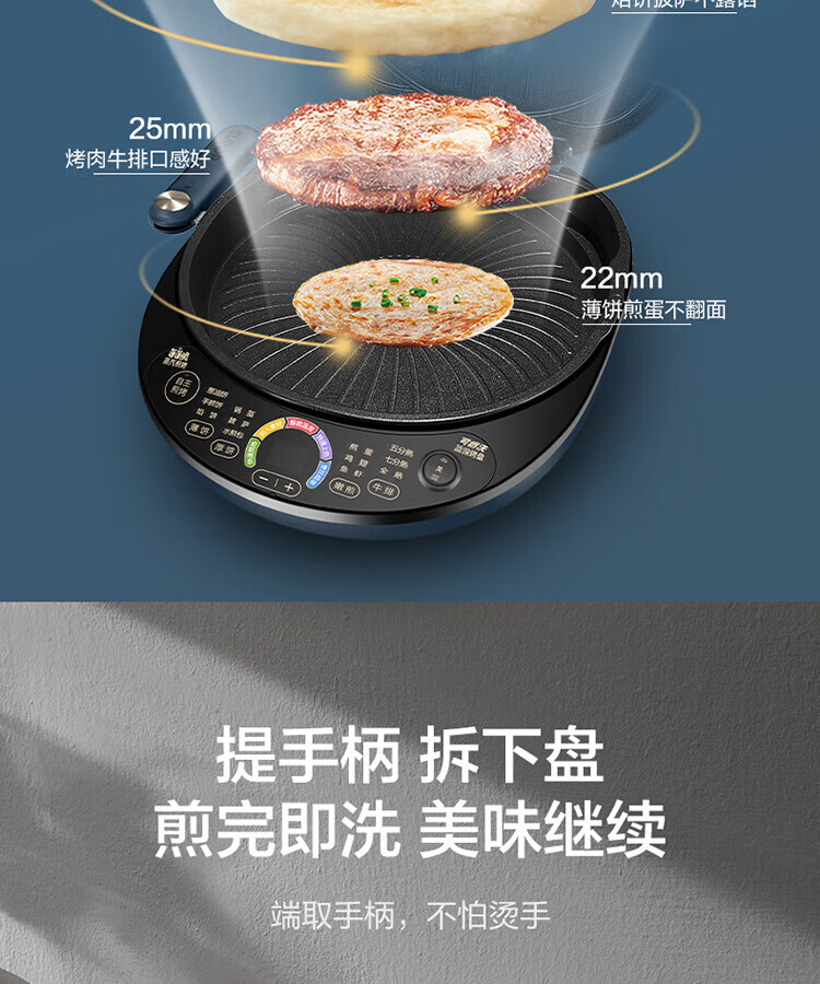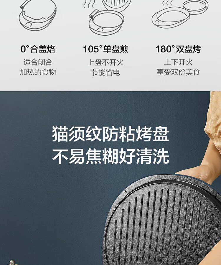 苏泊尔(SUPOR)电饼铛可拆洗双面加热早餐机薄饼机烙饼锅煎烤机华夫饼机加深烤盘 商超系列 JD30RQ09