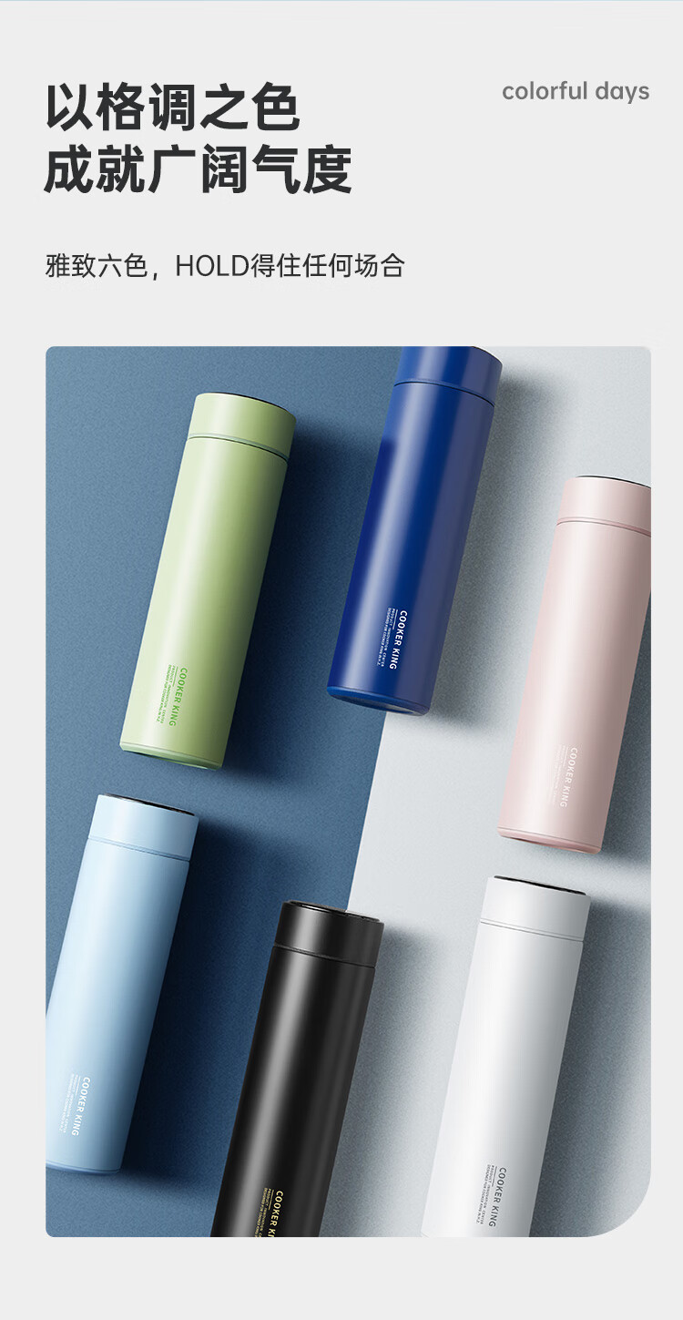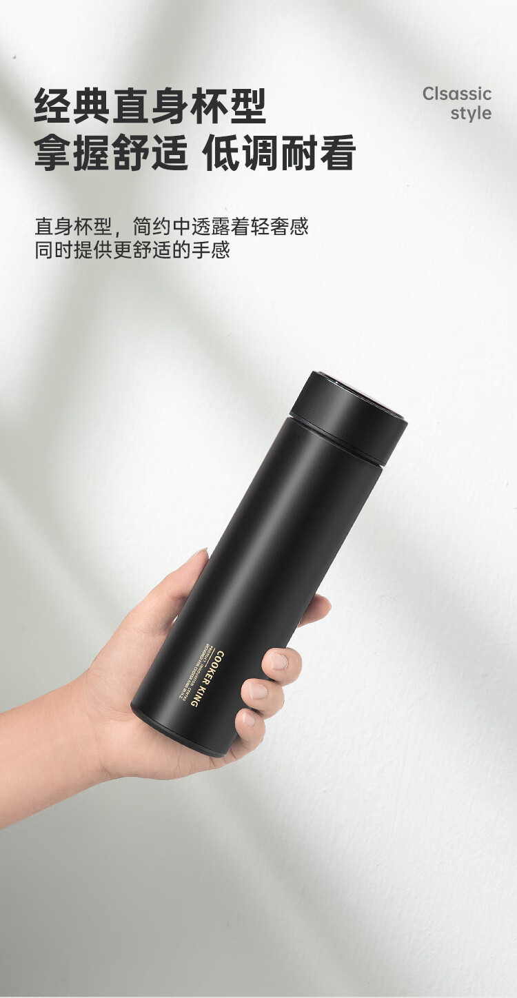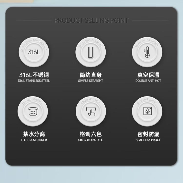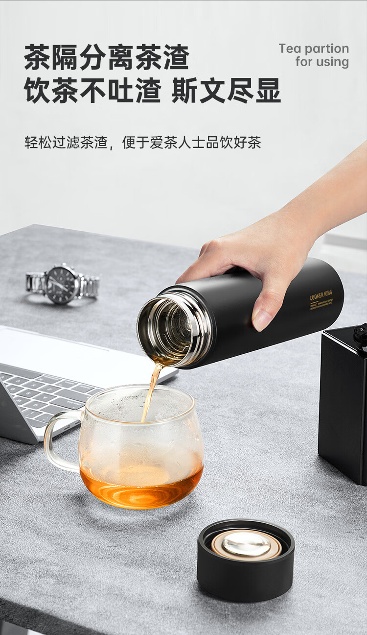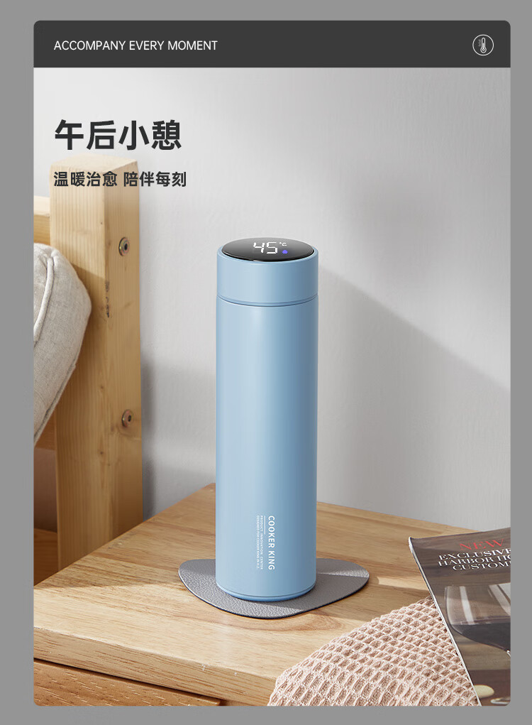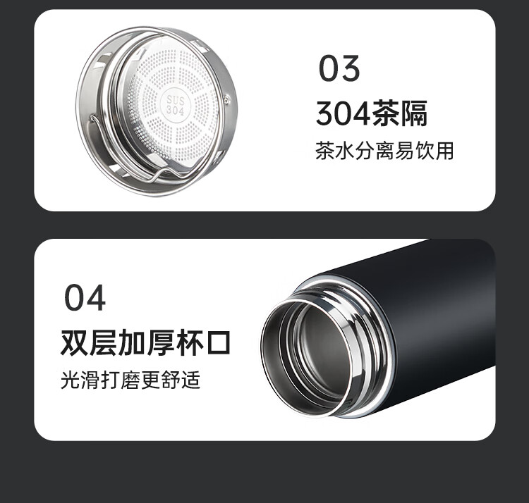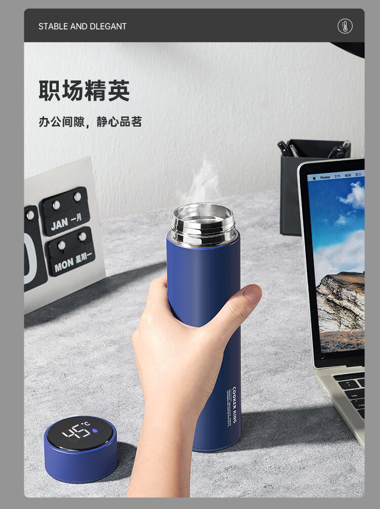 不锈钢保温杯 316不锈钢茶水分离商务便携智能保温杯 蓝色 490ml