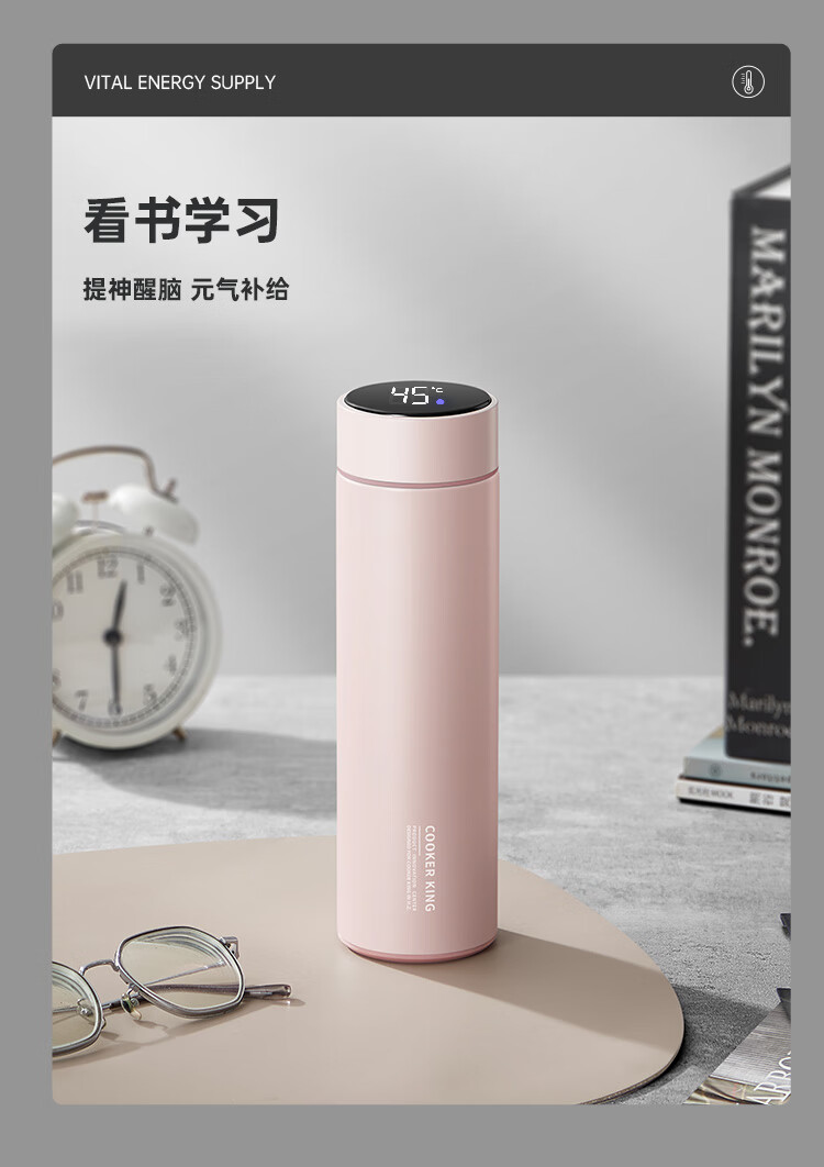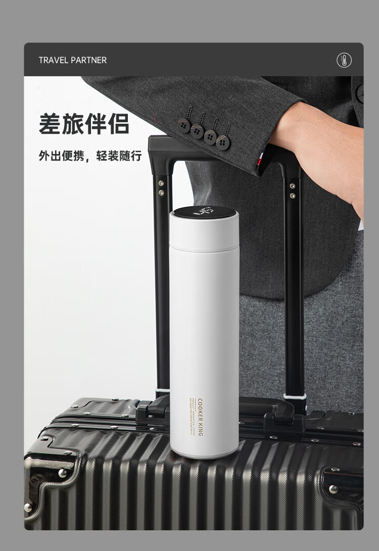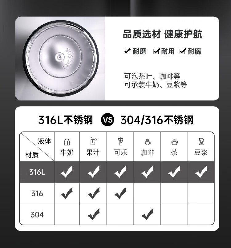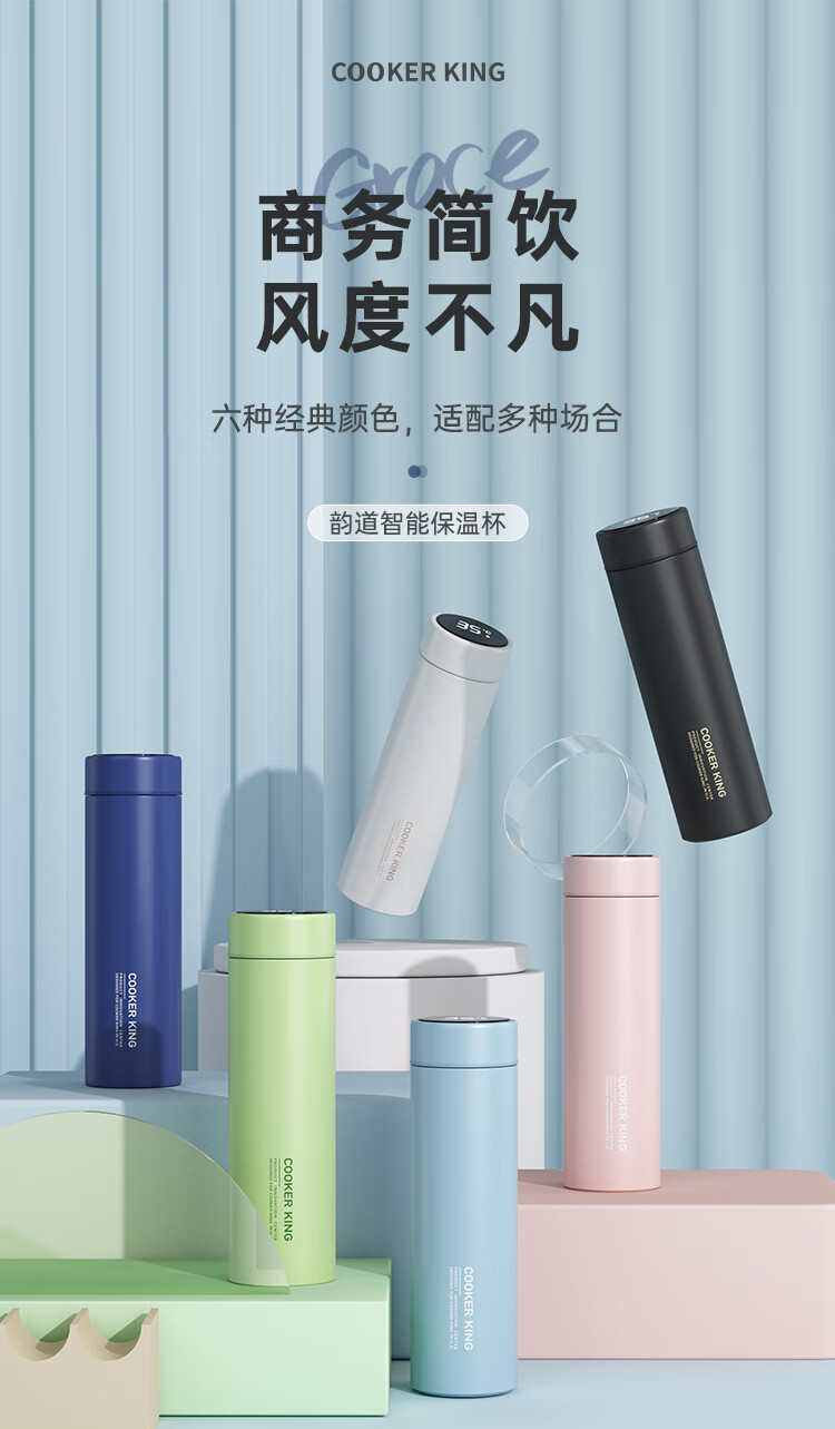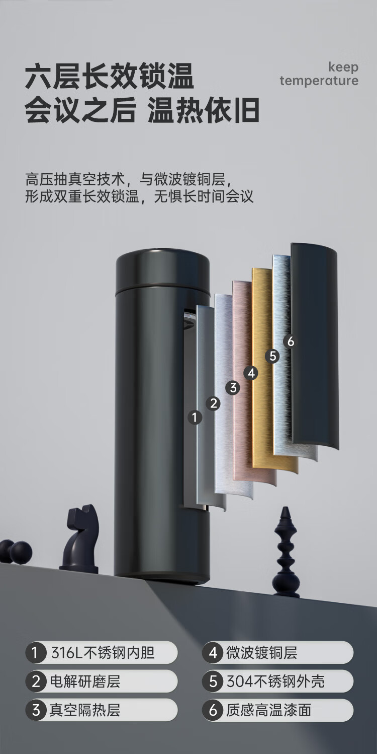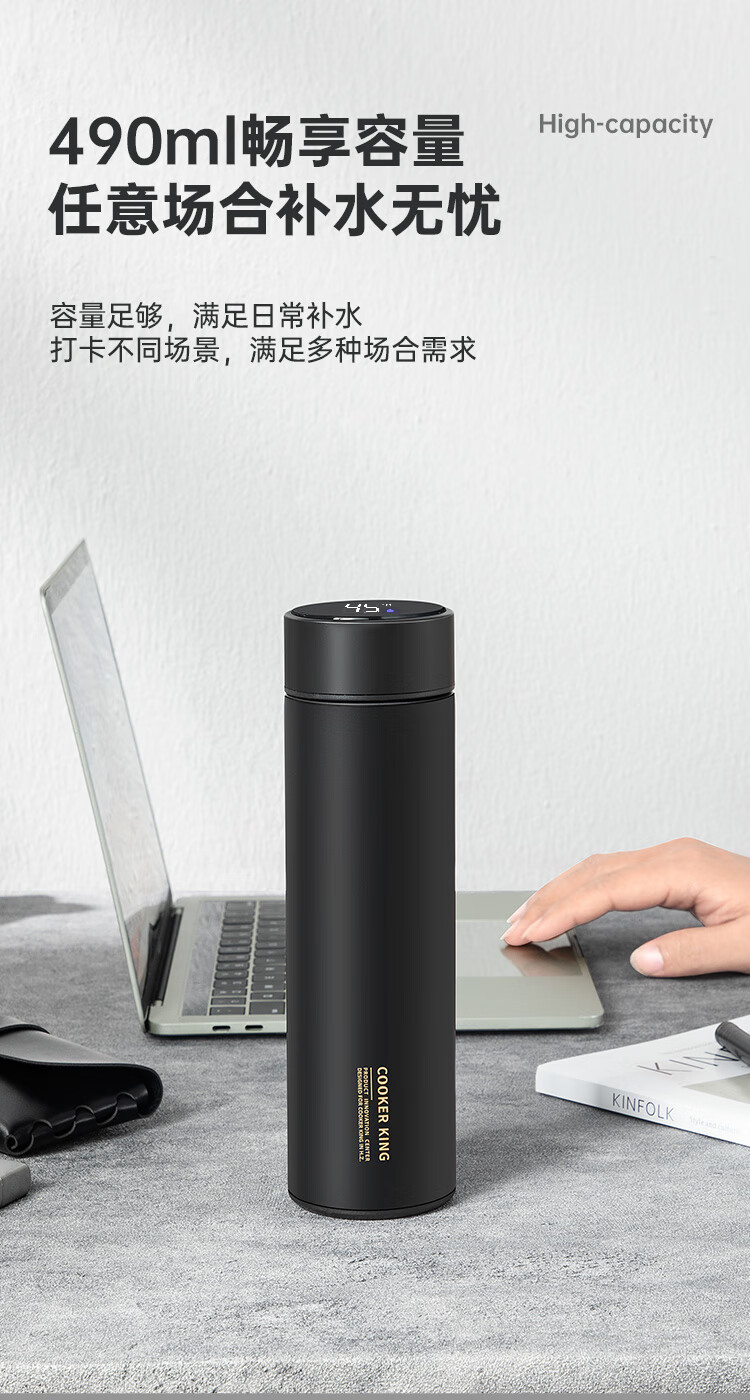 不锈钢保温杯 316不锈钢茶水分离商务便携智能保温杯 蓝色 490ml
