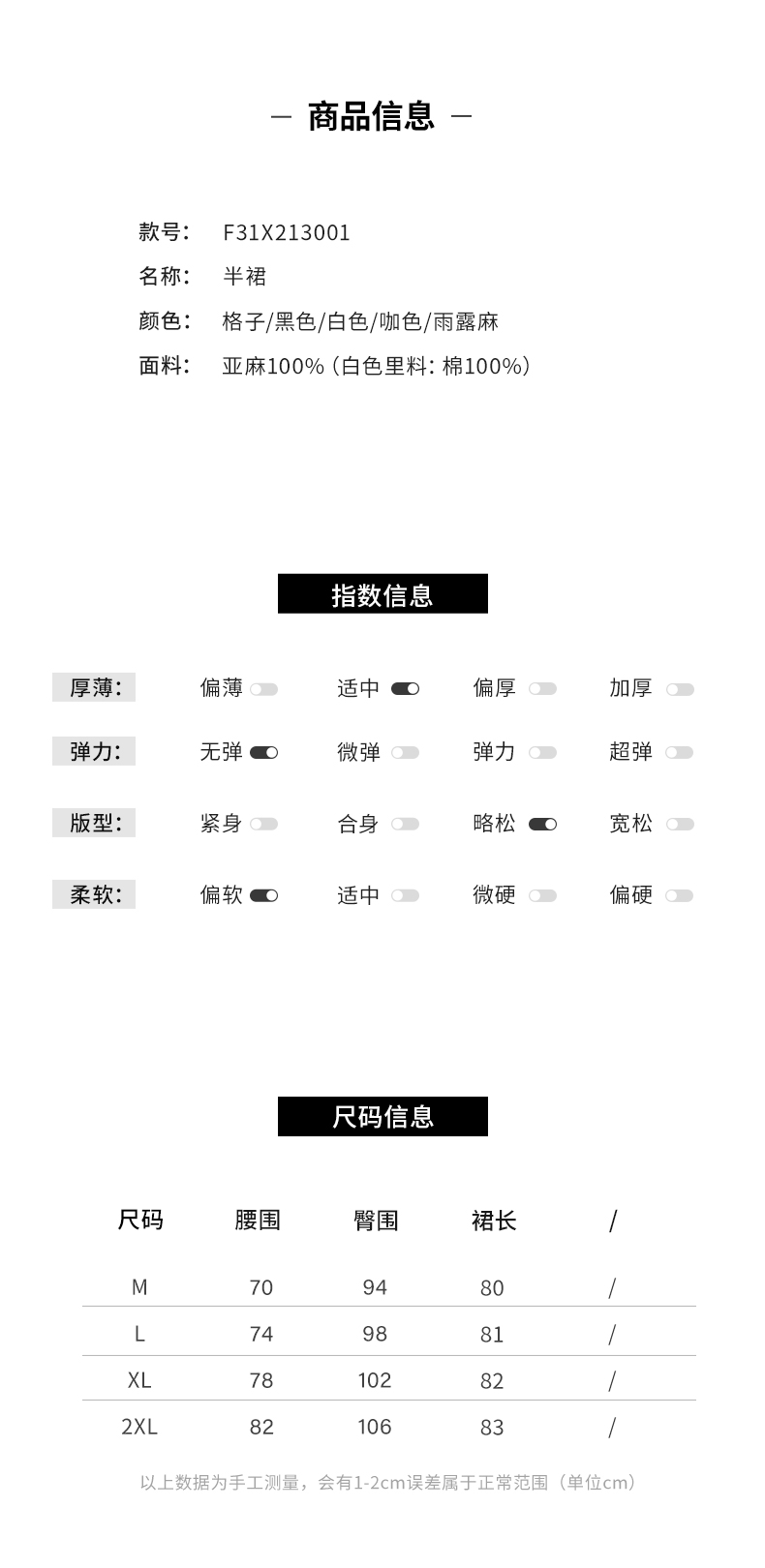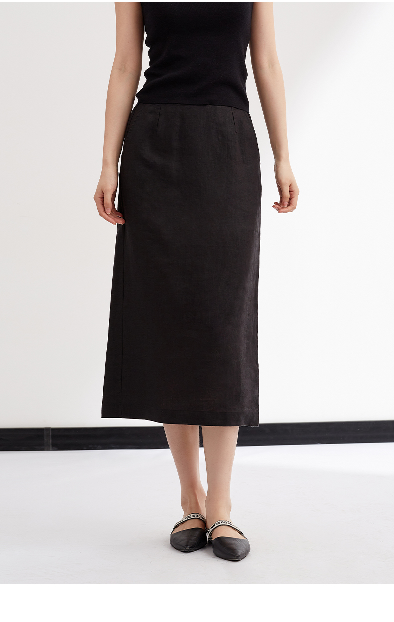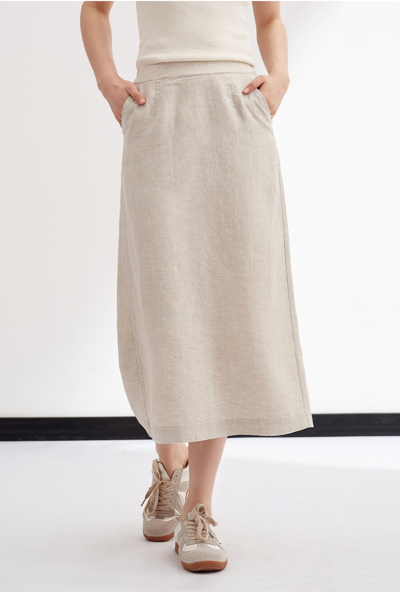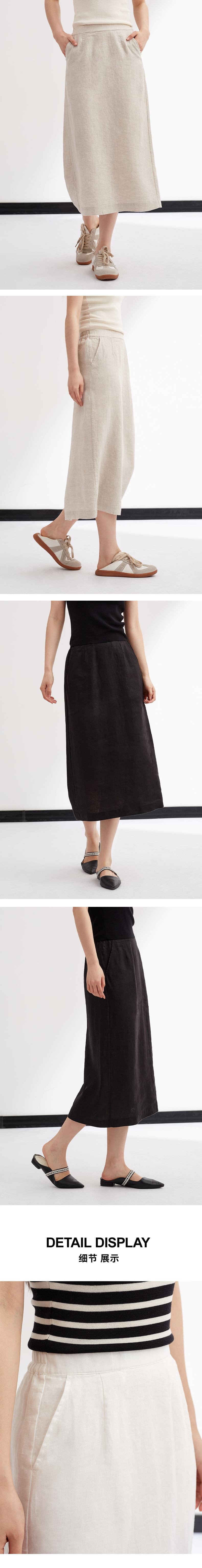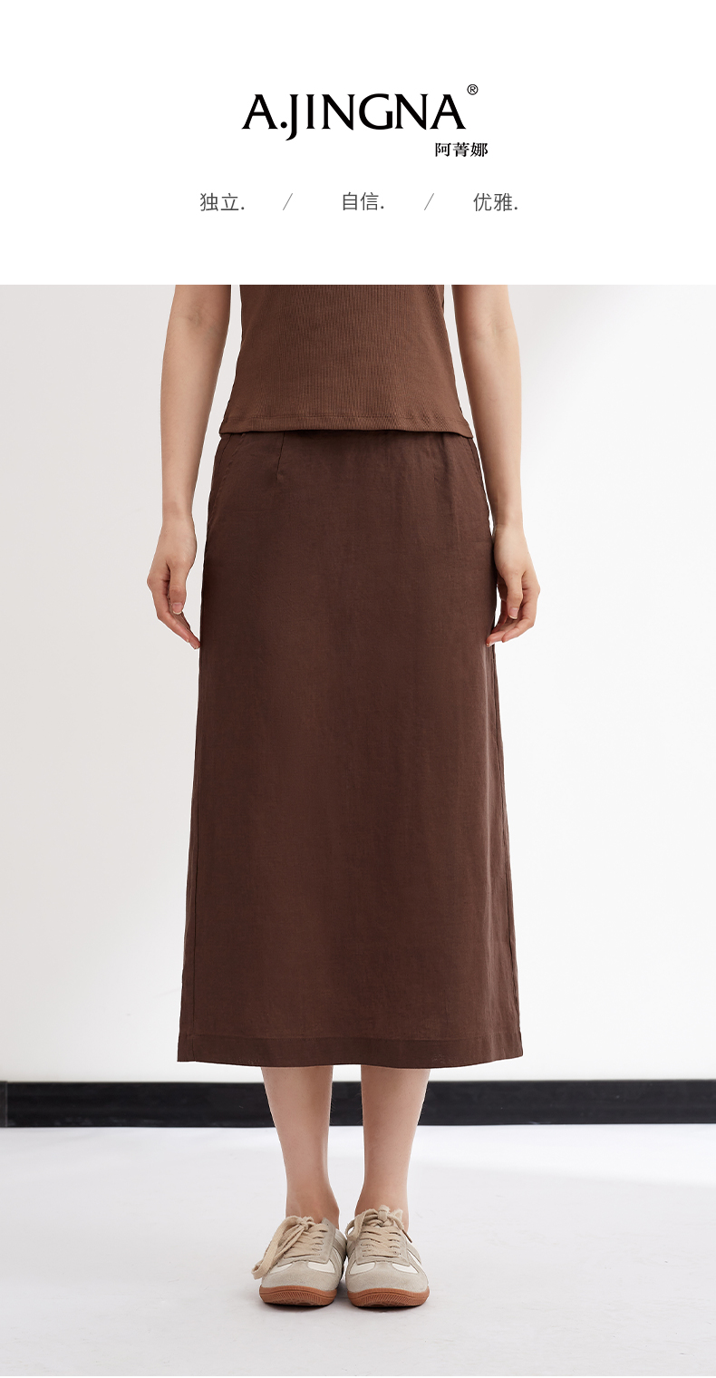 【清爽亚麻】阿菁娜春夏新款清爽亚麻半身裙天然材质吸湿排汗直筒微A遮胯显瘦F31X213001