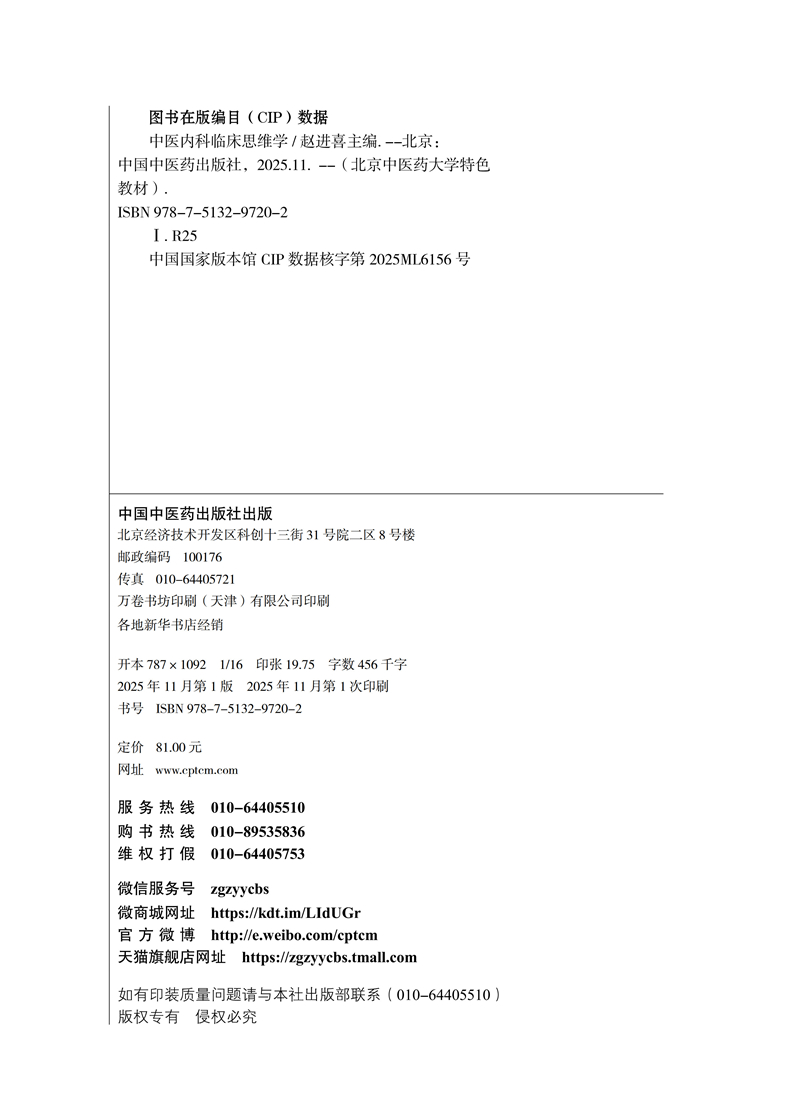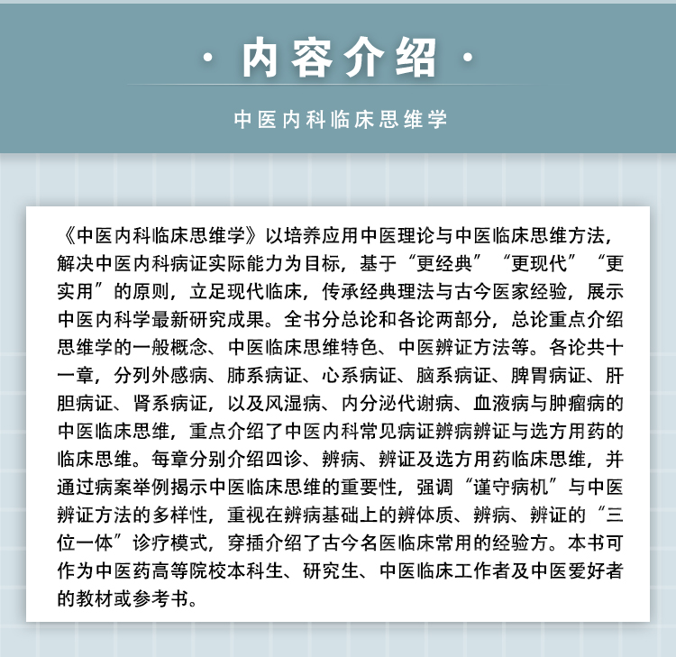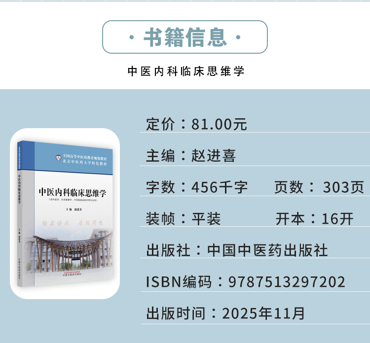 中医内科临床思维学 北京中医药大学特色教材 全国高等中医药教育规划教材 赵进喜 供中西医临床医学等专业用 中国中医药出版社