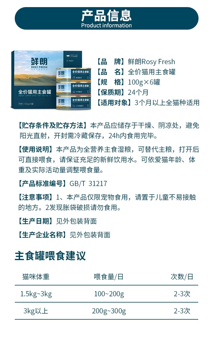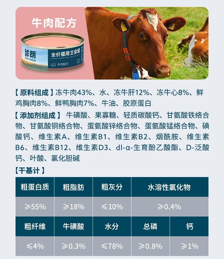 鲜朗全价猫咪主食罐头 100g/罐 高蛋白低脂高营养 0诱食0谷物 肉源透明公开 保证正品 防伪可查
