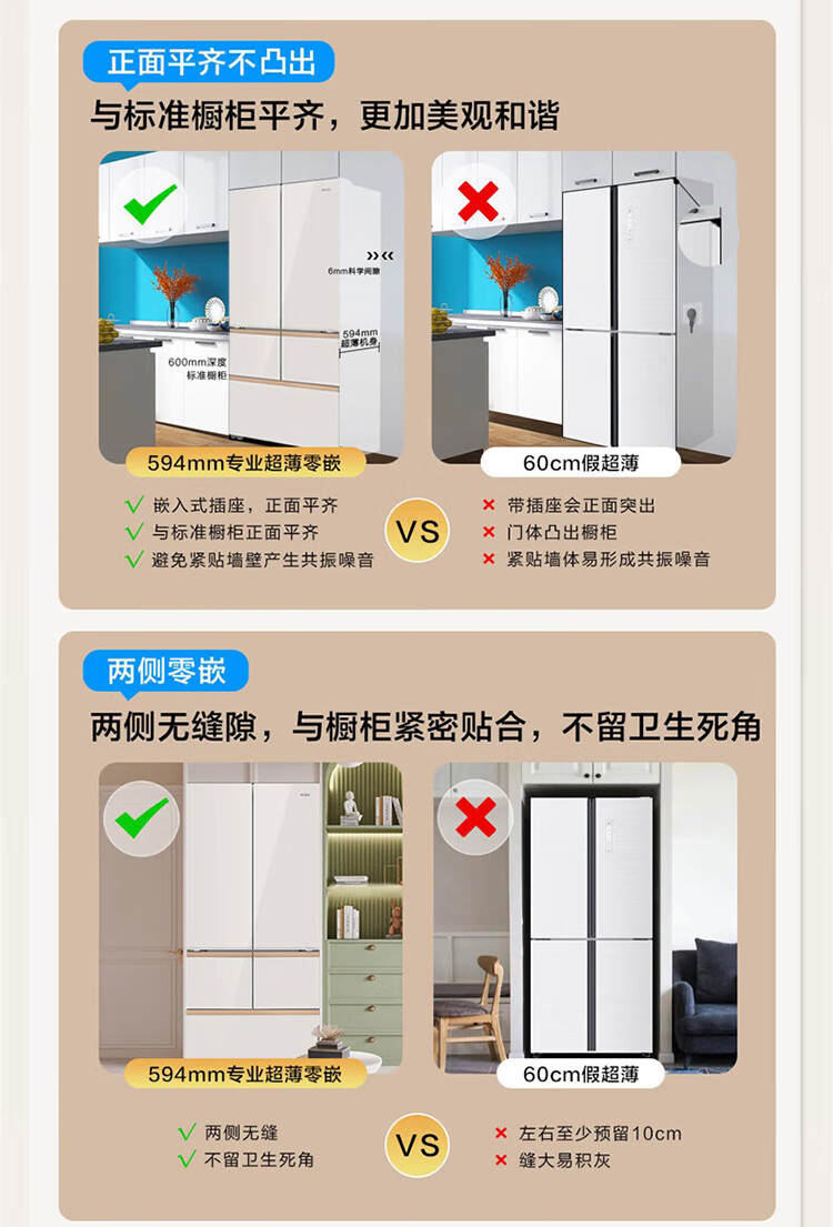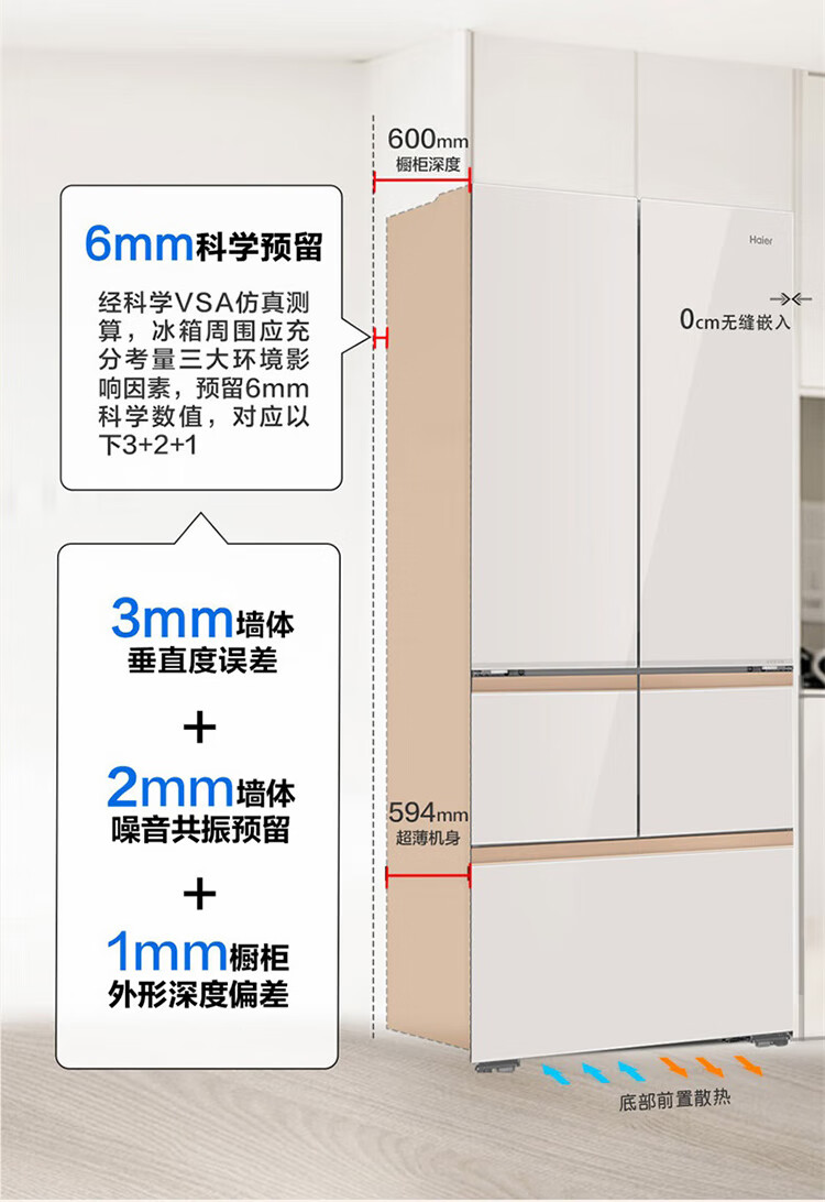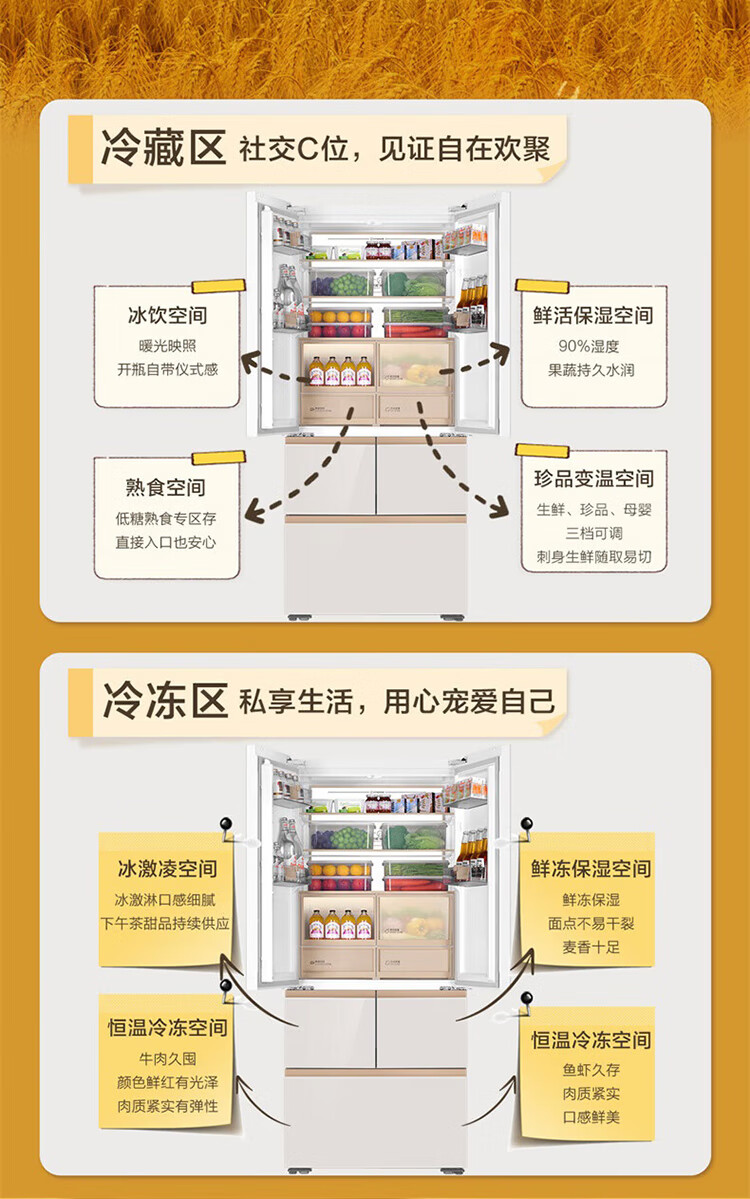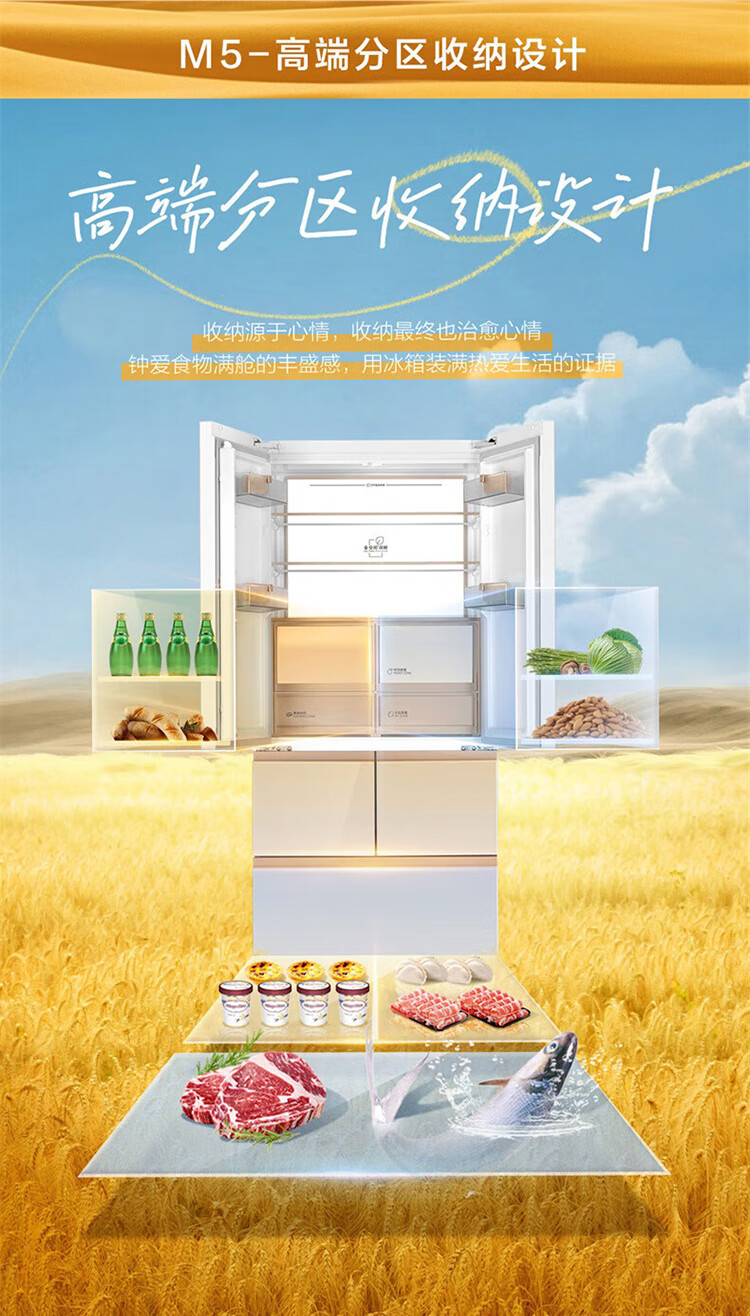 麦浪-海尔冰箱512升薄零嵌入式全空间保鲜干湿分储EPP净除菌一级能效双变频家用大容量电冰箱 512升+薄零嵌入式+全空间保鲜BCD-512WGHMD1BY6U1麦浪金