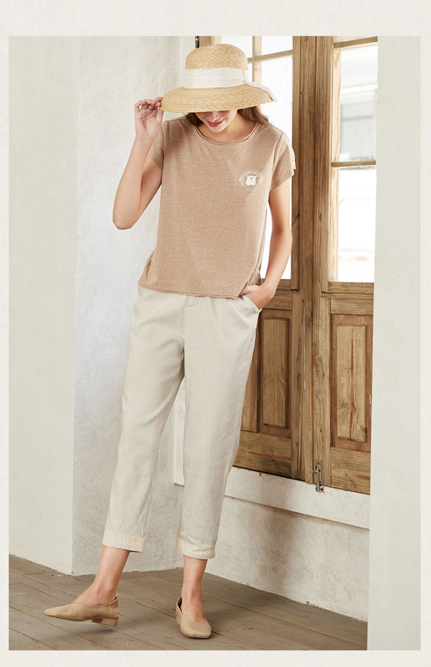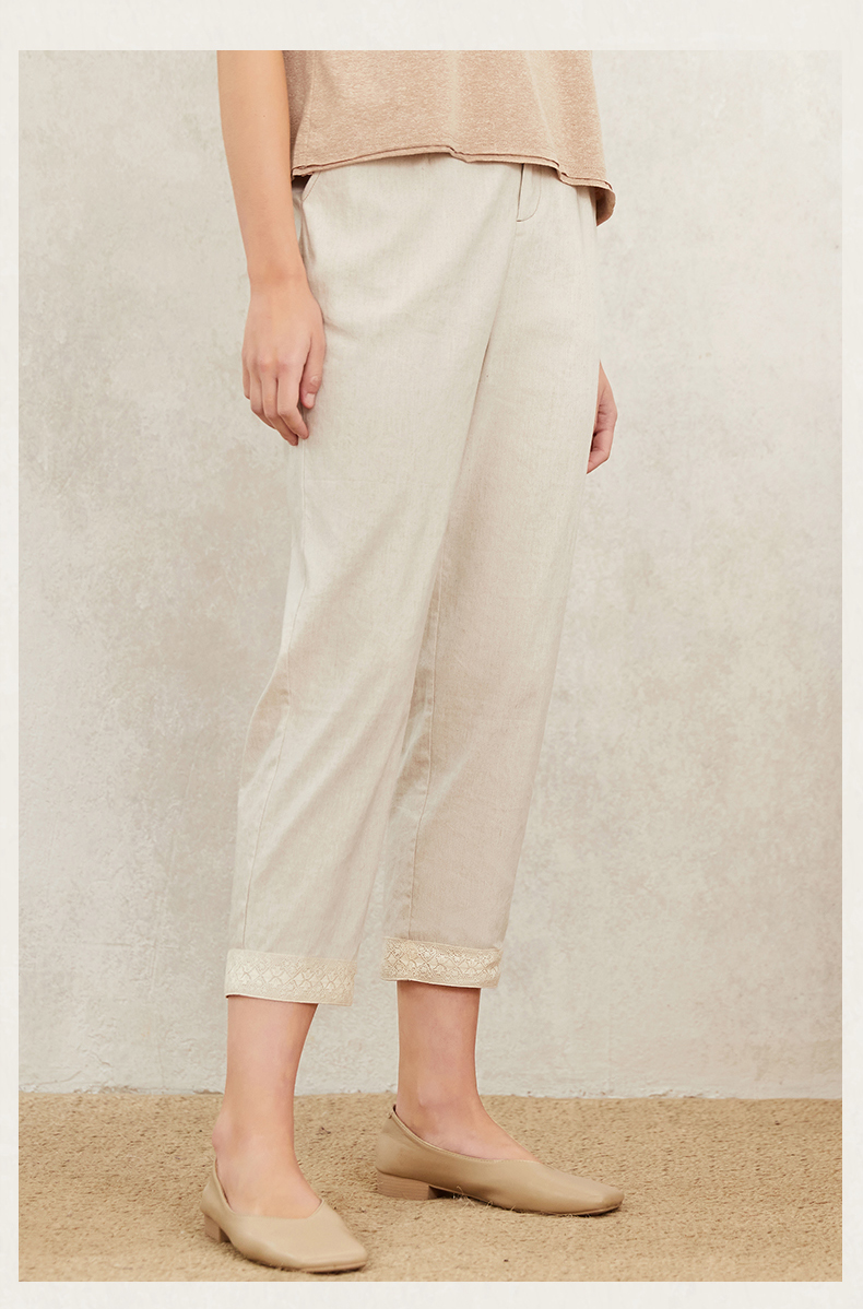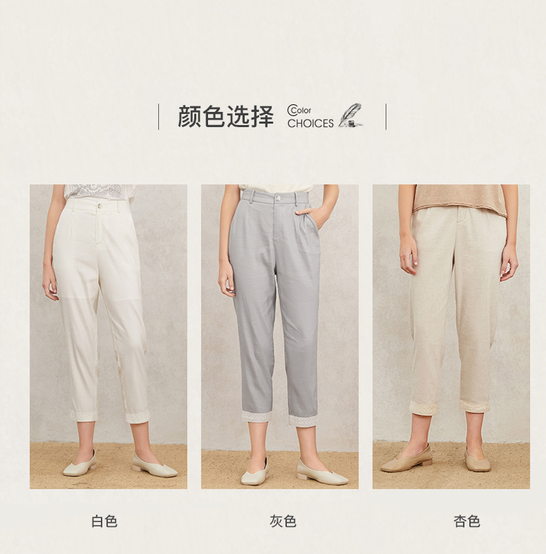 famecoco范可儿裤子女夏薄款白色直筒休闲裤时髦时尚洋气F223GA027