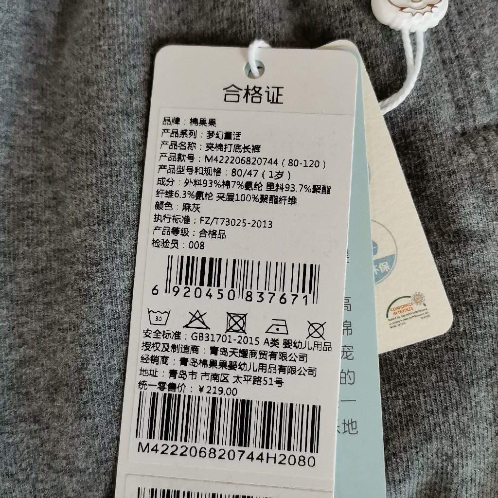| 裤长 | 43 | 49 | 55 | 61 | 67 |